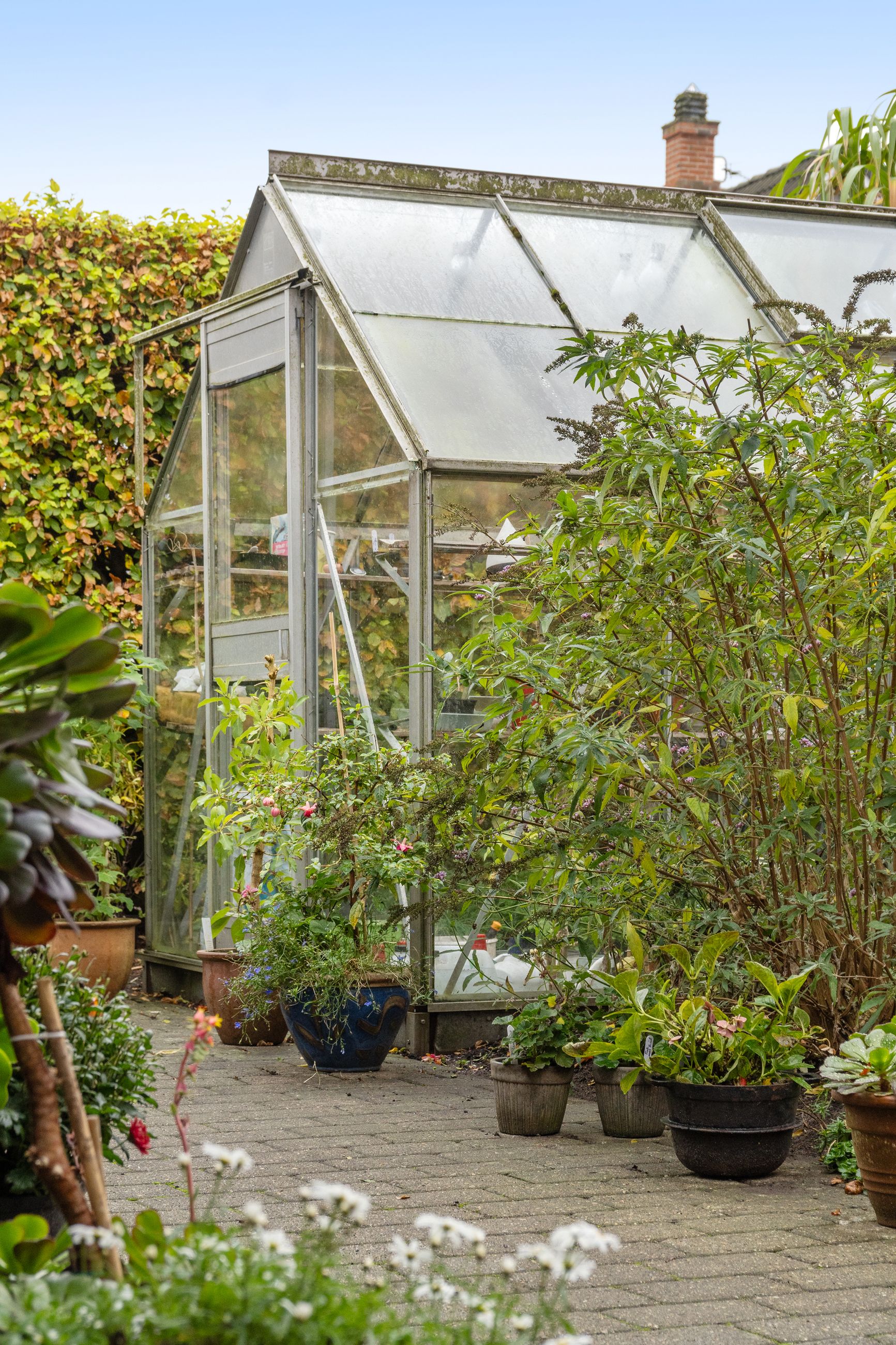 Haven er omkranset af en tæt, grøn hæk og udgør et dejligt privat miljø.