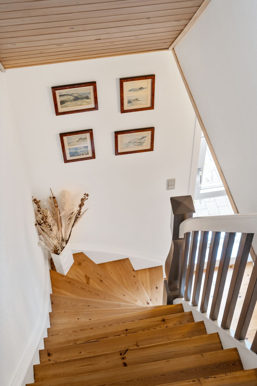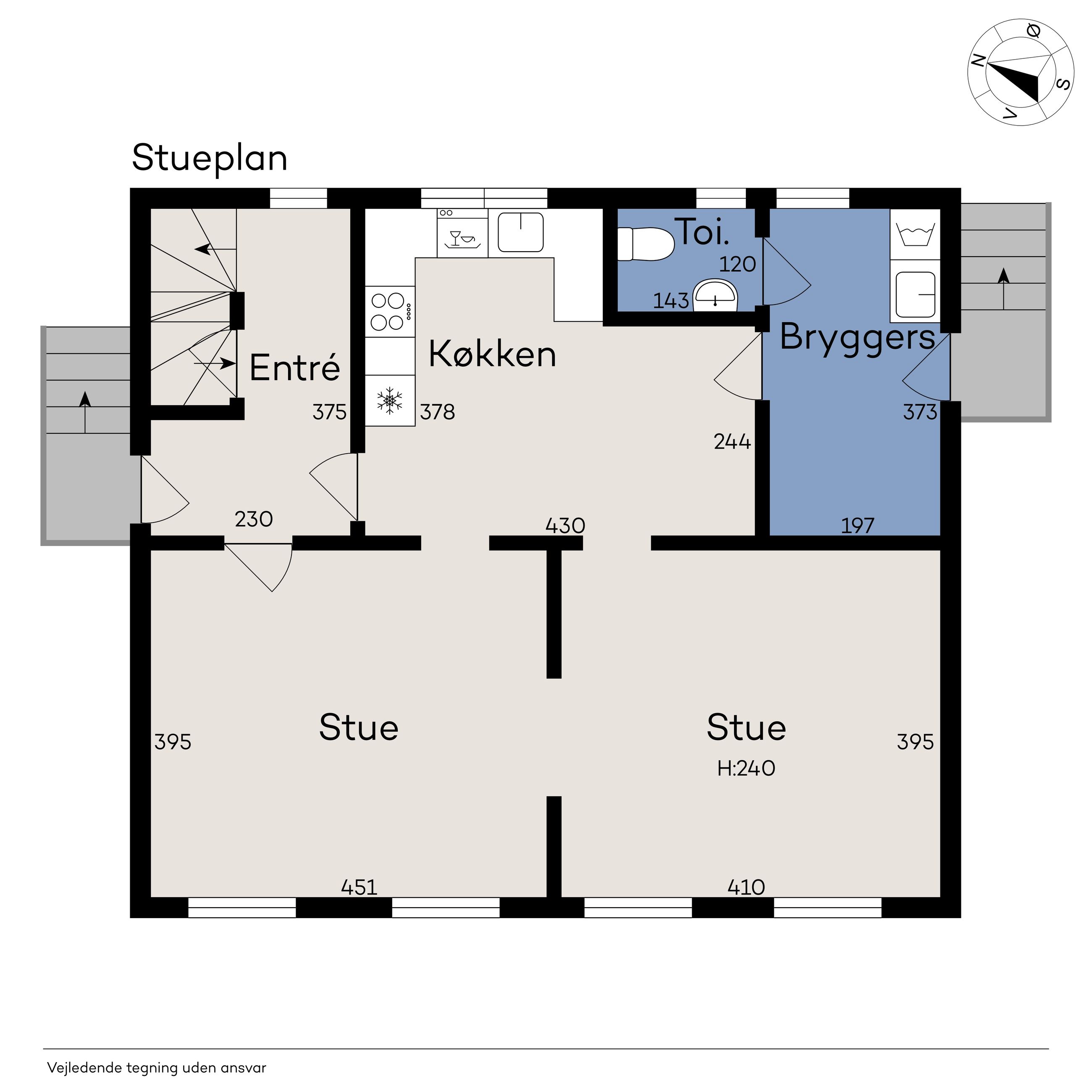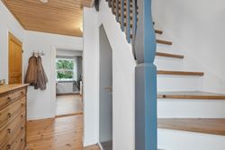 Villaen byder på en indbydende entre med trappe til både 1. sal og kælderen, som giver en praktisk sammenhæng i hjemmet.