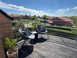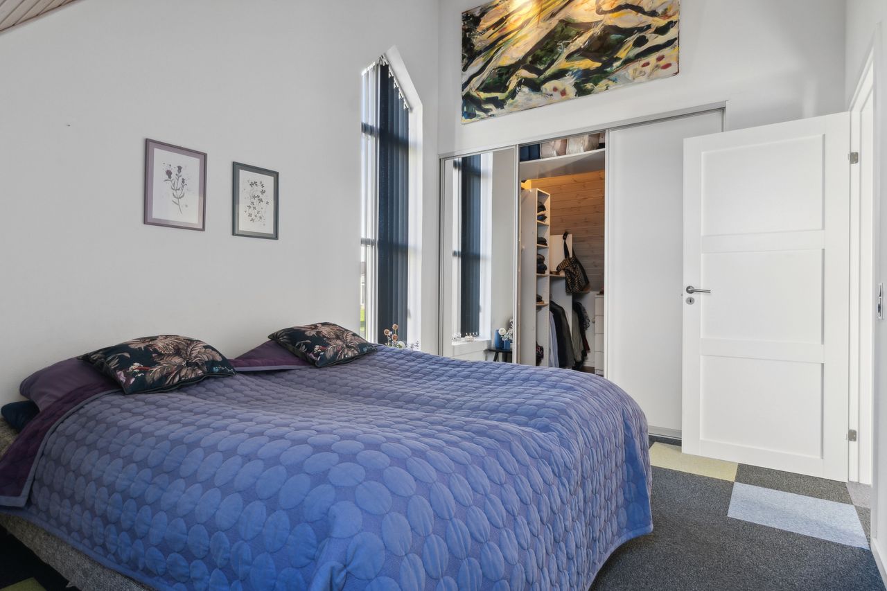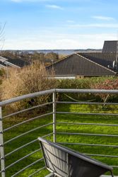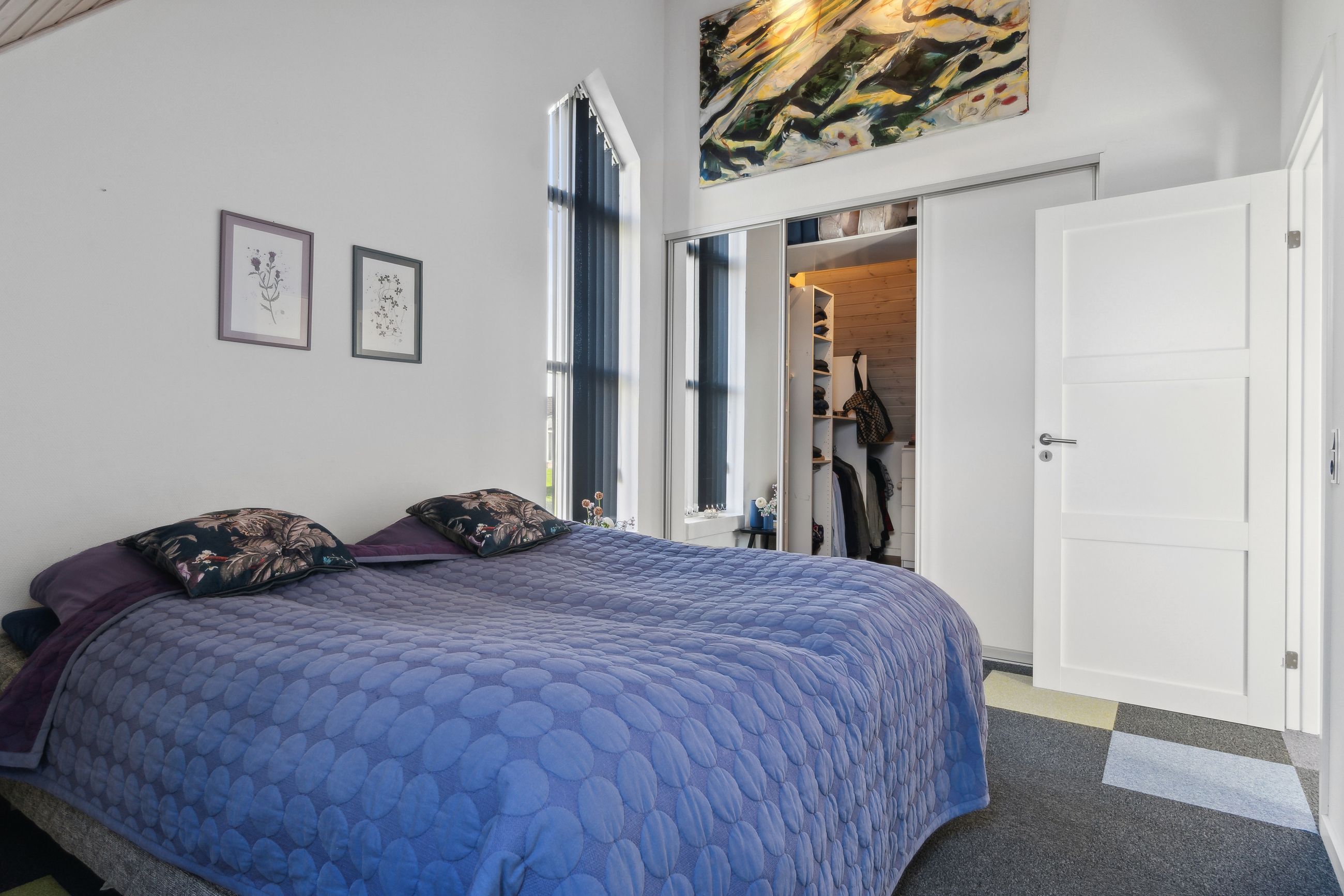 På 1. sal venter et eksklusivt opholdsområde med loft til kip og store vinduespartier, der lukker masser af lys ind og lader jer nyde den storslåede udsigt over området og fjorden. Herfra har I direkte adgang til sydvendt balkon – perfekt til en stille morgenkaffe eller en rolig aftenstund med et glas vin. 1. sal rummer også et pænt lyst badeværelse med brus og to rummelige værelser, hvoraf det ene har et walk-in closet, så I får både god opbevaring og en luksuriøs hverdag.