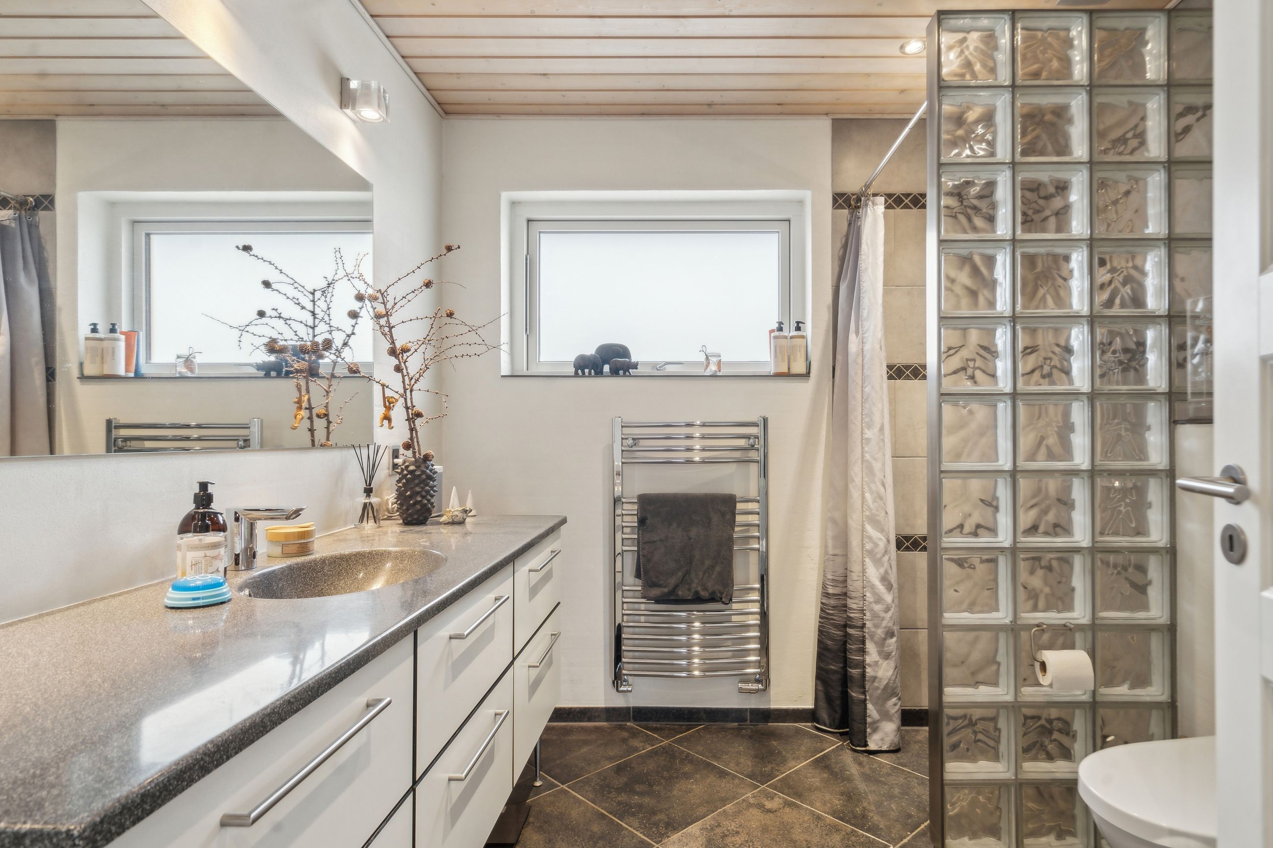 Start dit næste kapitel med det samme i denne indflytningsklare étplansvilla i Bjerringbro. I 2012 undergik villaen en total renovering. Praktisk talt var det kun ydermurene, der stod tilbage, så alt fra vinduer til gulve, lofter og interiør fik den hele store tur. I 2016 skete der igen en stor ombygning med loft til kip og ny dobbelt garage.