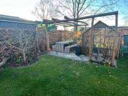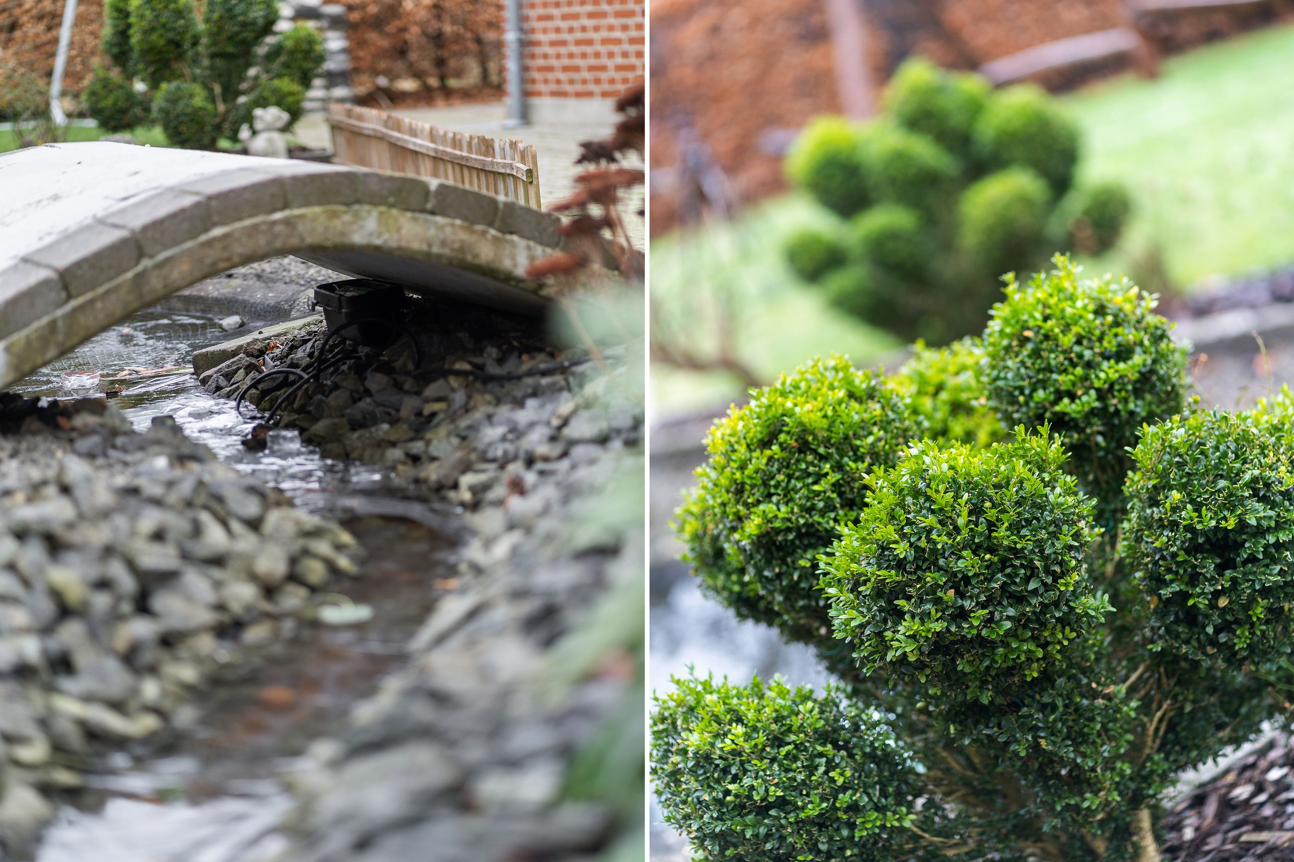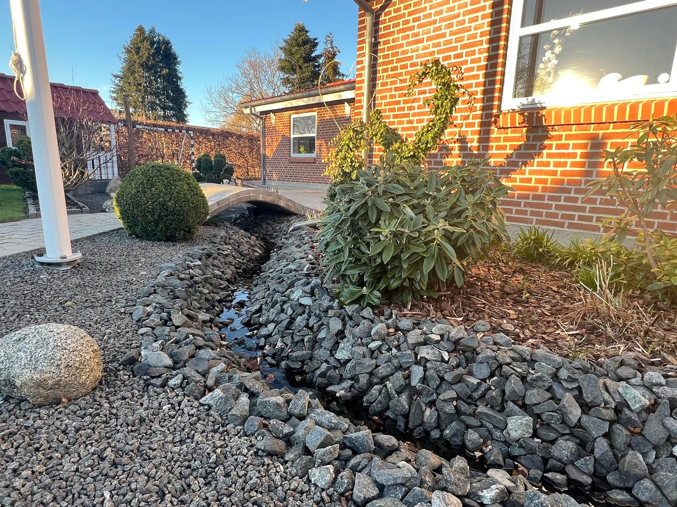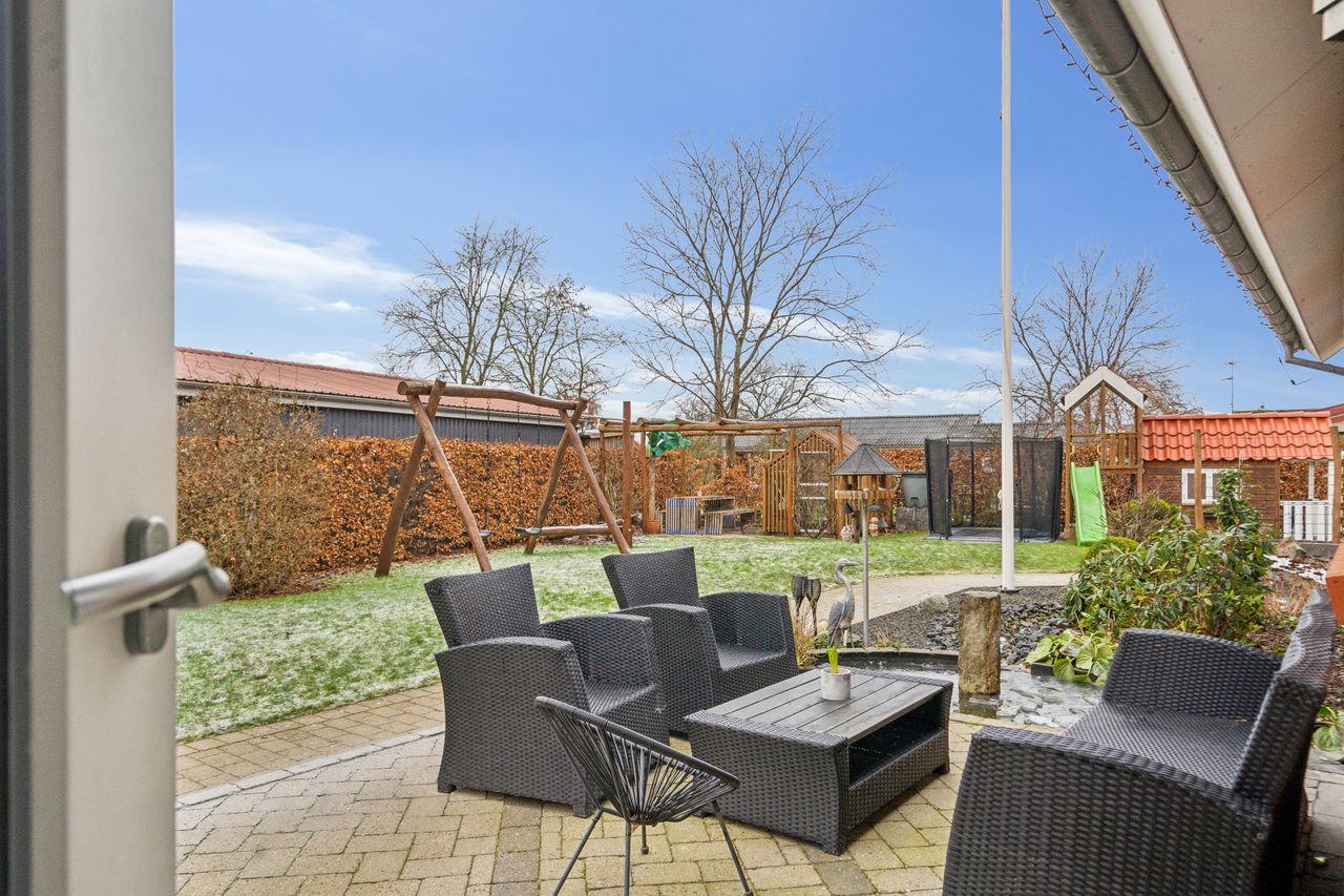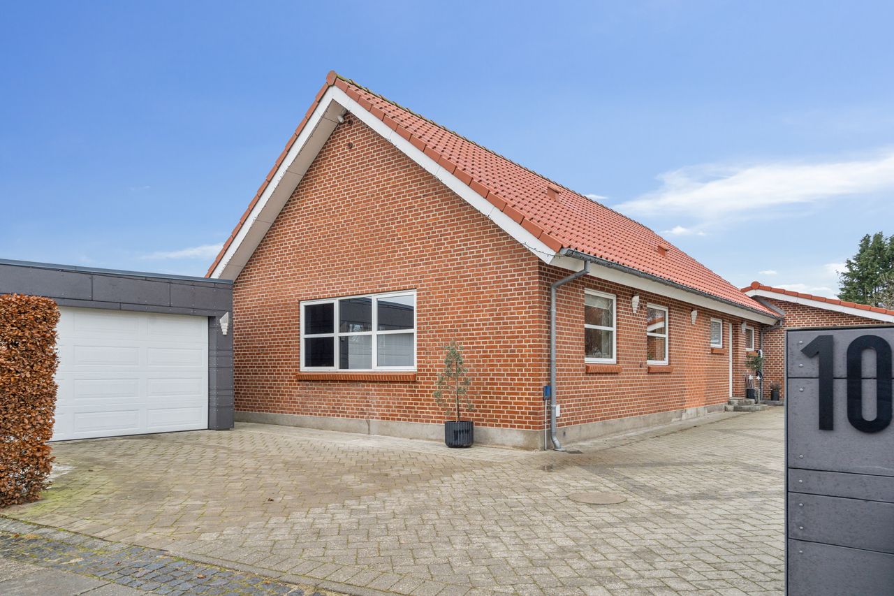 Til villaen hører flisebelagt indkørsel til isoleret og opvarmet garage på 49 kvm fra 2016 med el-port. Garagen er udstyret med en luft-til-luft varmepumpe, troldtekt loft med spots og solvarme. Derudover er villaen omkranset af sin egen lille oase med plads til både afslapning og leg. Den indbydende have rummer bl.a. en nedgravet trampolin, et legehus og en gynge, som gør den til børnenes eget lille paradis. Flere smukke terrasser, en pergola og et drivhus skaber hyggelige oaser rundt om huset, mens et mindre vandløb giver ekstra charme til haven.