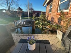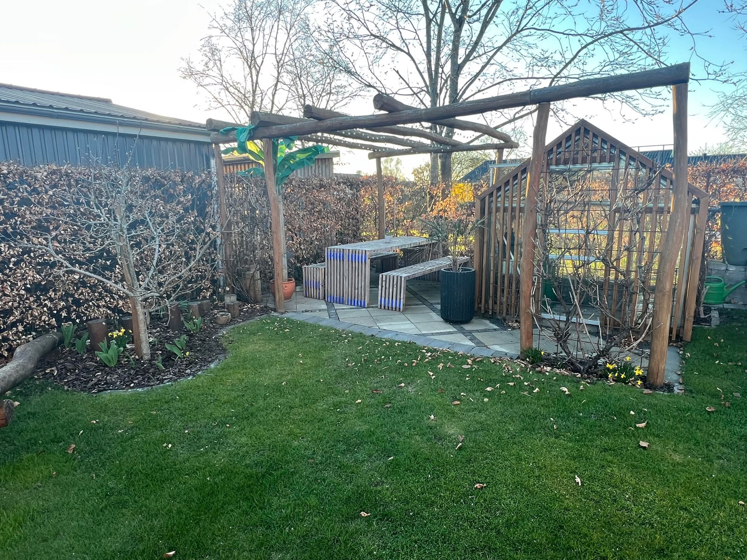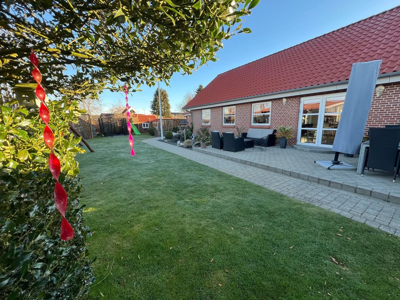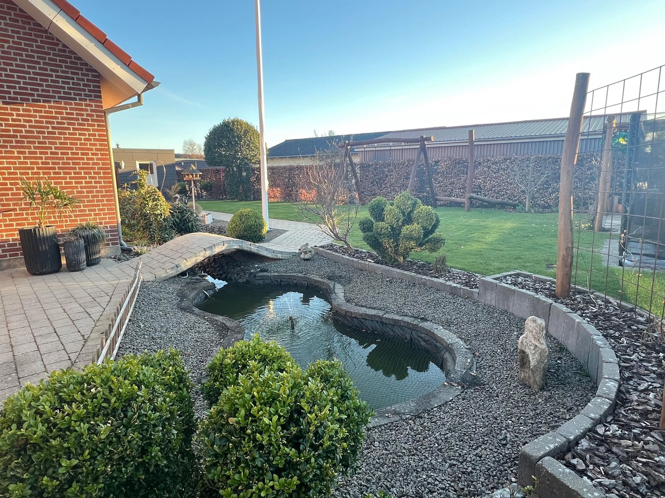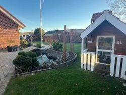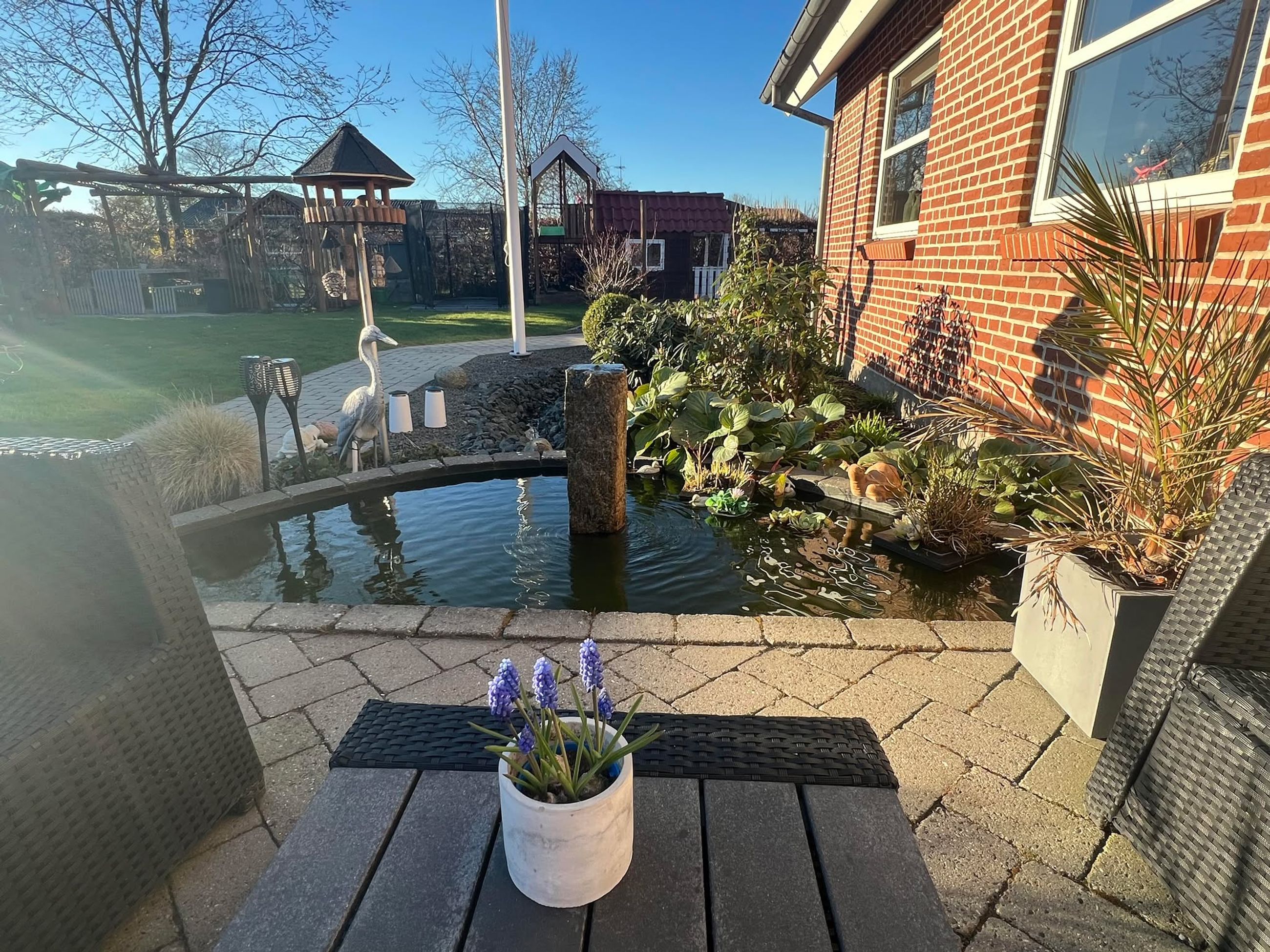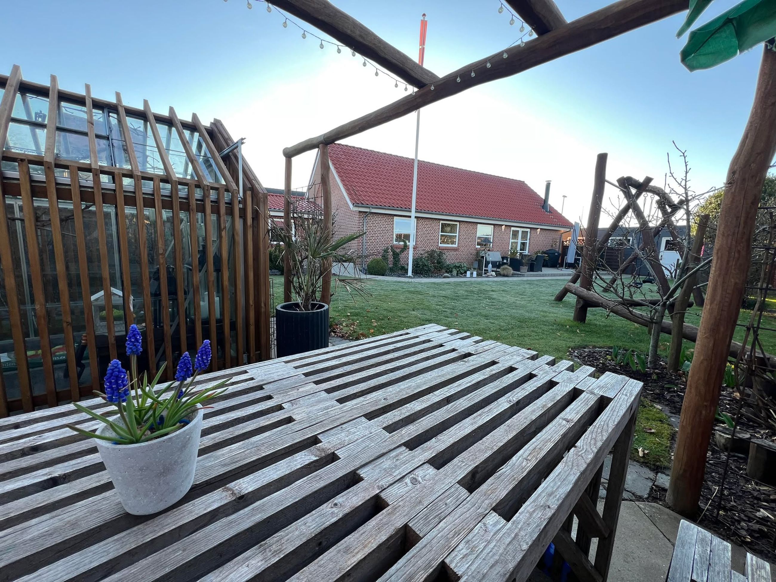 Opvarmet garage og en have, der indbyder til liv og hygge