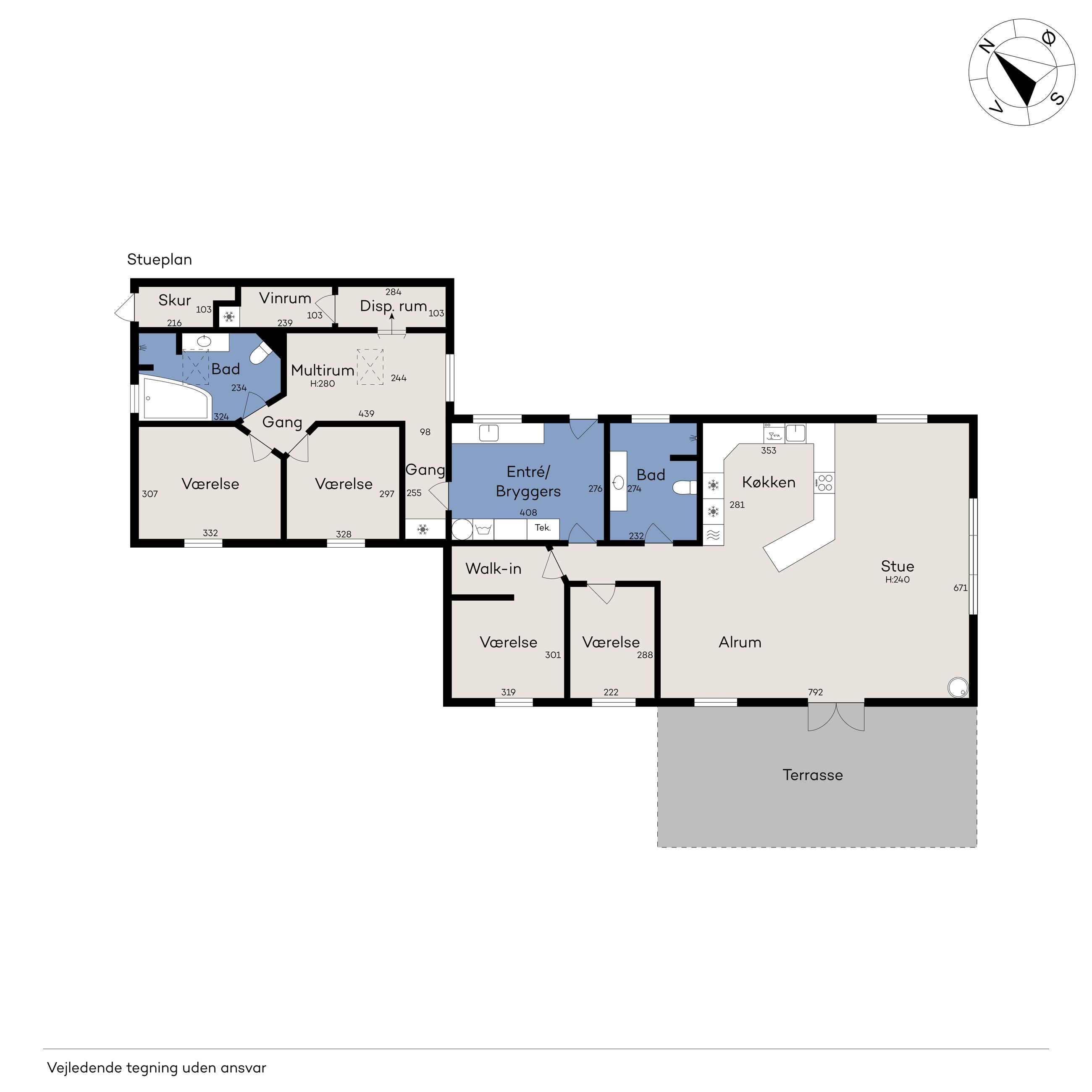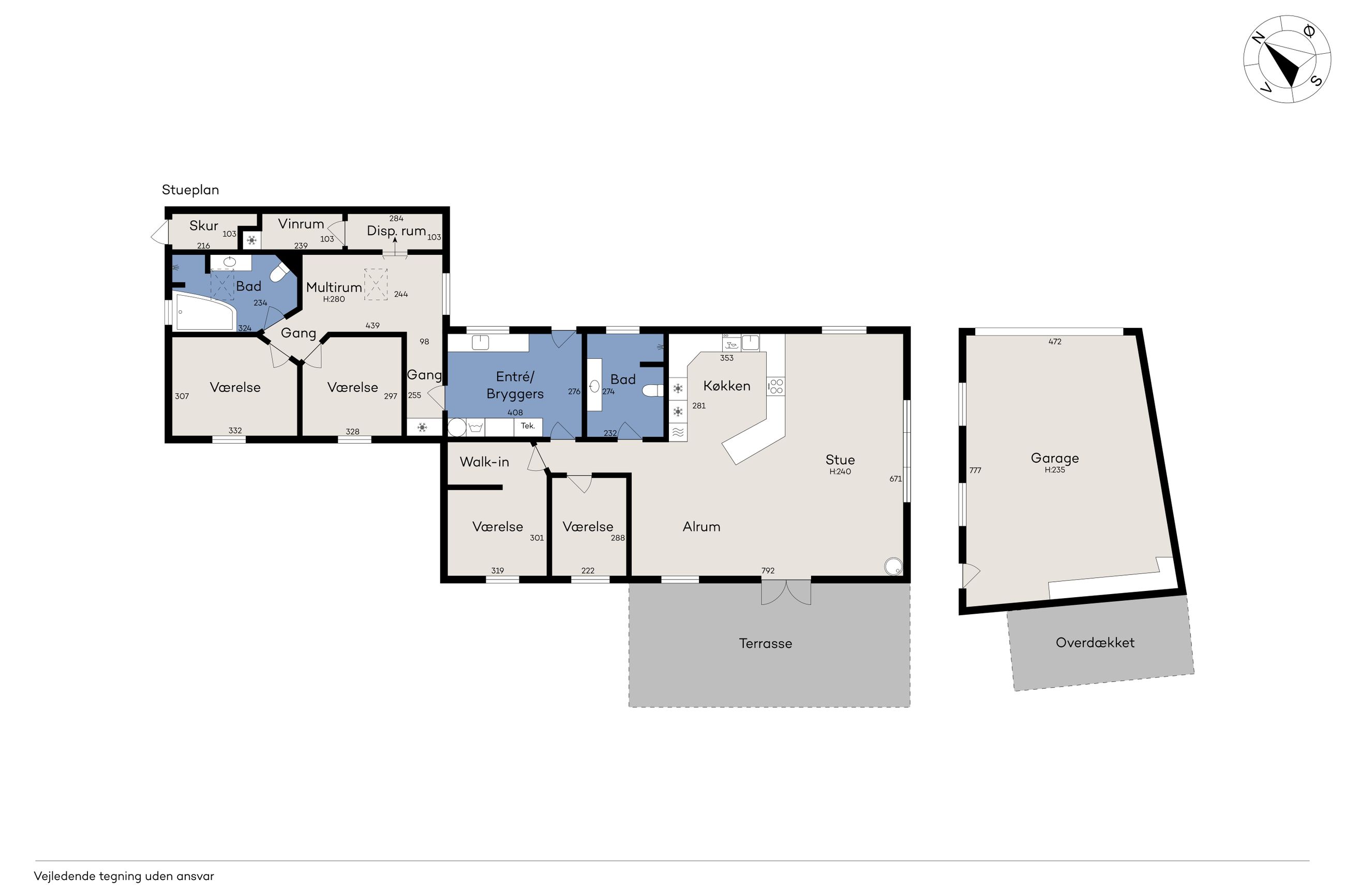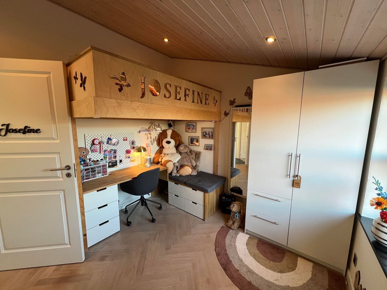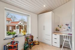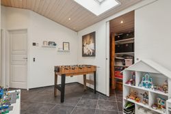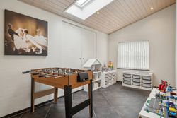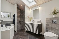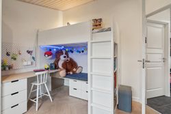 Derudover hører til boligen et fantastisk multi-/aktivitetsrum med ovenlys og loft til kip med adgang til praktisk depot- og vinrum. 4 gode værelser med gulve af massiv sildebensparket i eg, herunder 1 med walk-in closet og 2 med loft til kip. 2 stilfulde badeværelser, hvoraf det ene er med loft til kip, ovenlys, spa og brus.