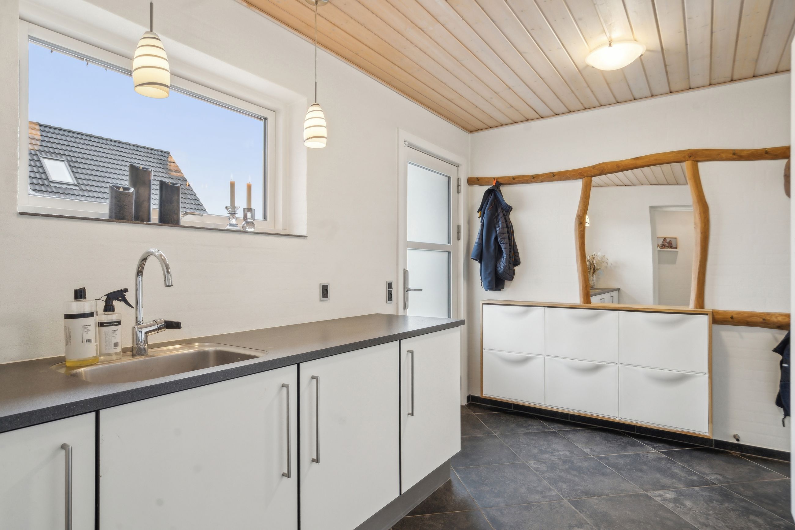 Velkommen til Bollersvej 10, et hjem der åbner sig i et indbydende opholdsmiljø. Det stilrene køkken lokker til kreativ madlavning, mens børnenes leg let kan følges.