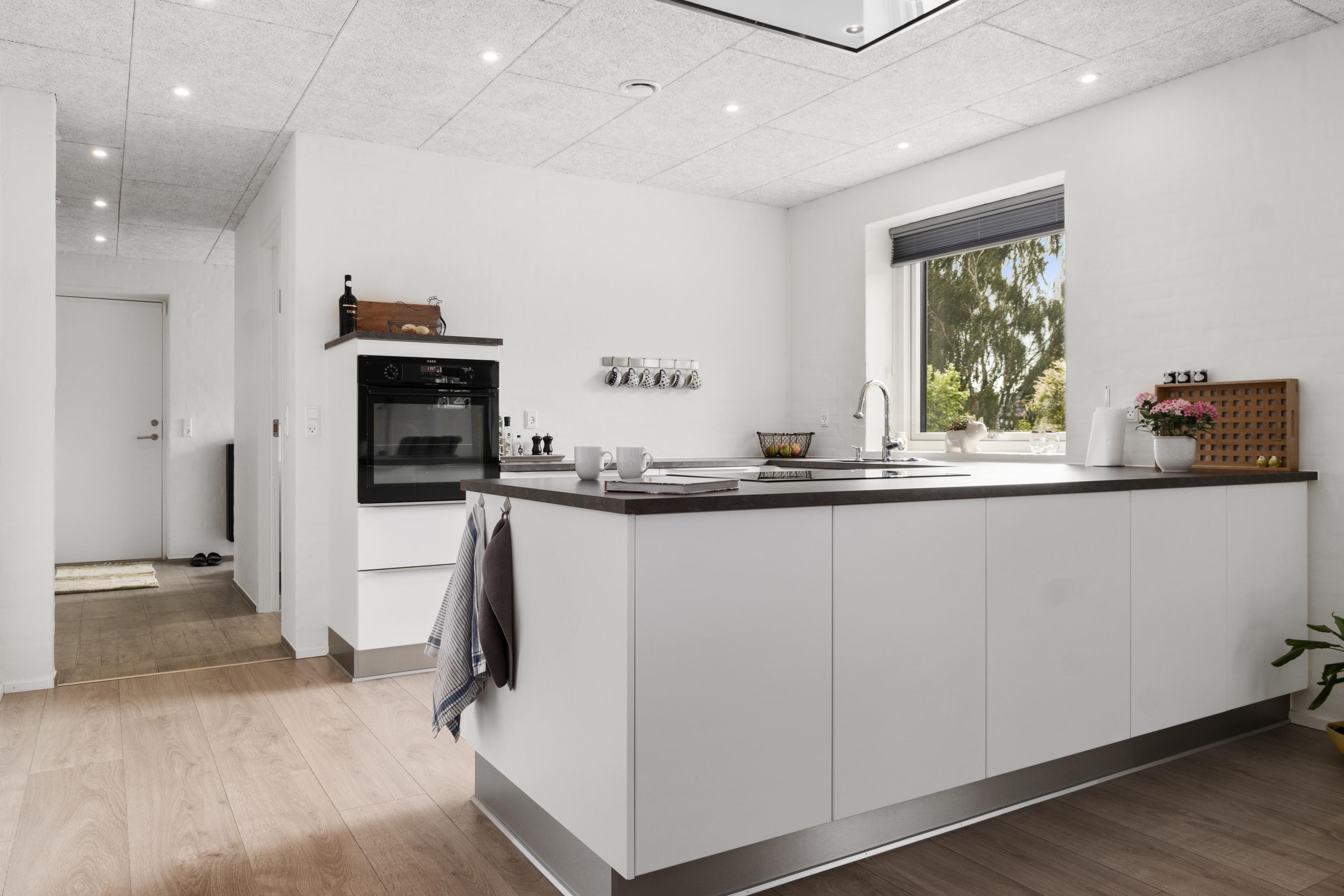 Attraktivt beliggende étplansvilla med 2 badeværelser, genvex, varmepumpe og gulvvarme