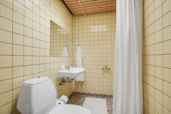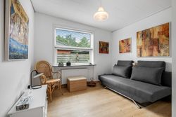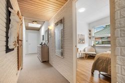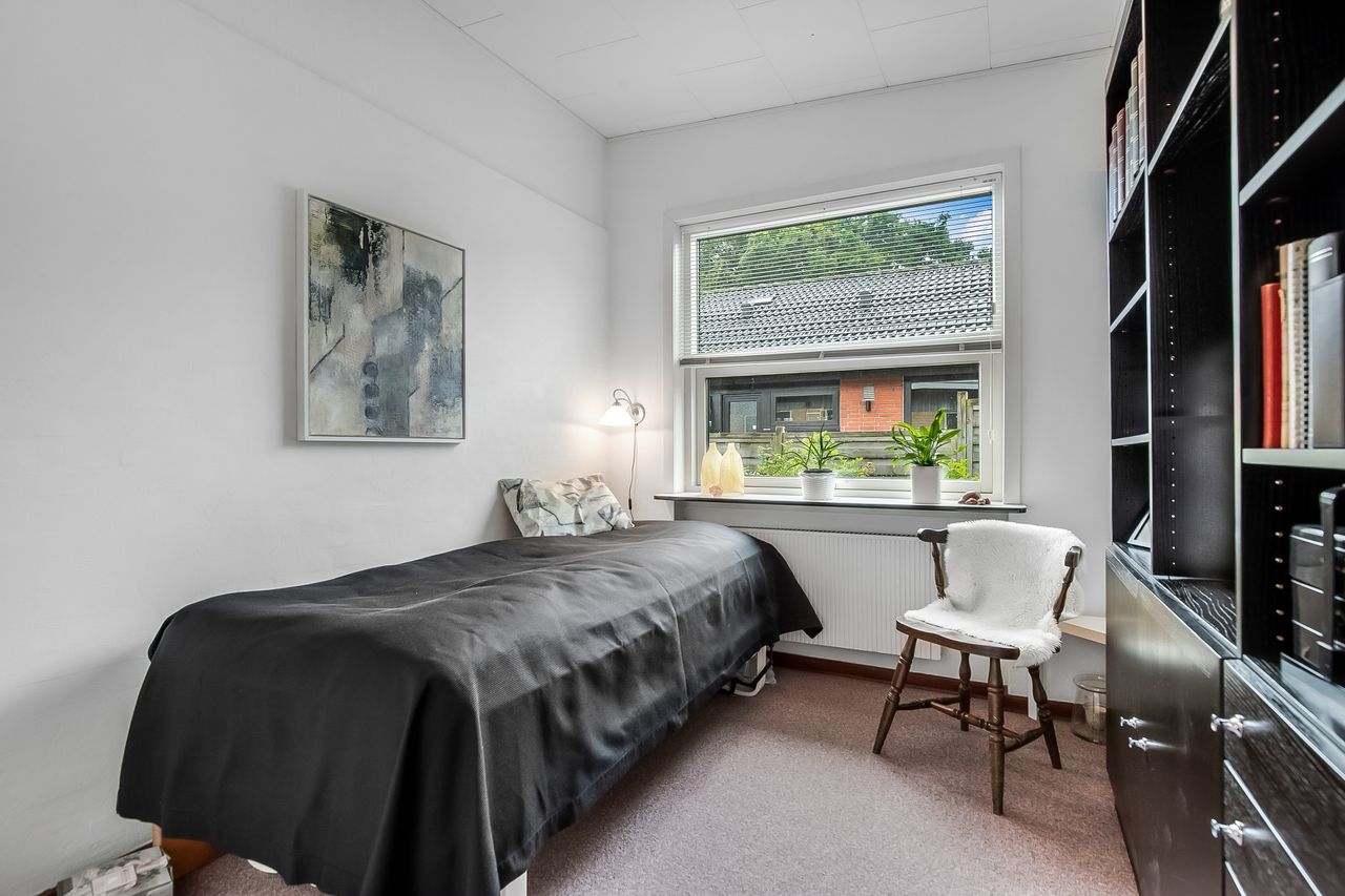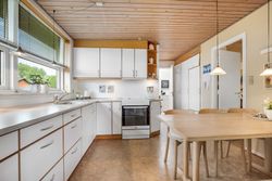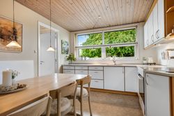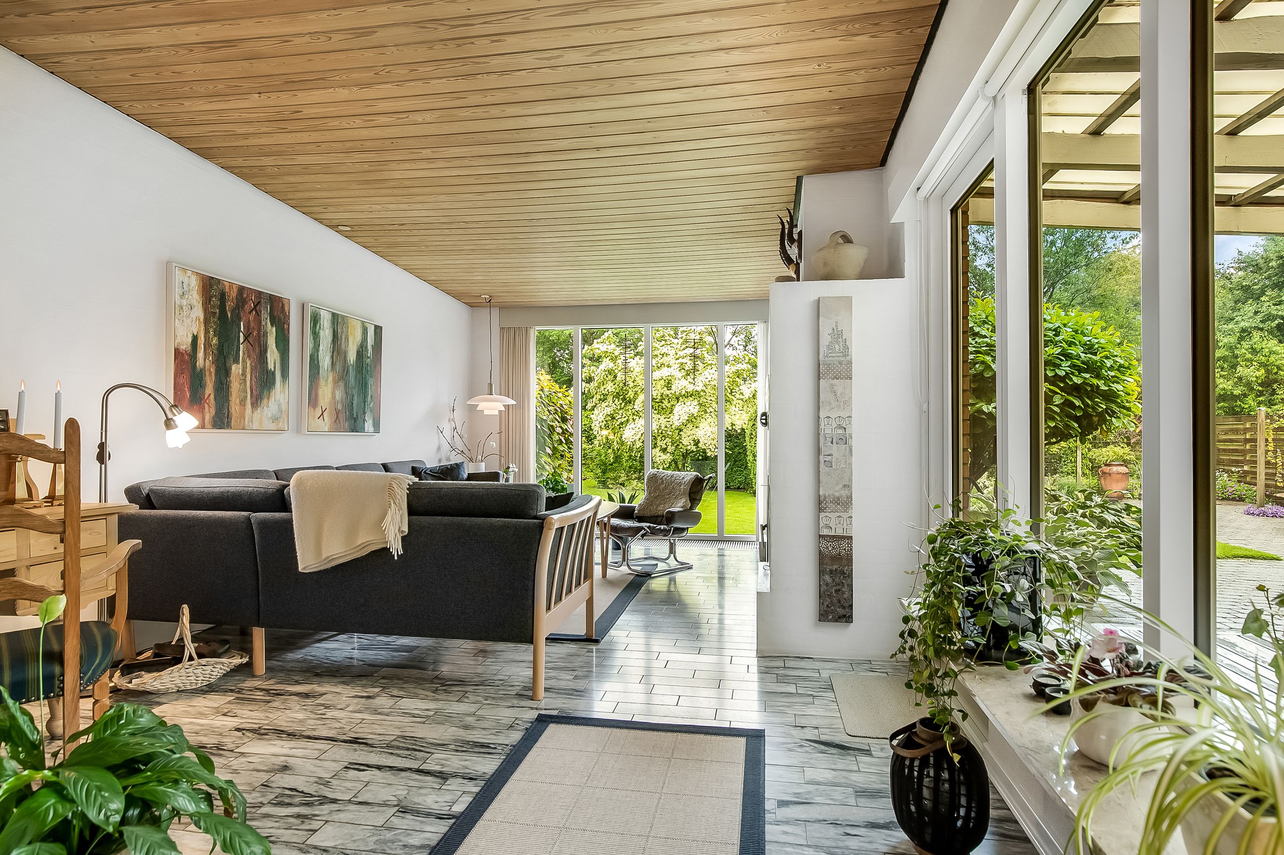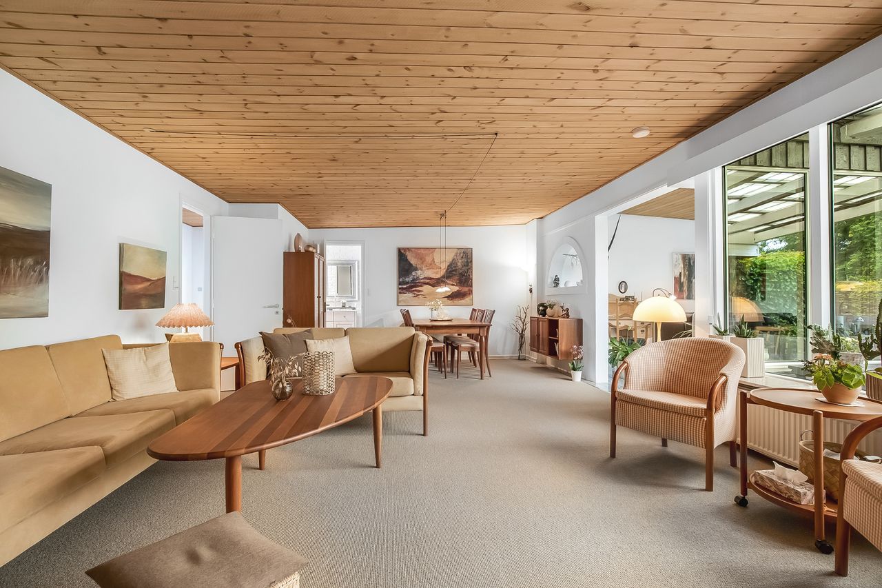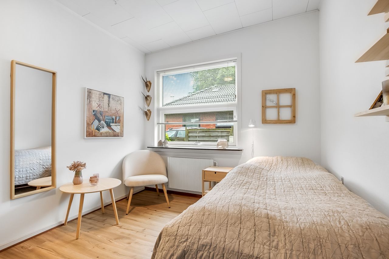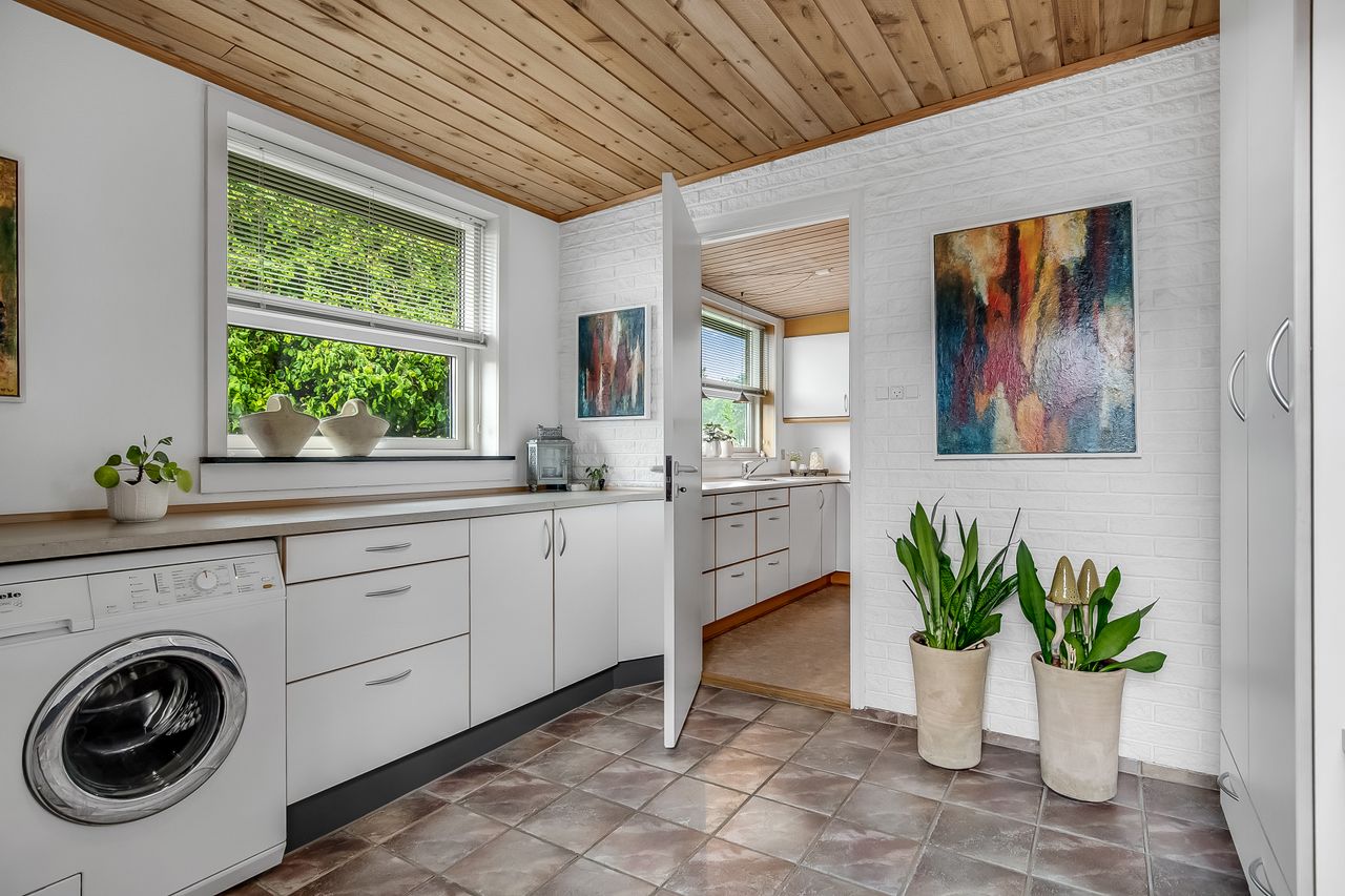 Indretningen består af entre / bryggers i forb. hermed køkken m. spiseplads. Herfra mellemgang i forb. m. entre, bad m. brus samt 2 værelser ( heraf det ene oprindelig opdelt i 2 ). Særskilt sovegang indrettet med værelse, soveværelse samt bad m. brus. Gangarealerne og bad er forsynet med ovenlys. Man oplever således dagslyset overalt i bygningen. Fra køkken og mellemgang adgang til til rummelig spise-/ opholdsstue i åben forbindelse til pejsestue med indsats. Herfra udgang til vestvendt overdækket terrasse.