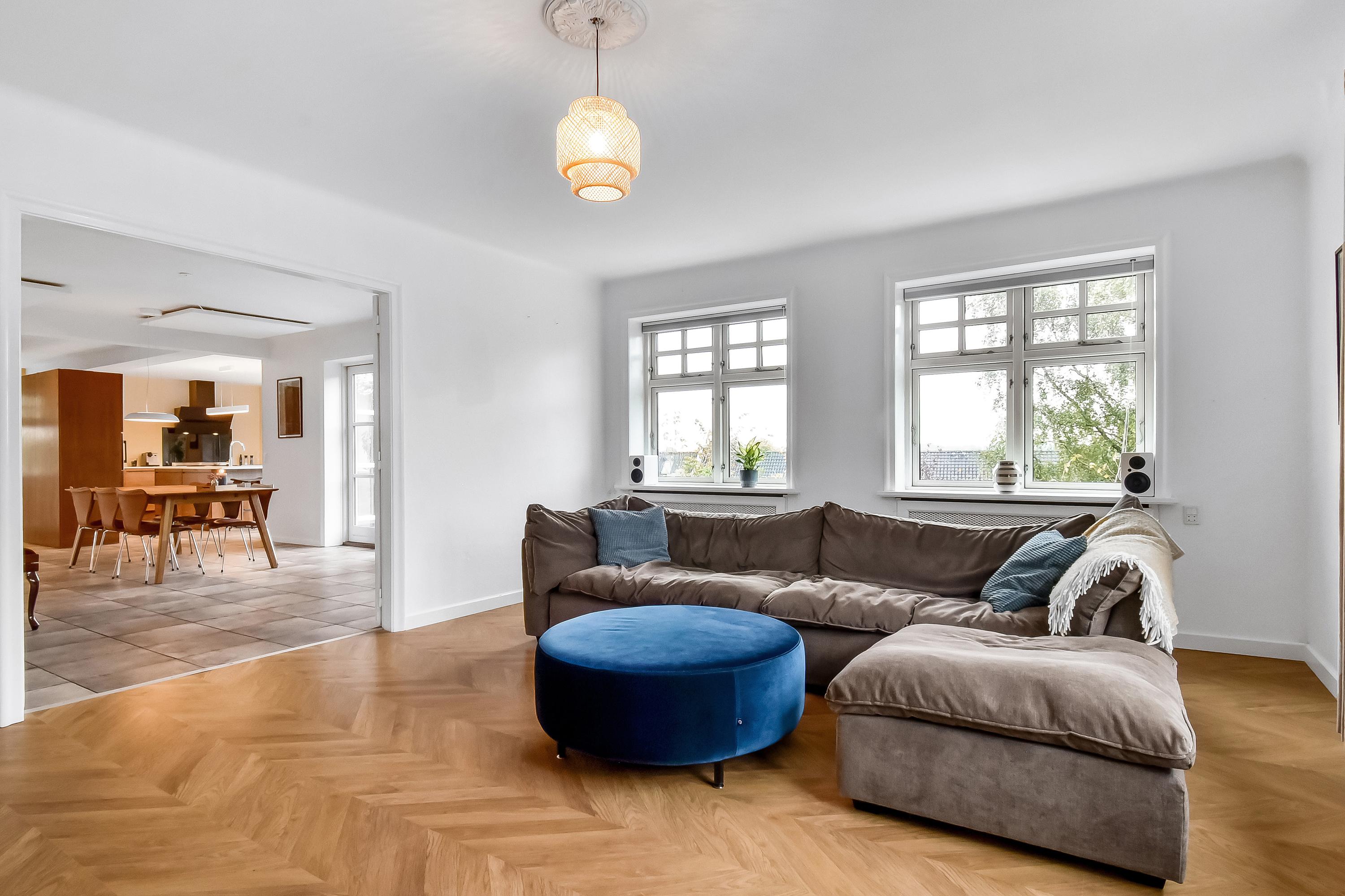 Villaen byder på et rummeligt boligareal på 200 m2, hvortil der kommer en kælder på hele 122 m2, hvilket giver masser af plads til både bolig og