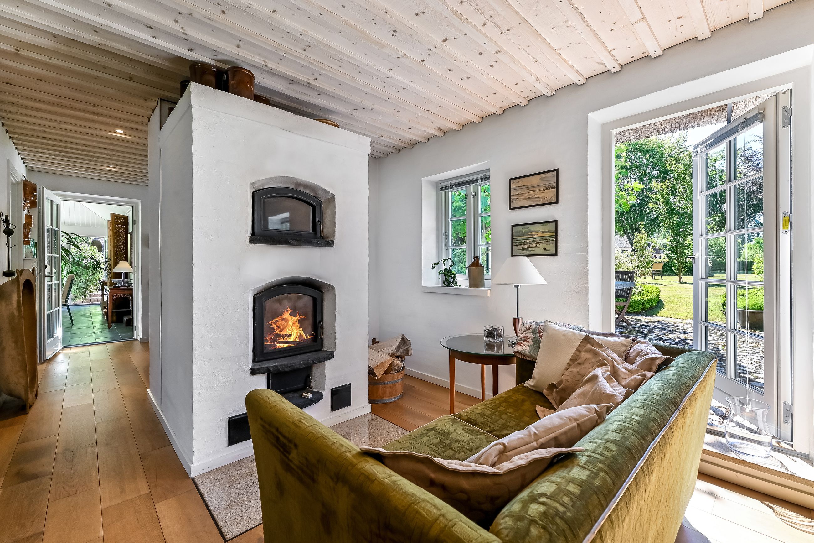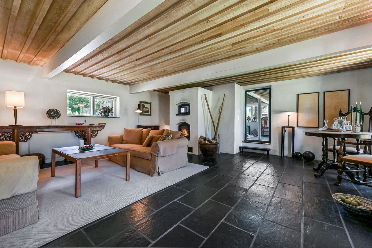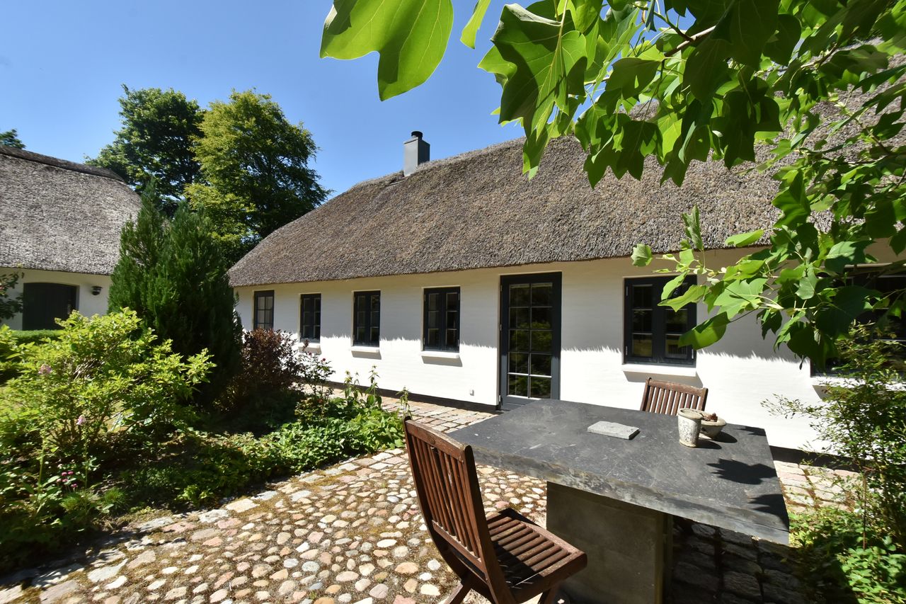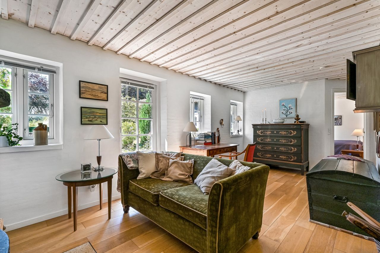 Stuehuset, der tilsammen er forbundet i 2 længer, byder på hele 303 m2, hvor den ene længe er genopført i 2014 med respekt for den originale og eksisterende bygningsmasse.