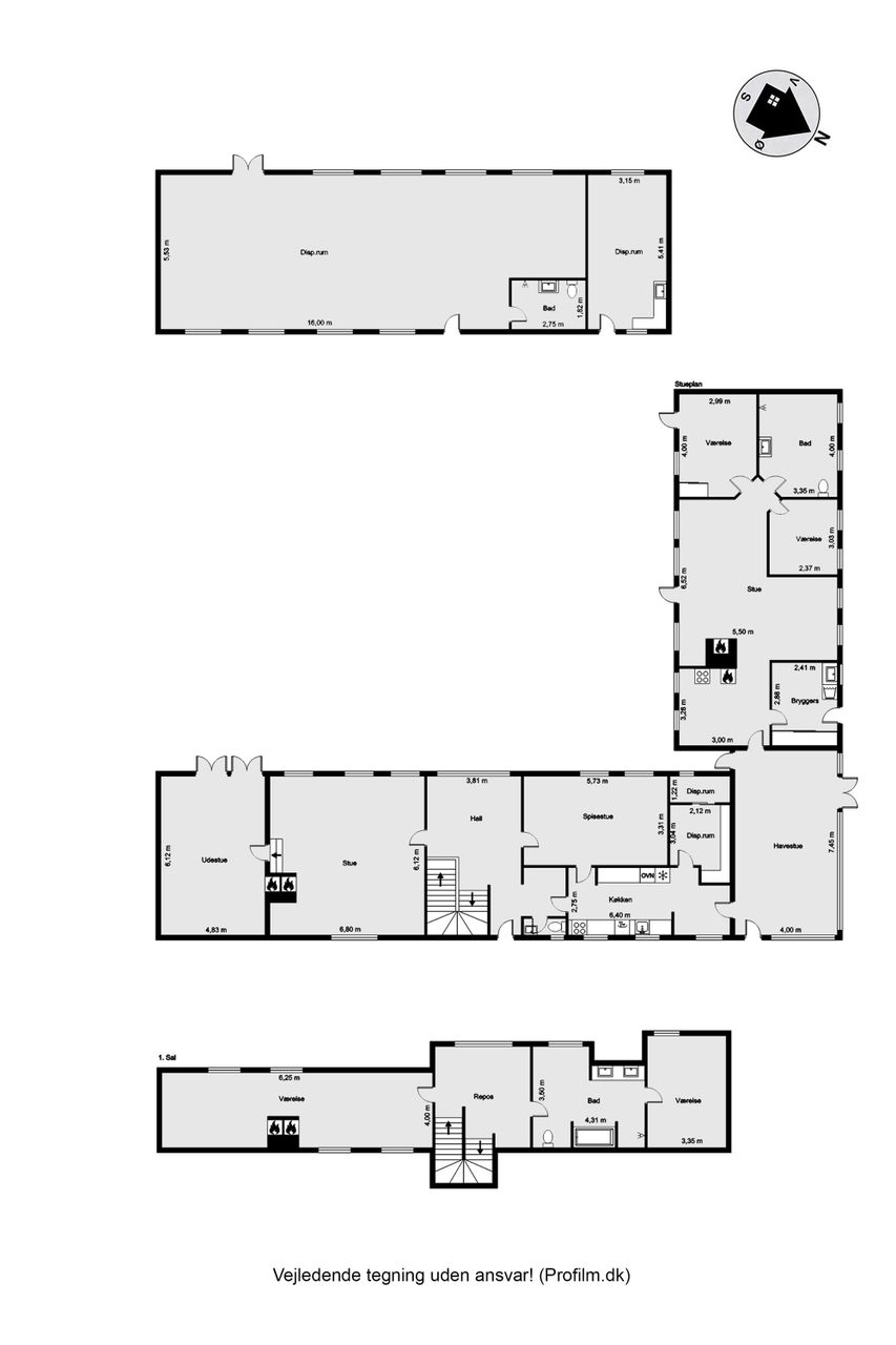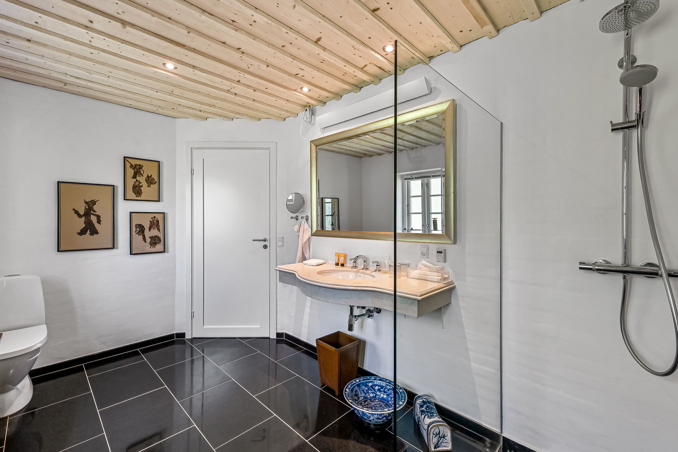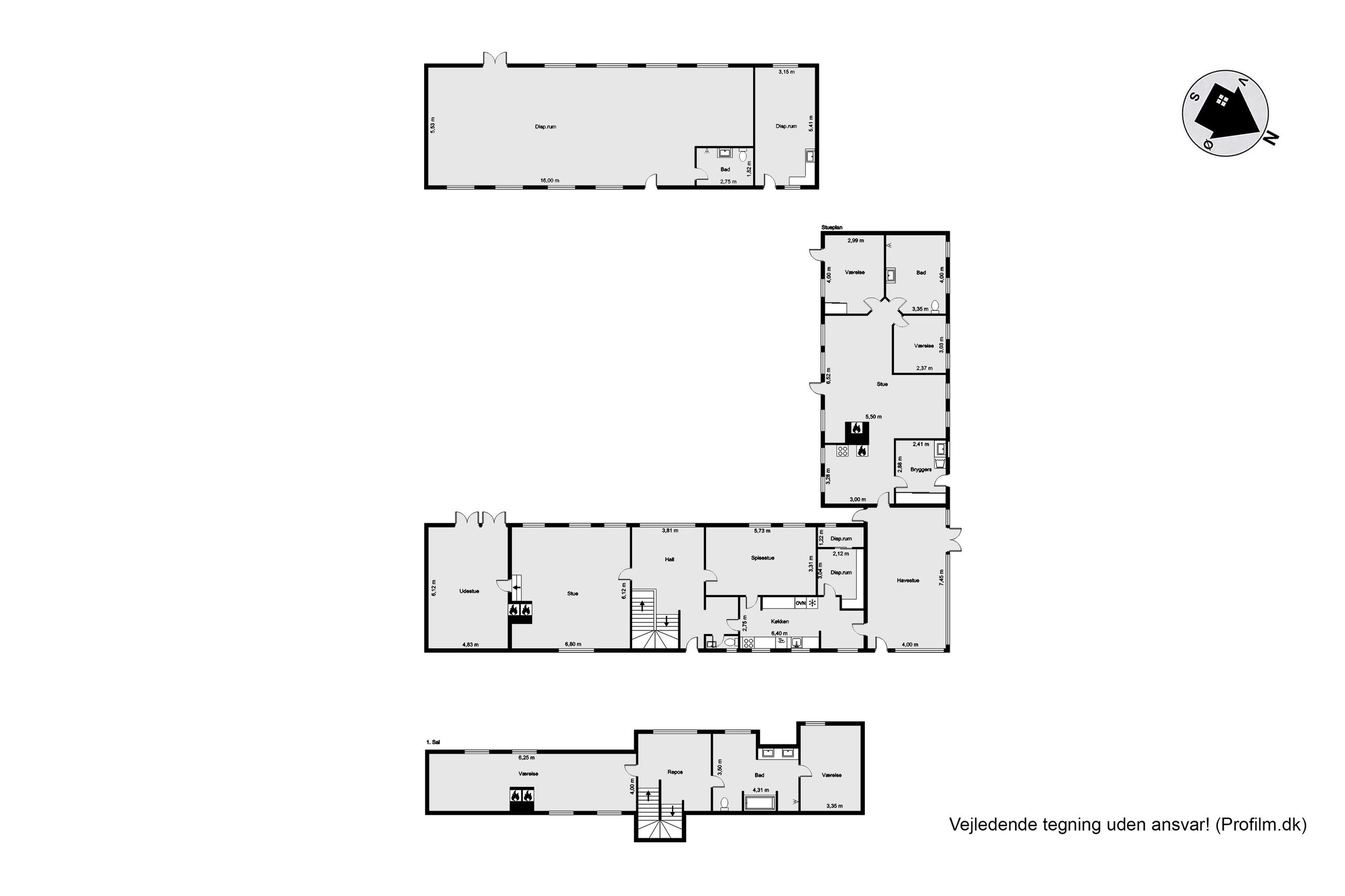 Stuehuset, der tilsammen er forbundet i 2 længer, byder på hele 303 m2, hvor den ene længe er genopført i 2014 med respekt for den originale og eksisterende bygningsmasse.