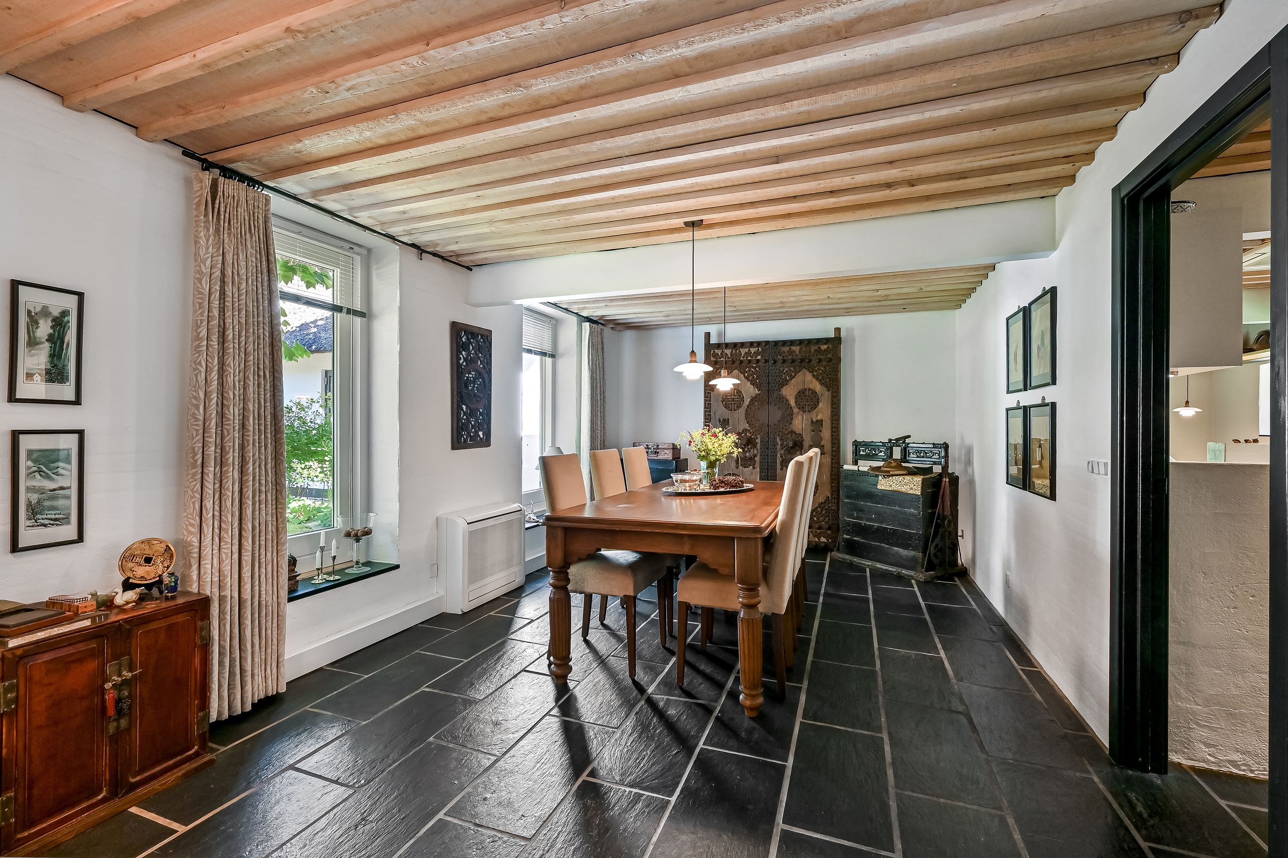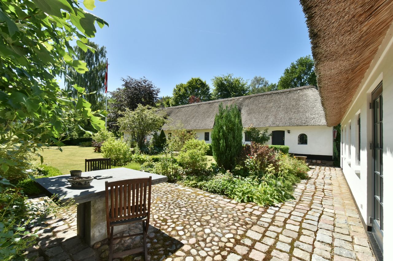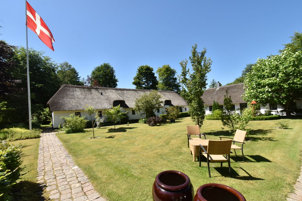 Ejendommens bygninger rummer den karakteristiske charme af en 3-længet landejendom, der er blevet nænsomt moderniseret og opdateret ad flere omgange.