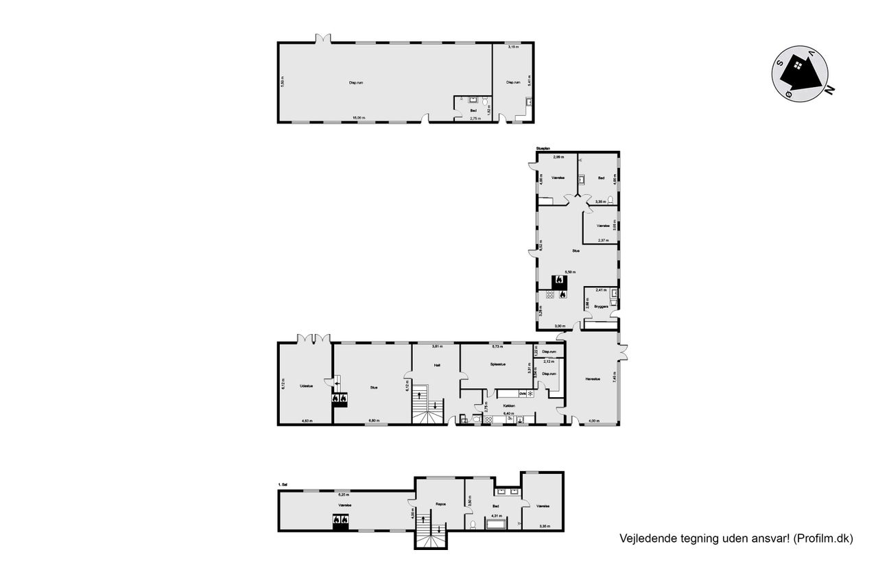 Ejendommens udbygninger rummer en bred vifte af funktionelle muligheder, der gør den ideel til både hobbybrug, liberalt erhverv og praktiske behov. Bygningerne er strategisk placeret og tilbyder lagerfaciliteter, drivhuse, væksthuse, hestefaciliteter og en stor frugthave – alt sammen perfekt til dig, der ønsker et liv i forening med naturen.
