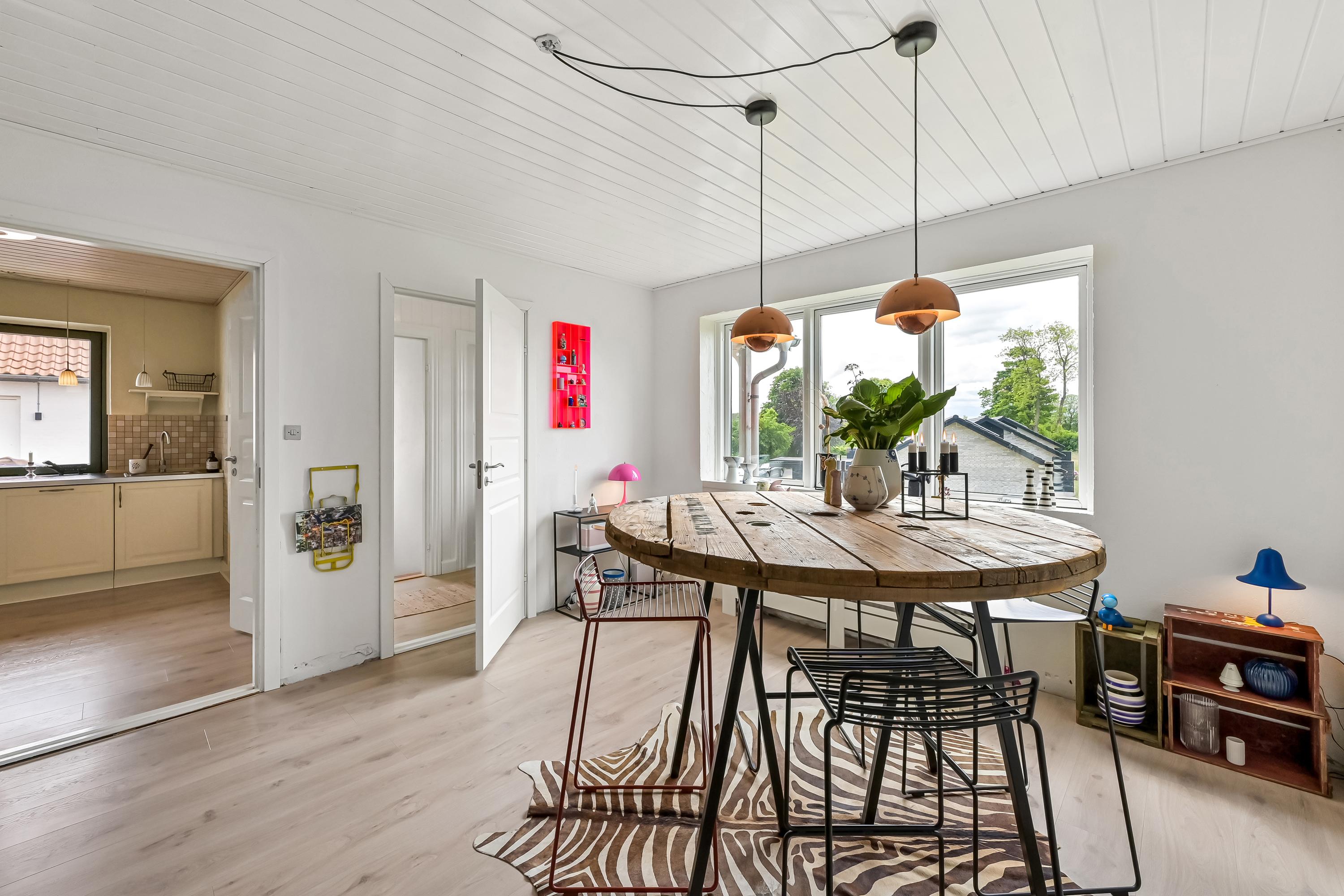 Centralt beliggende i Give midtby, men samtidig på en rolig adresse, finder man denne villa med et samlet etageareal på 144 m2. Her er man i gåafstand til både indkøb, togstation, skole og idrætsfaciliteter alt sammen inden for 5-10 minutter til fods, hvilket giver en praktisk og bekvem