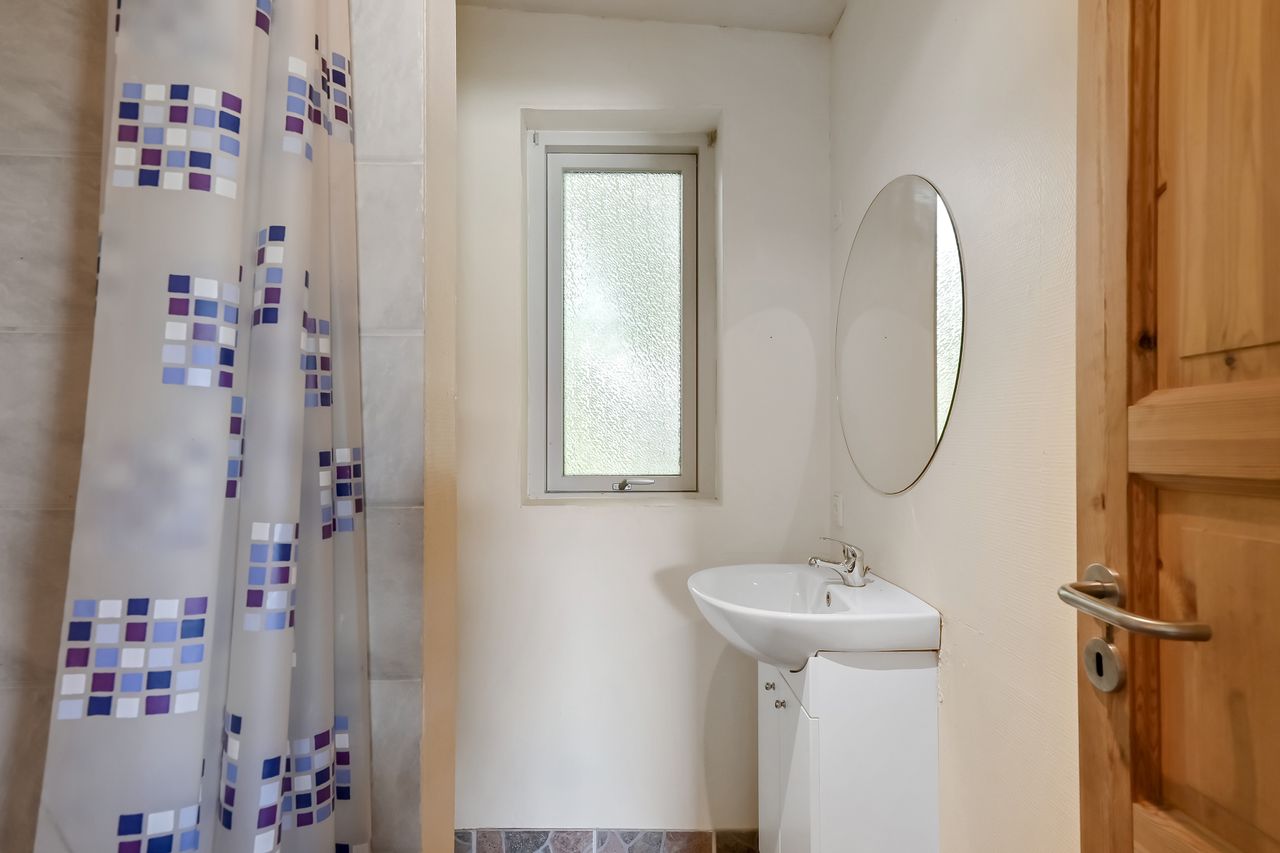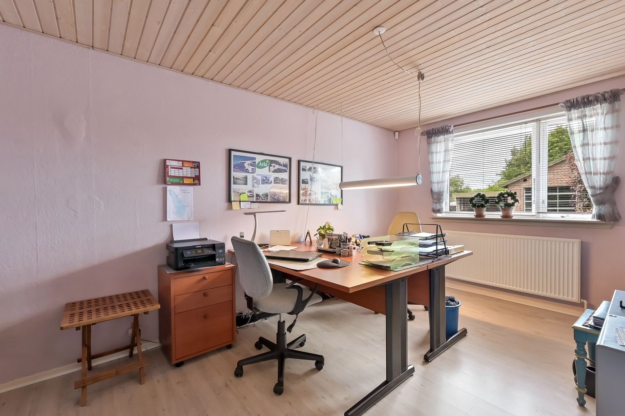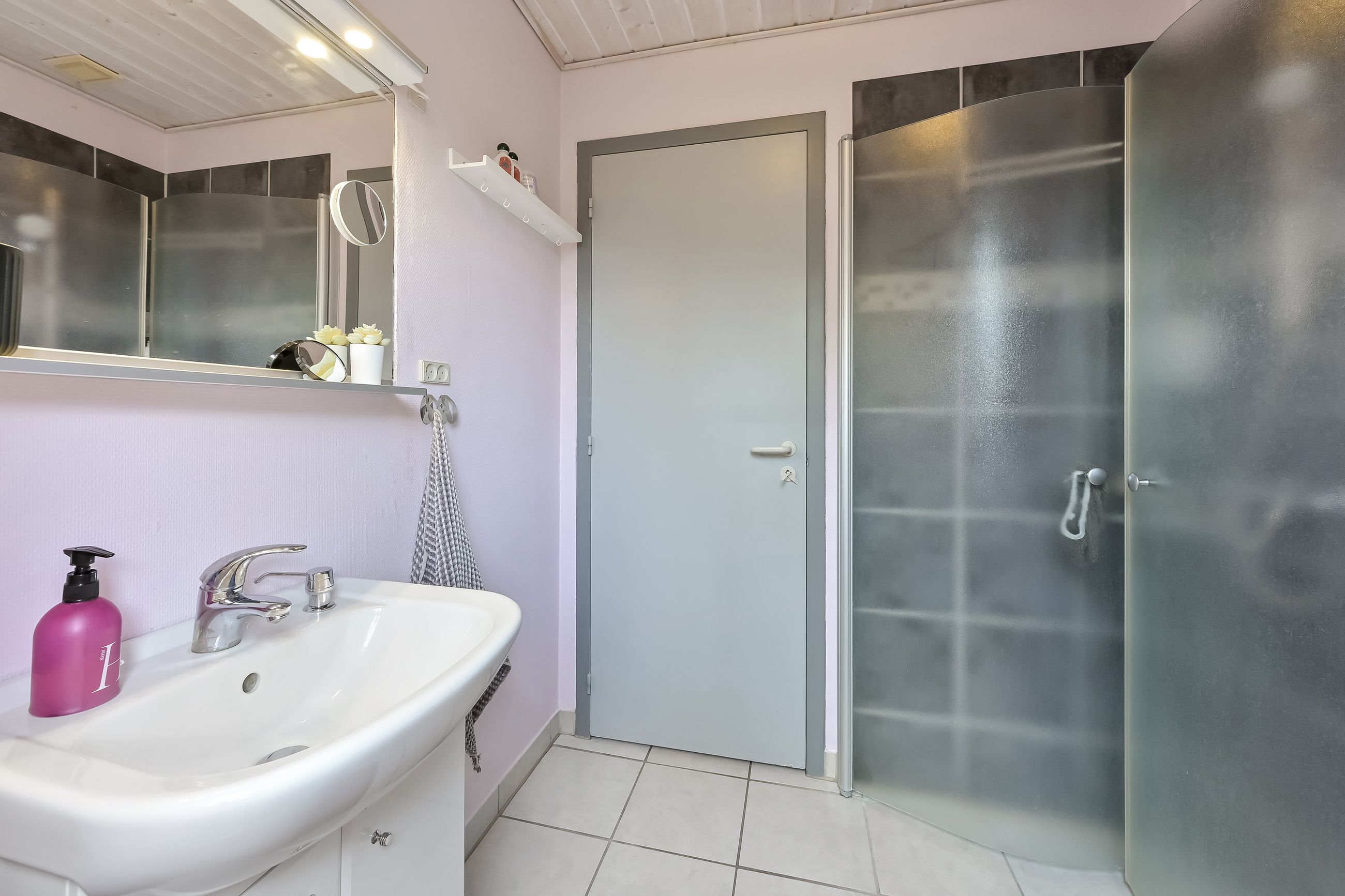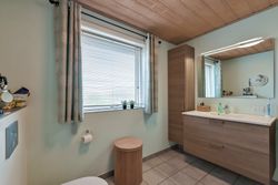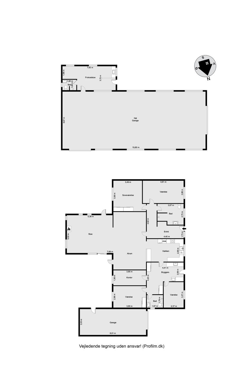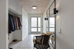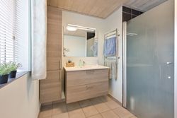 Entréen fungerer som en kombineret fordelingsgang med god bredde, der leder videre til et pænt nyere badeværelse samt soveværelset og et stort kontor. Udenfor venter flere terrasser omkring ejendommen, hvor man kan nyde de gode læforhold i den flot anlagte have. Garagen, der ligger i forlængelse af villaen, er udstyret med sedumtag - en bæredygtig løsning der også bidrager til husets æstetik.