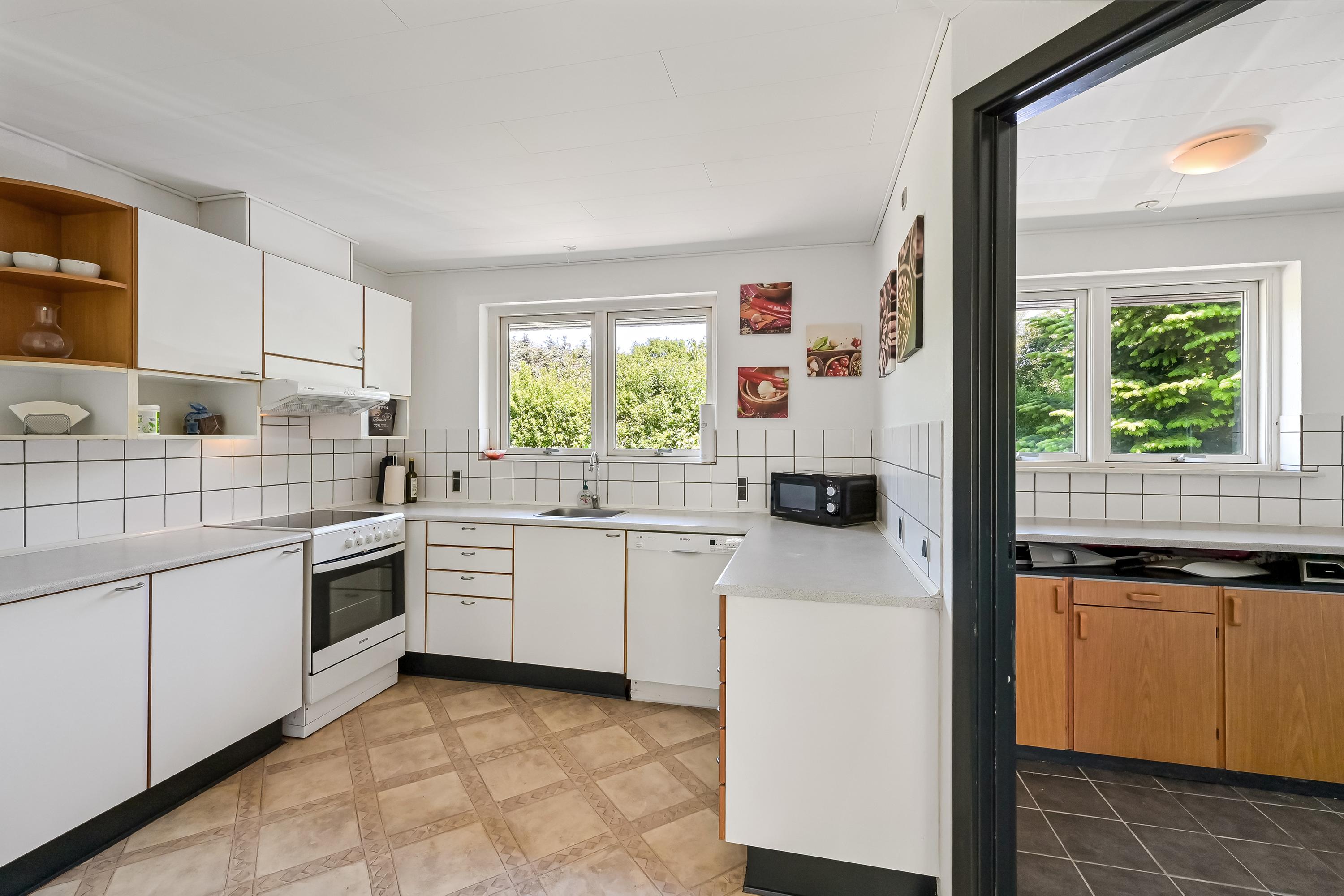 Velholdt 1 plans villa i Farre med rummelig indretning og skøn have