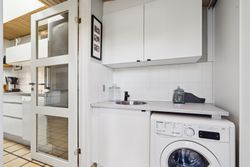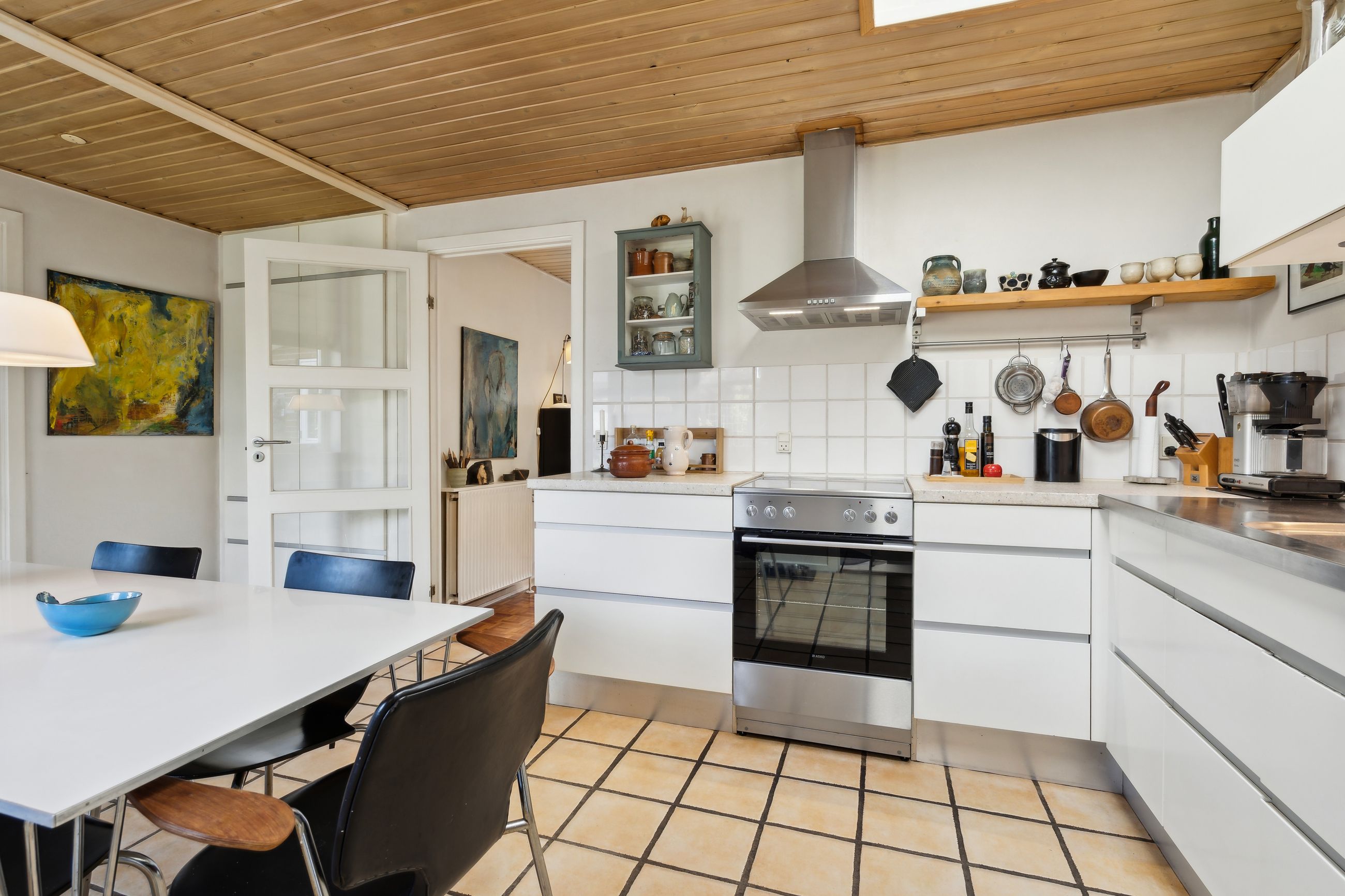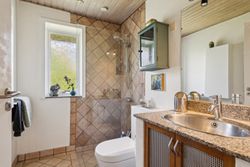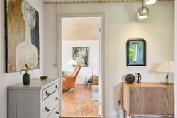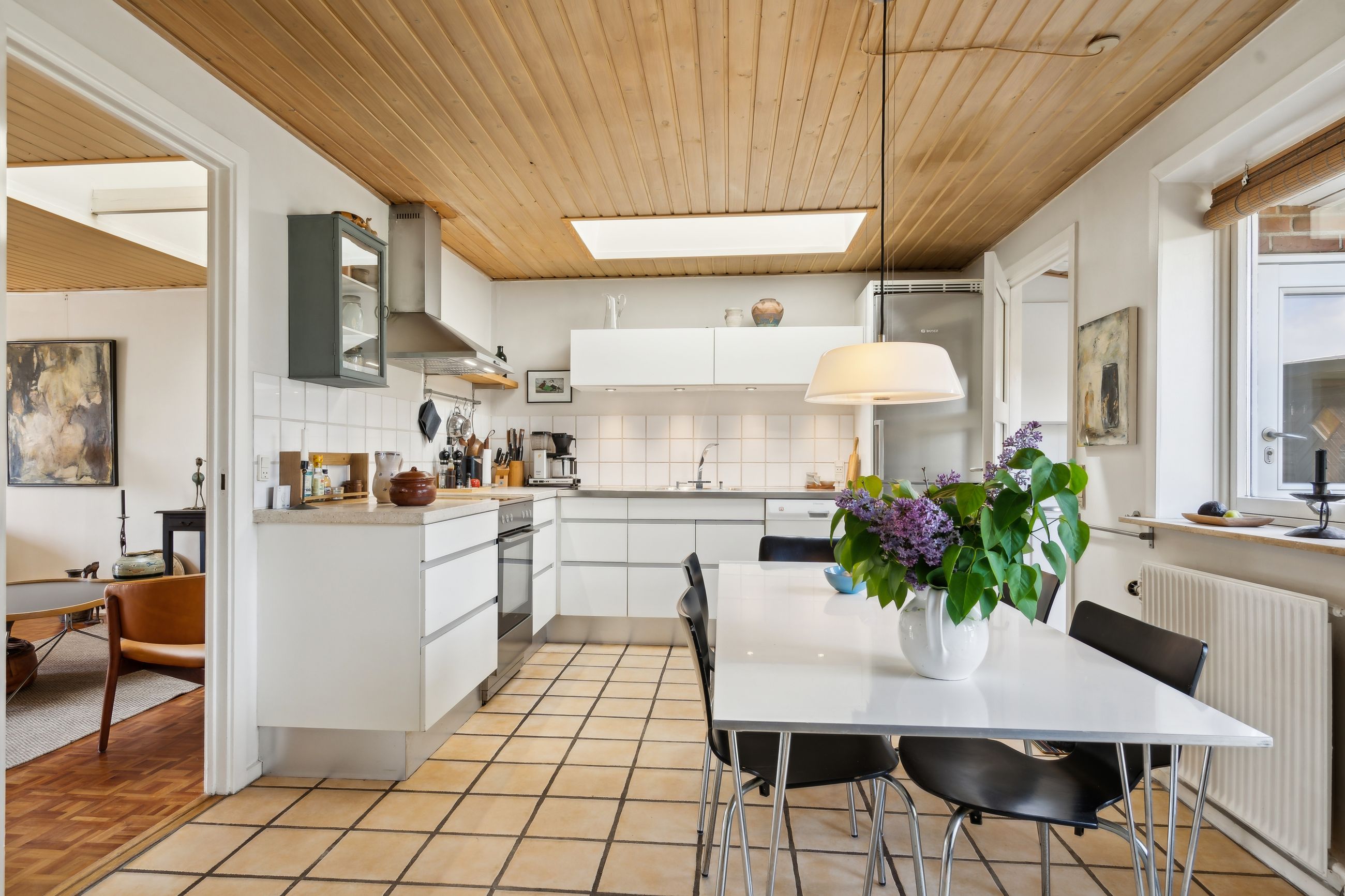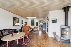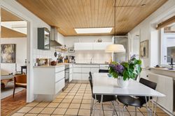 Indendørs venter et lyst og indbydende køkken-alrum med ovenlysvinduer, som giver et skønt lysindfald dagen igennem. I den rummelige stue er der også ovenlysvinduer og på kølige dage sørger den hyggelige brændeovn for varme og stemning. Boligen rummer desuden tre værelser samt et pænt badeværelse.
