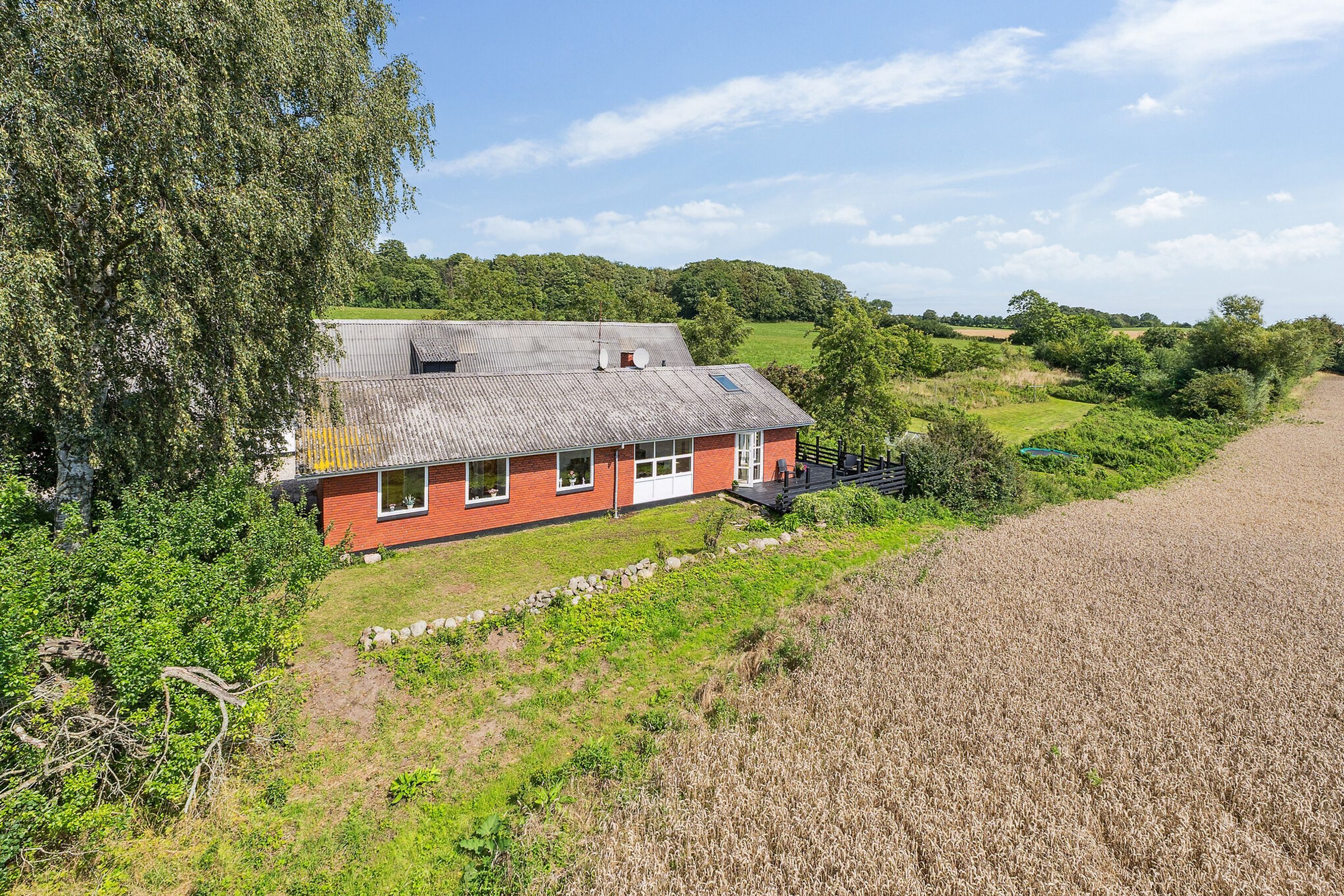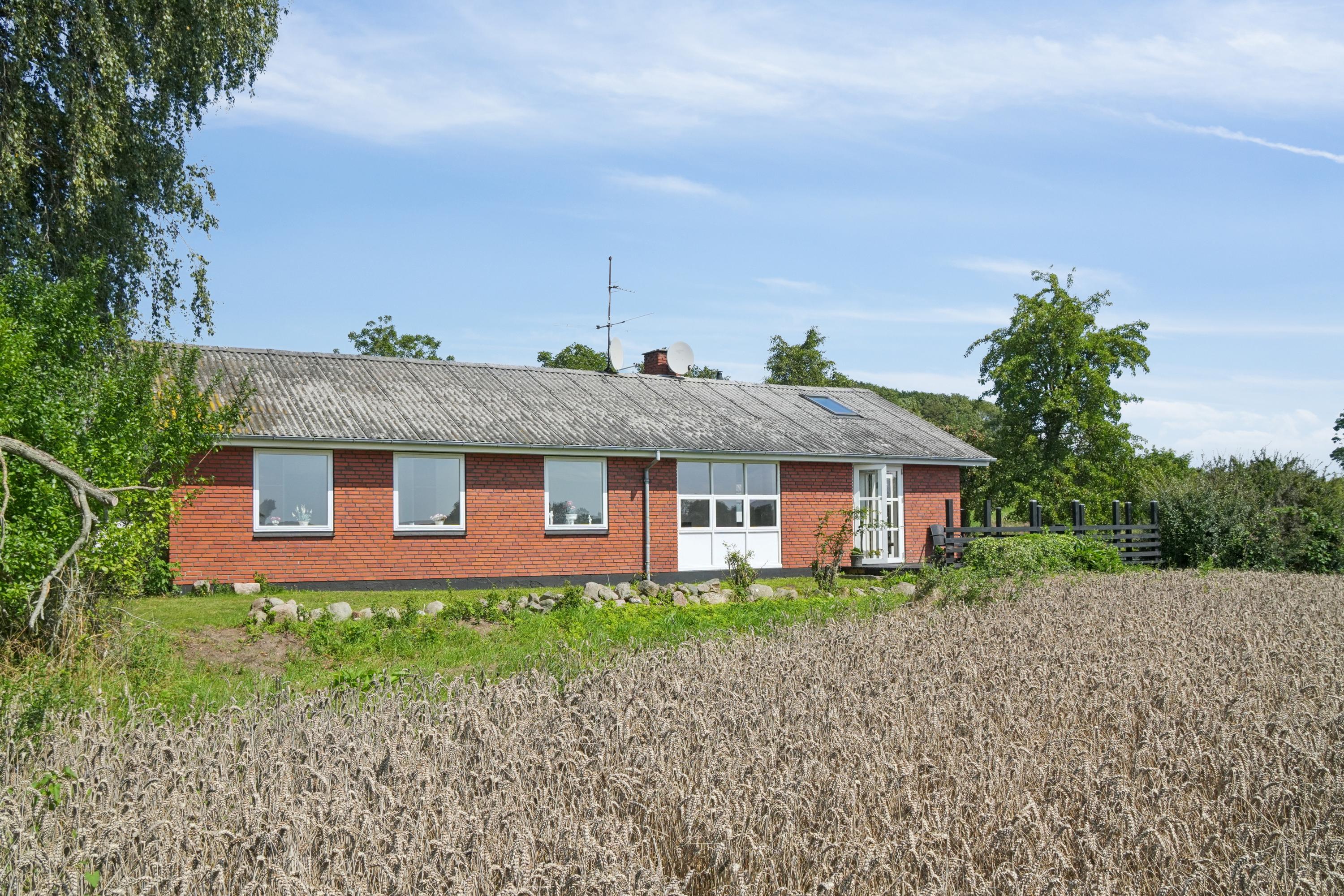 Midt i den skønne sydfynske natur finder du denne charmerende rødstensvilla i ét plan, beliggende på en stor grund med masser af luft og udsigt til åbne marker.