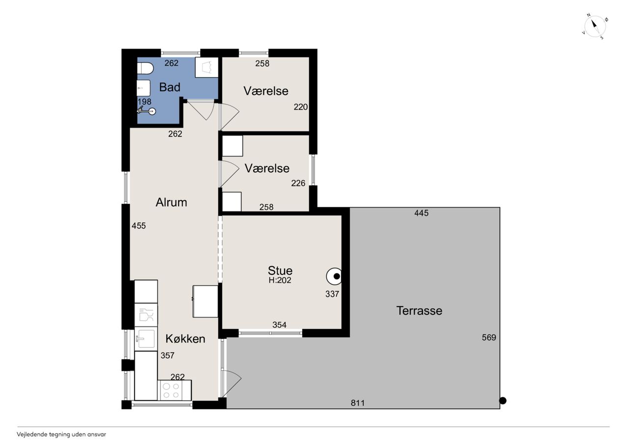 Indretningen byder på to gode soveværelser, en lys og venlig stue samt et dejligt køkken-alrum, der indbyder til fællesskab.
