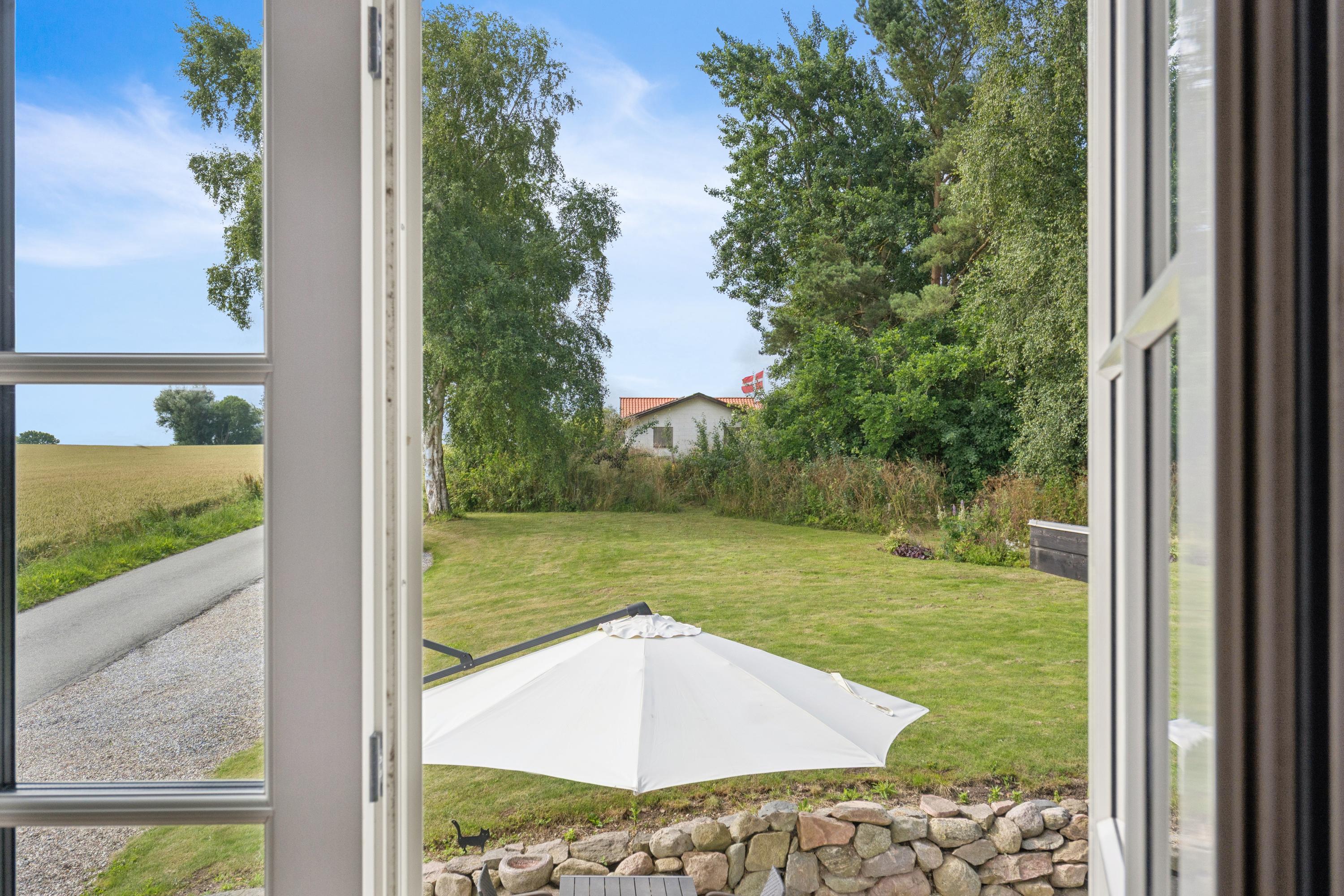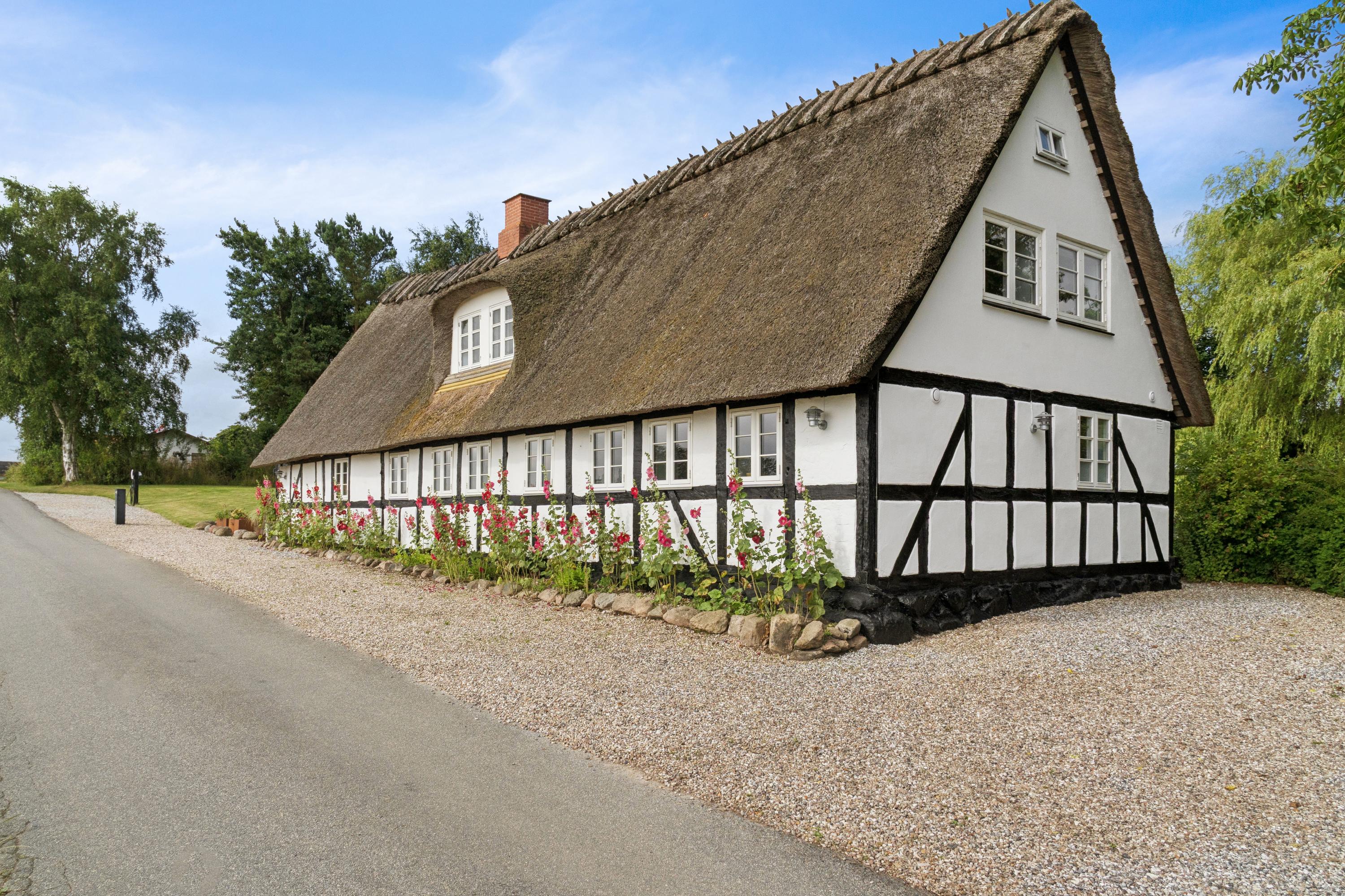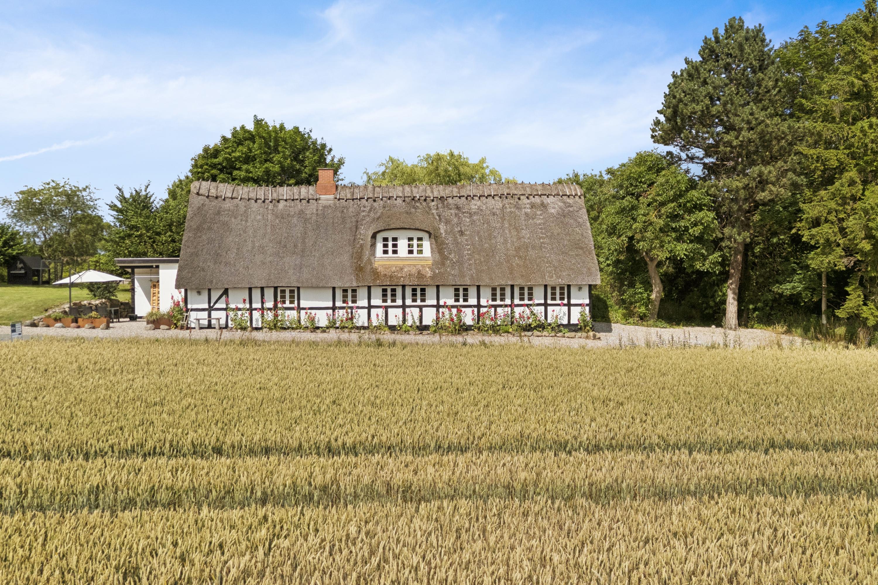 Her får I en charmerende og nænsomt renoveret bindingsværksejendom midt i det åbne landskab med frit udsyn til grønne marker, en levende mose, og skoven i horisonten. Beliggenheden på en fredelig, lukket vej skaber en særlig ro, hvor naturens lyde tager over.