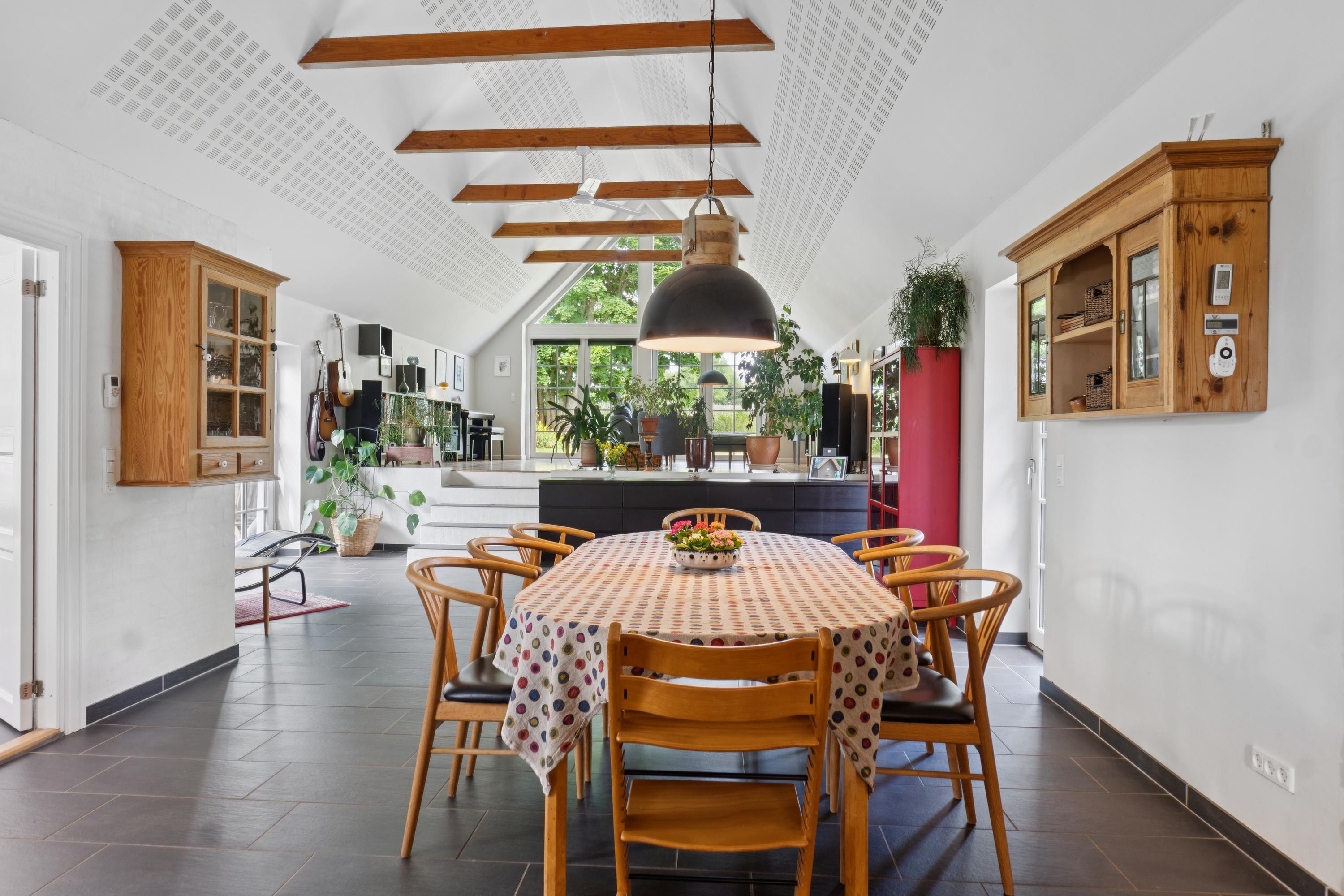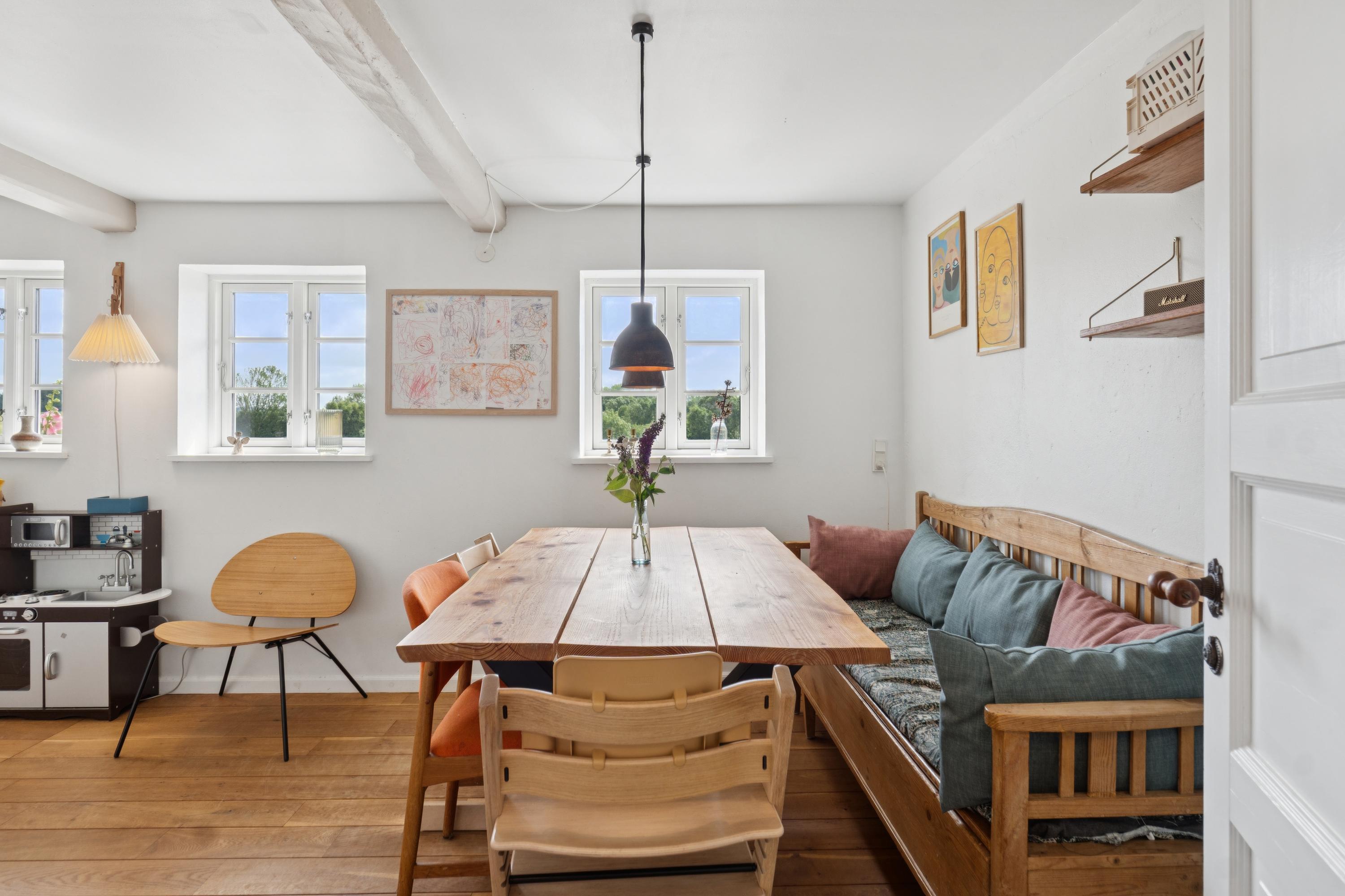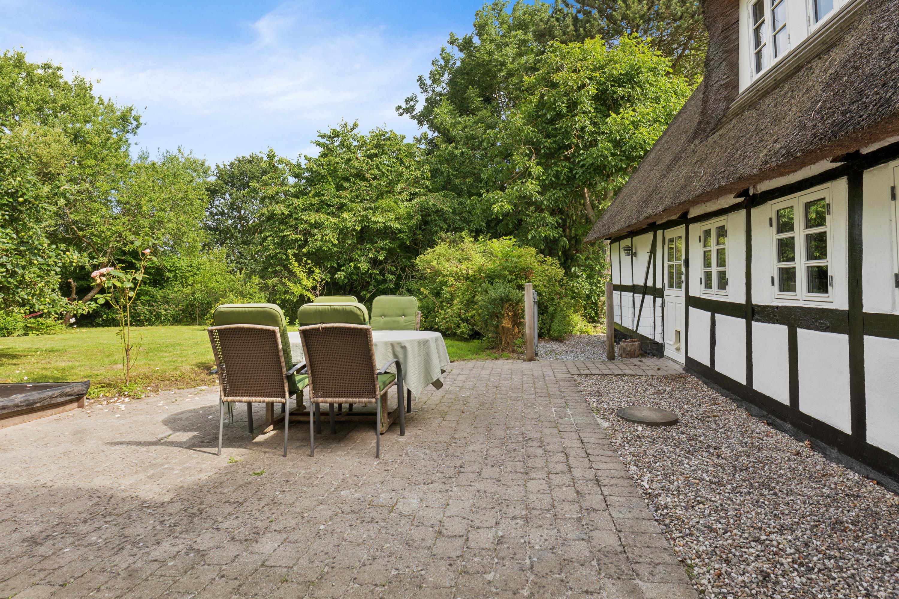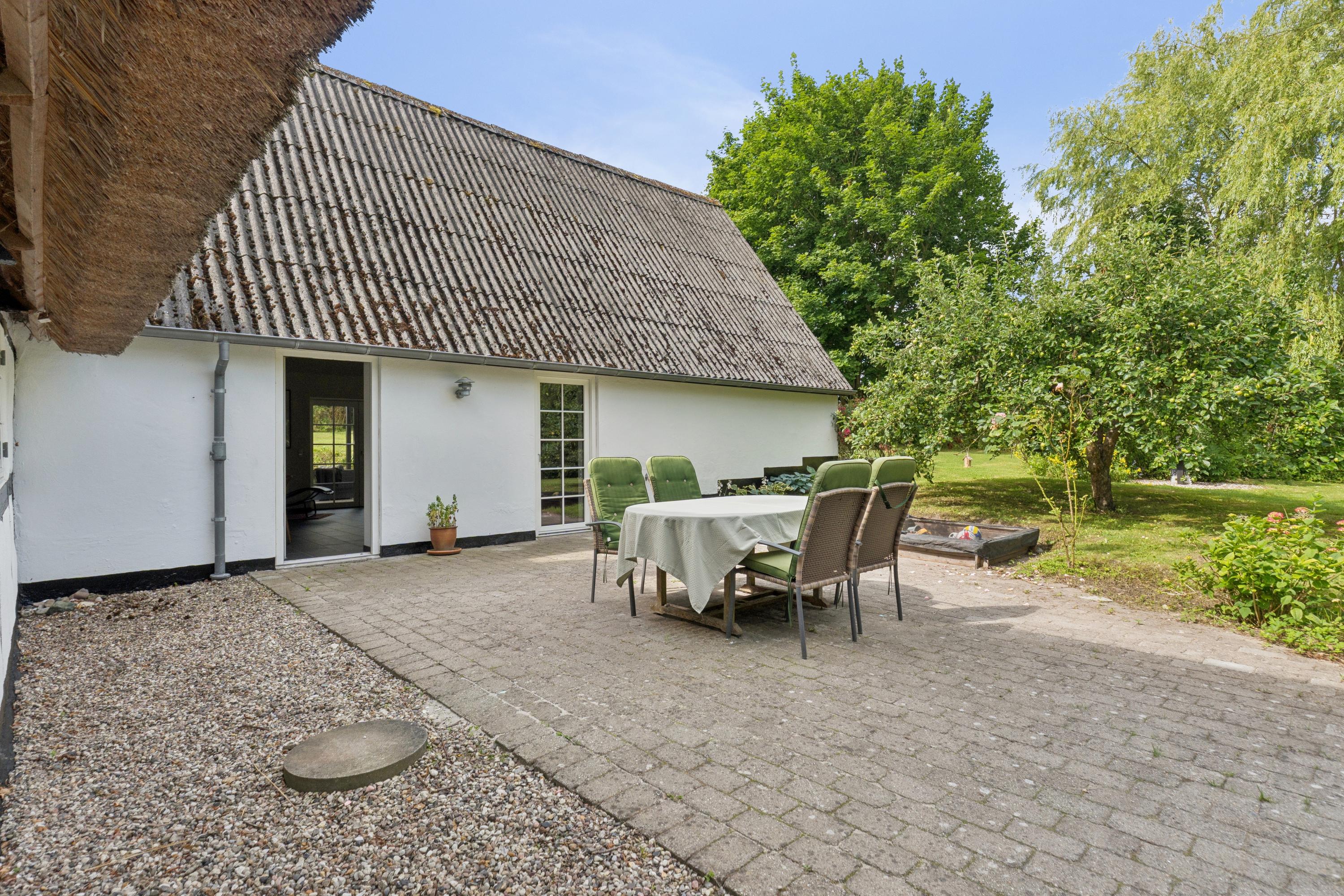 Her får I en charmerende og nænsomt renoveret bindingsværksejendom midt i det åbne landskab med frit udsyn til grønne marker, en levende mose, og skoven i horisonten. Beliggenheden på en fredelig, lukket vej skaber en særlig ro, hvor naturens lyde tager over.