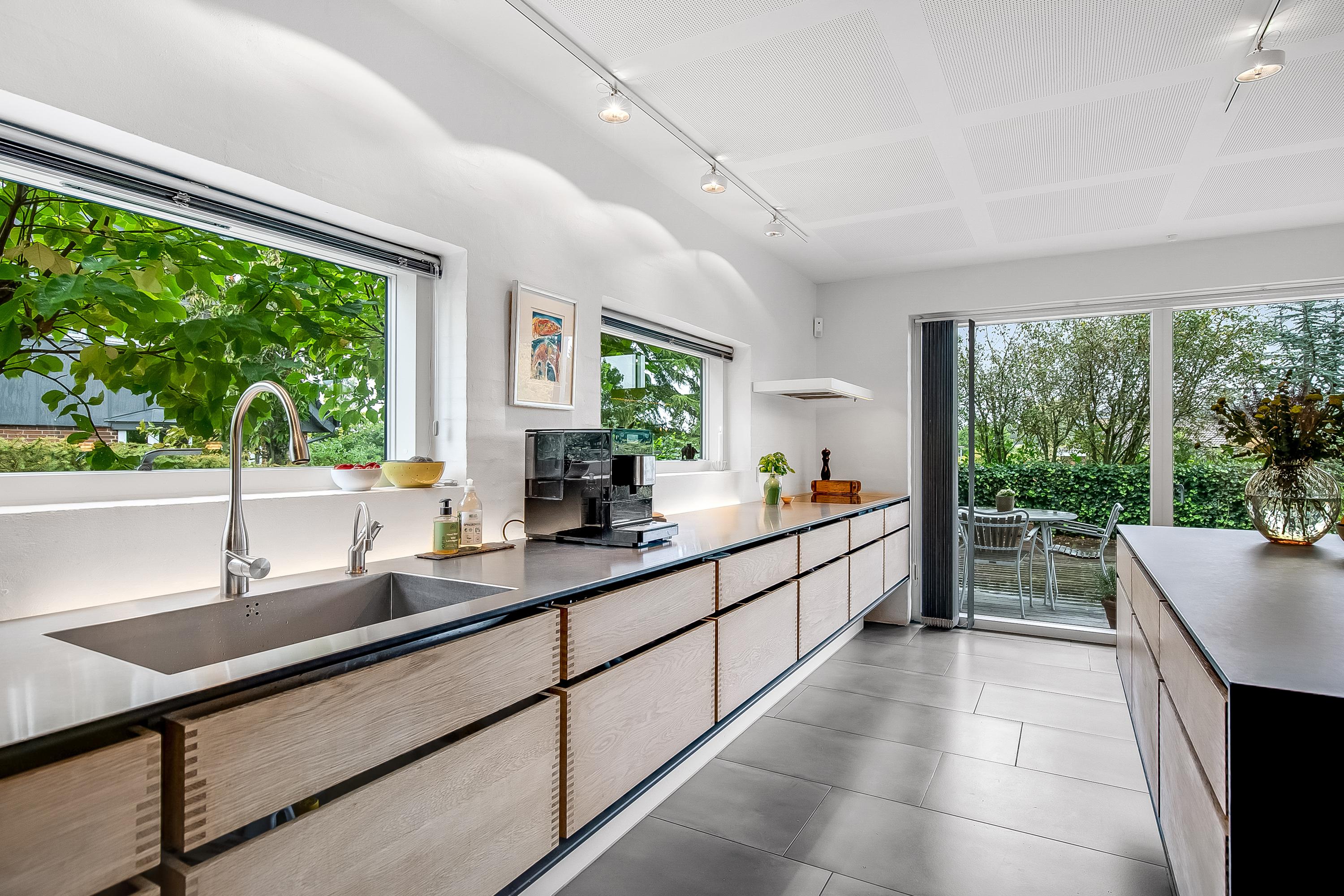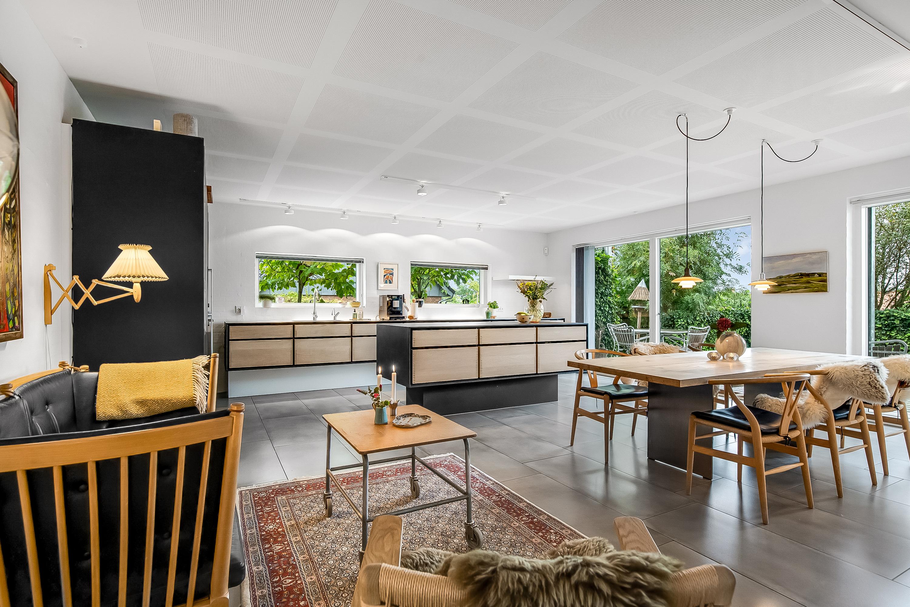 Velkommen til denne enestående villa, der kombinerer moderne luksus med klassisk elegance. Med et boligareal på hele 225 kvadratmeter, bygget i 1987 og totalrenoveret i 2013, fremstår ejendommen som ny og yderst indbydende. Når du træder ind i hallen, bliver du mødt af et fantastisk køkken/alrum.