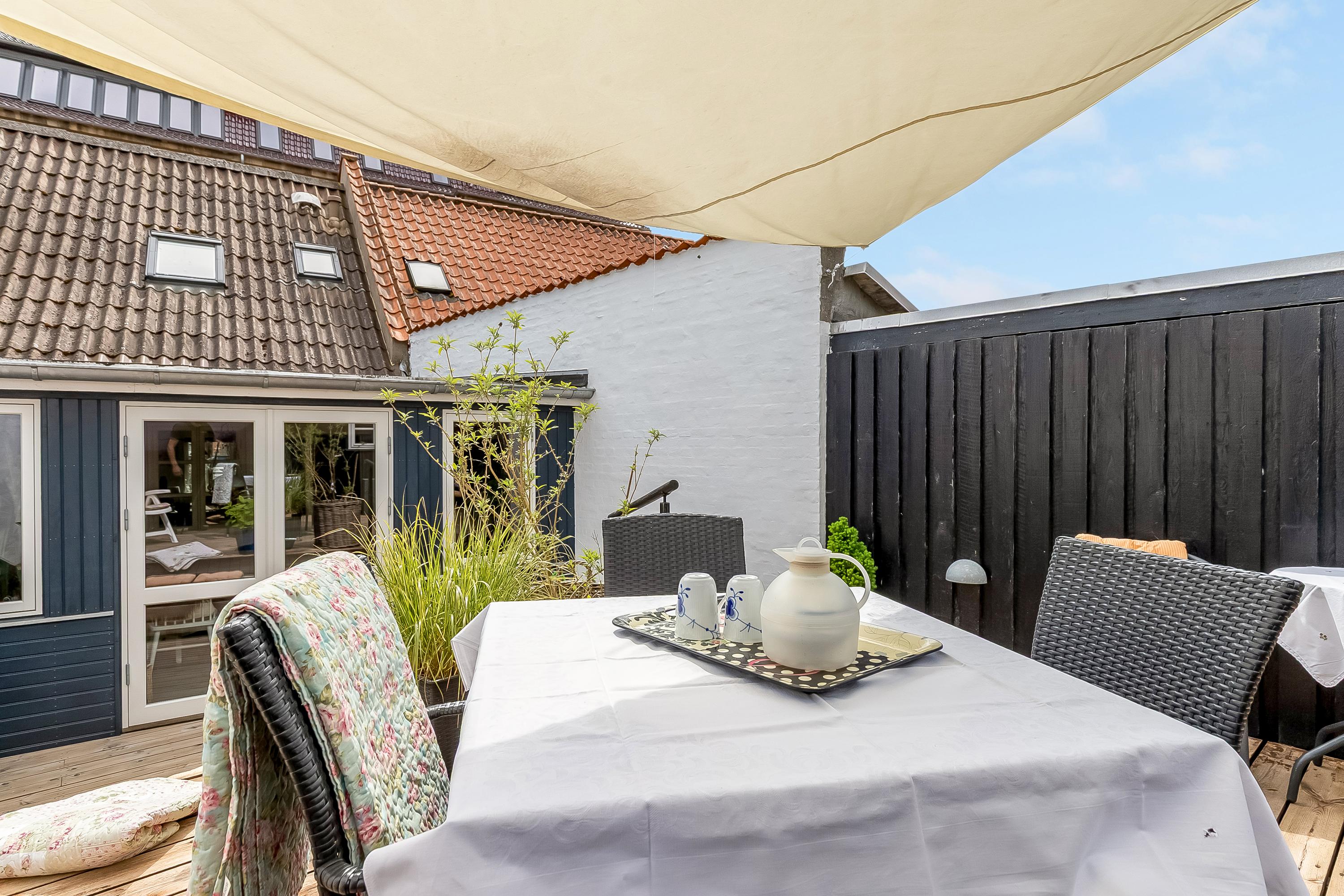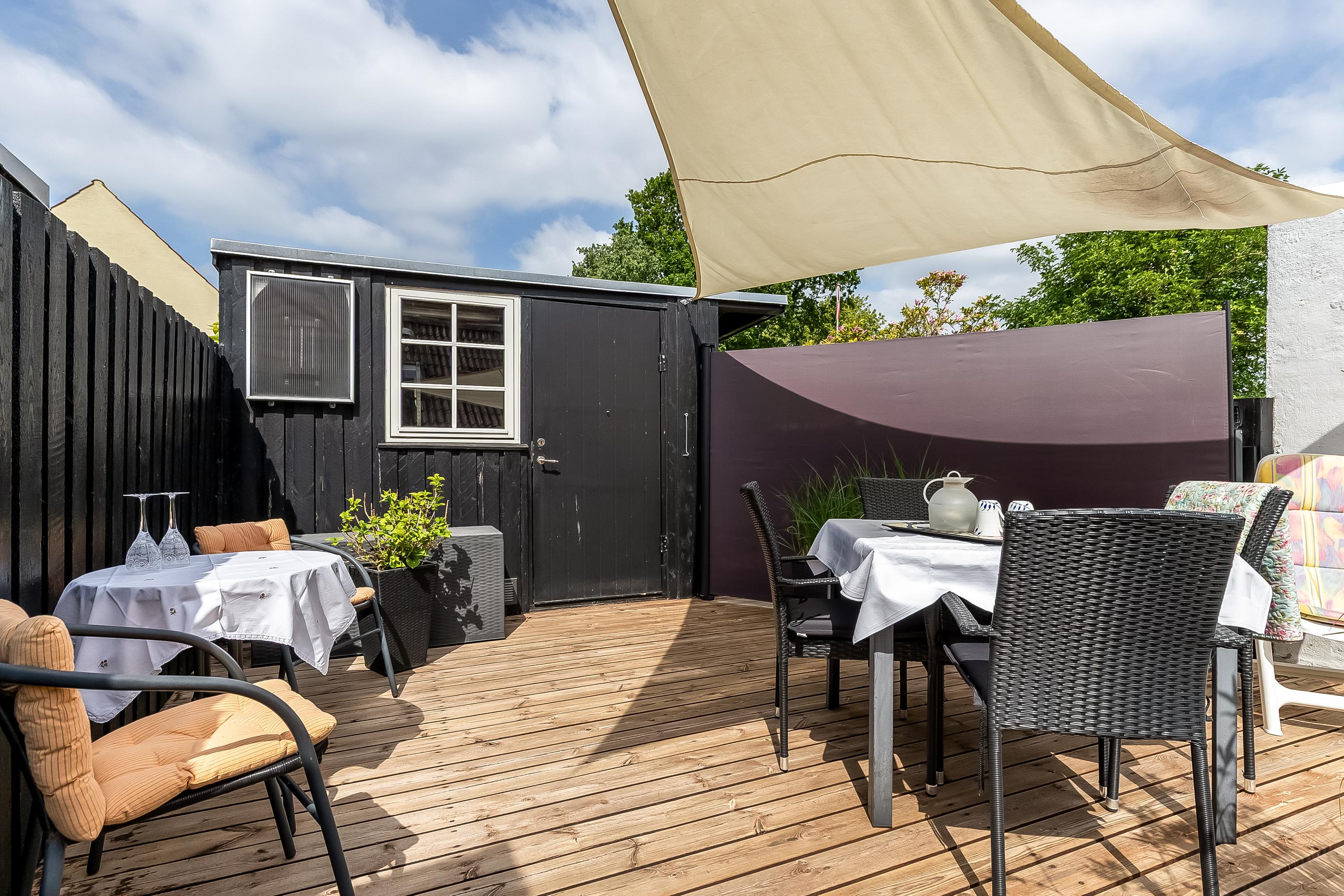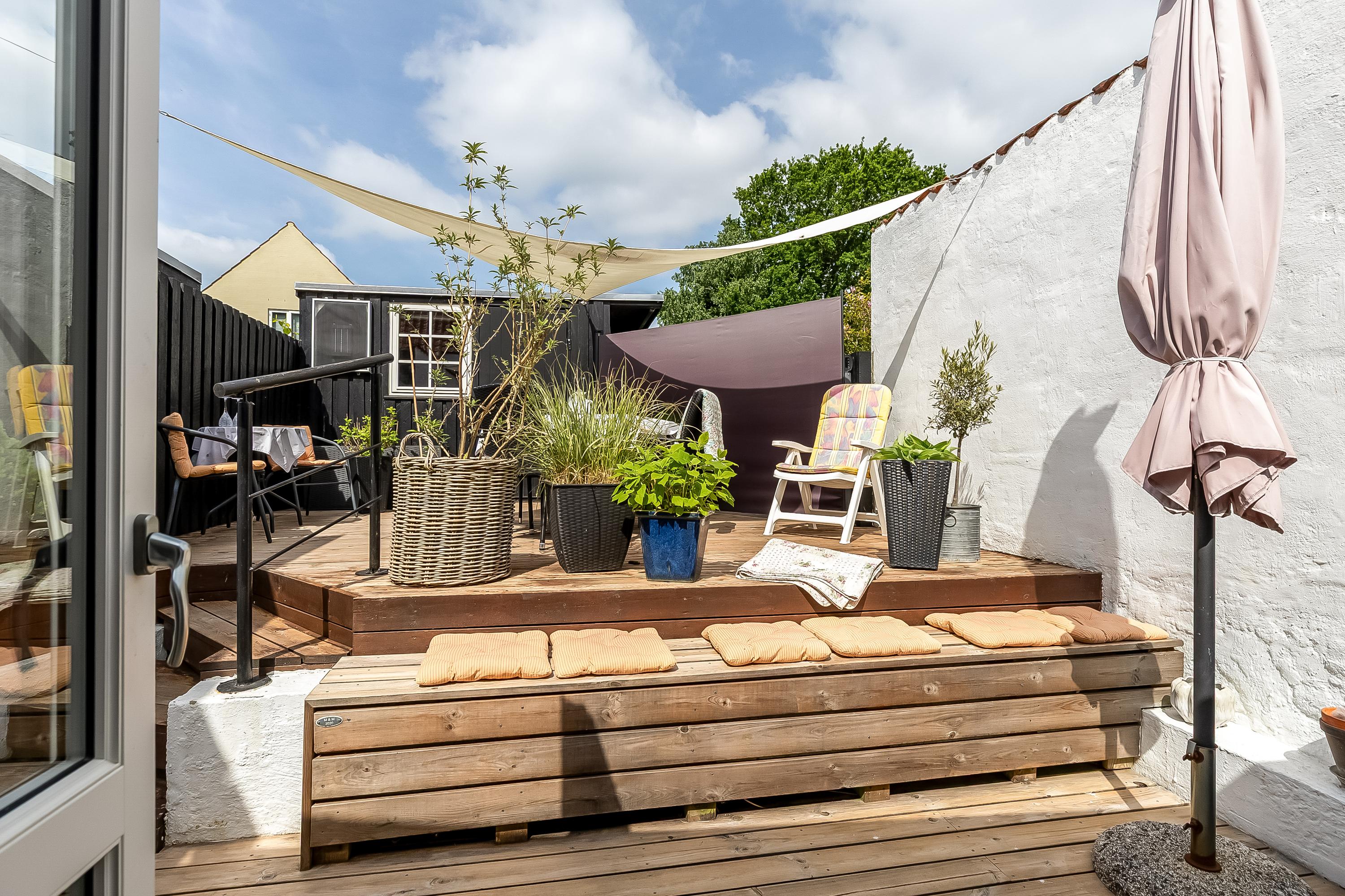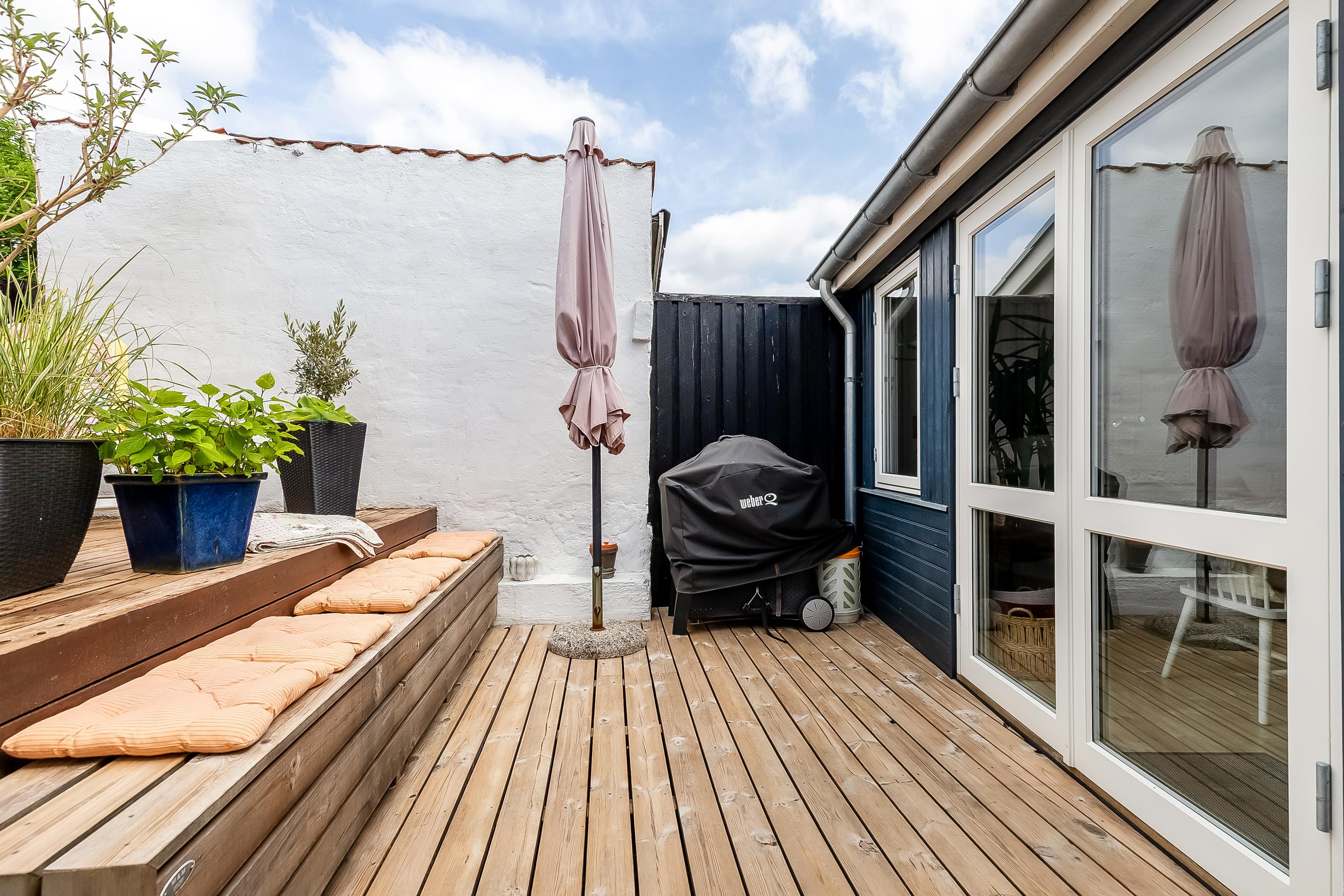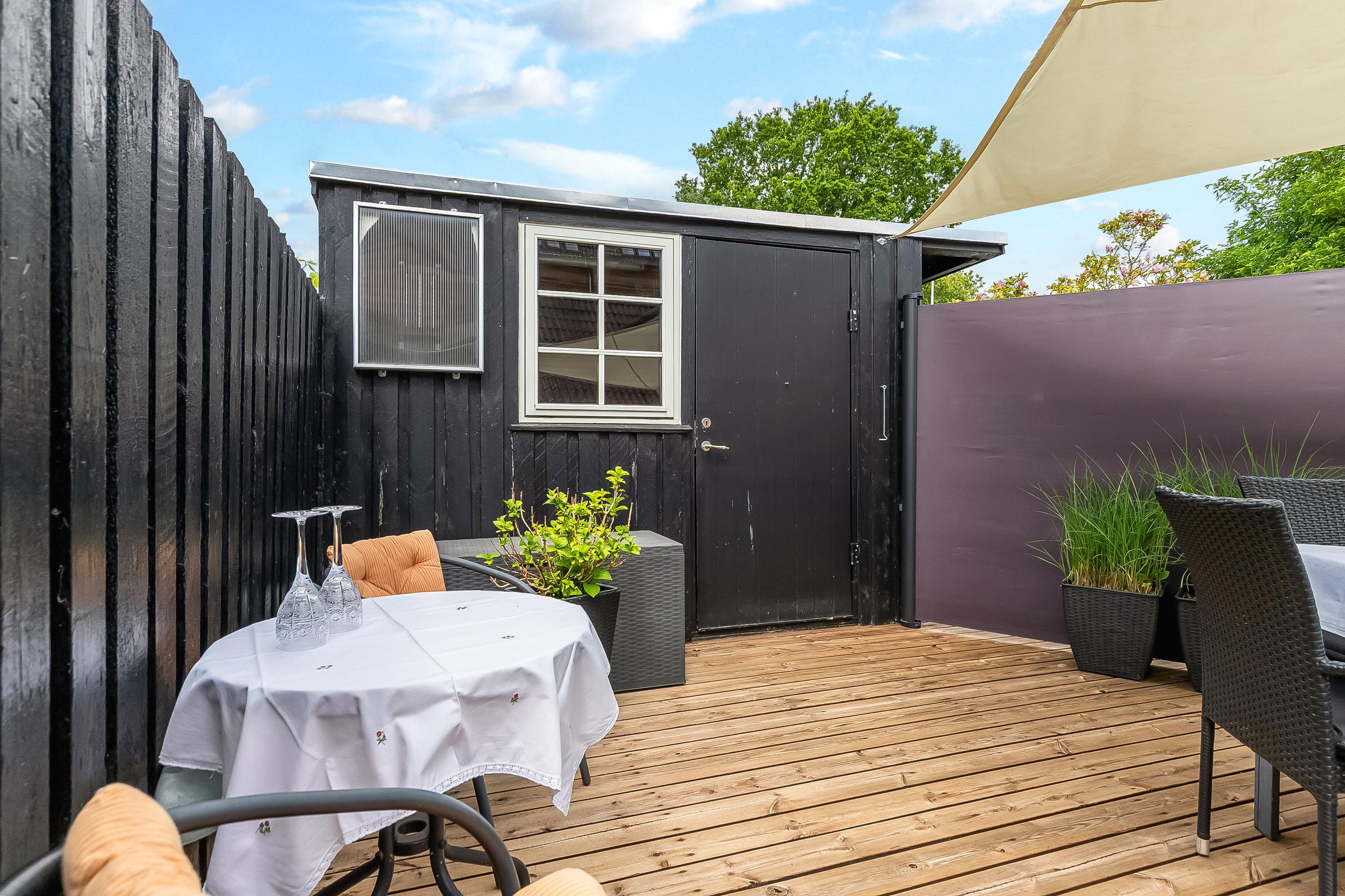 Udover en absolut fin boligdel, får man også en skøn oase i kombinationen mellem den integrerede udestue & det udvendige træterrassemiljø.