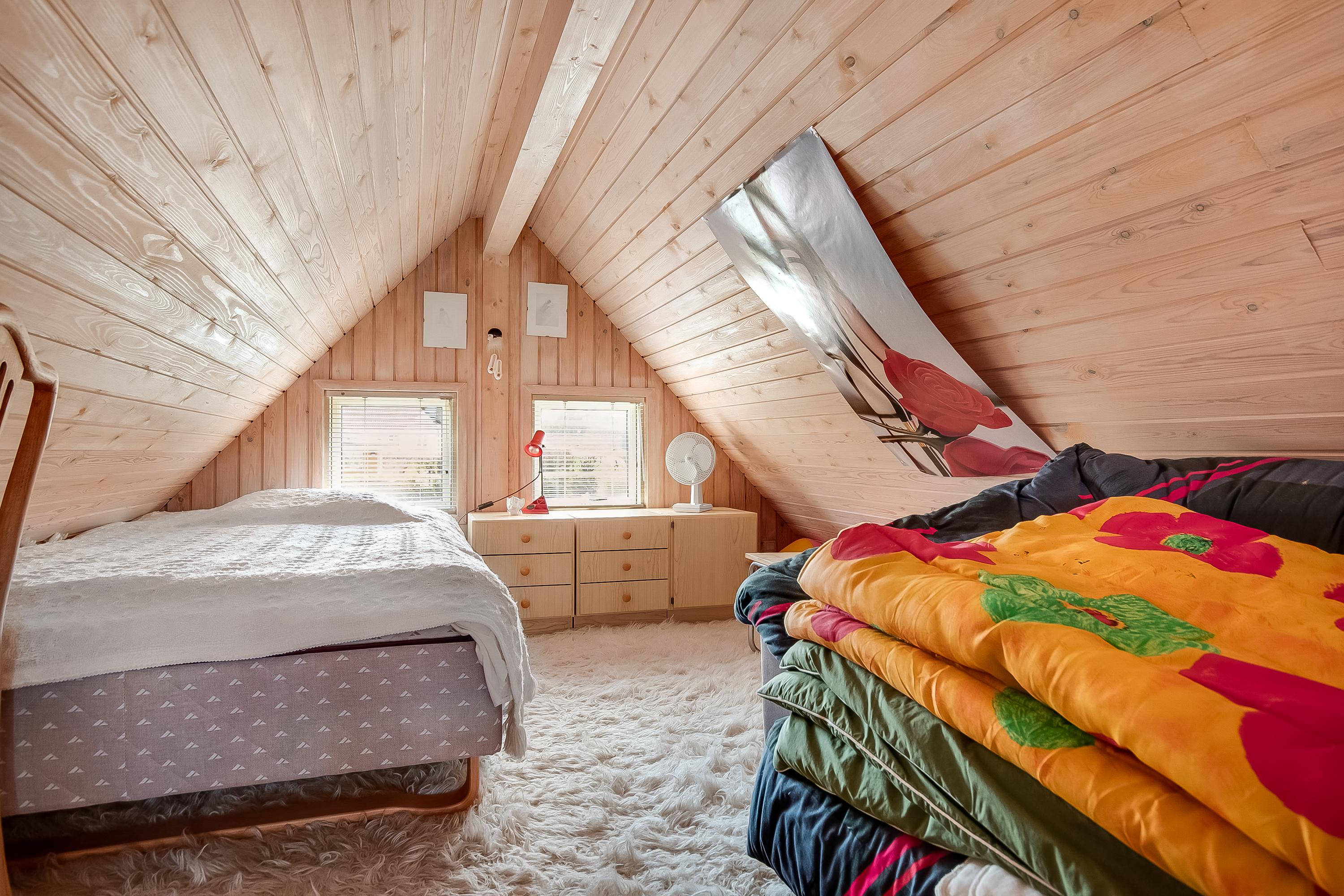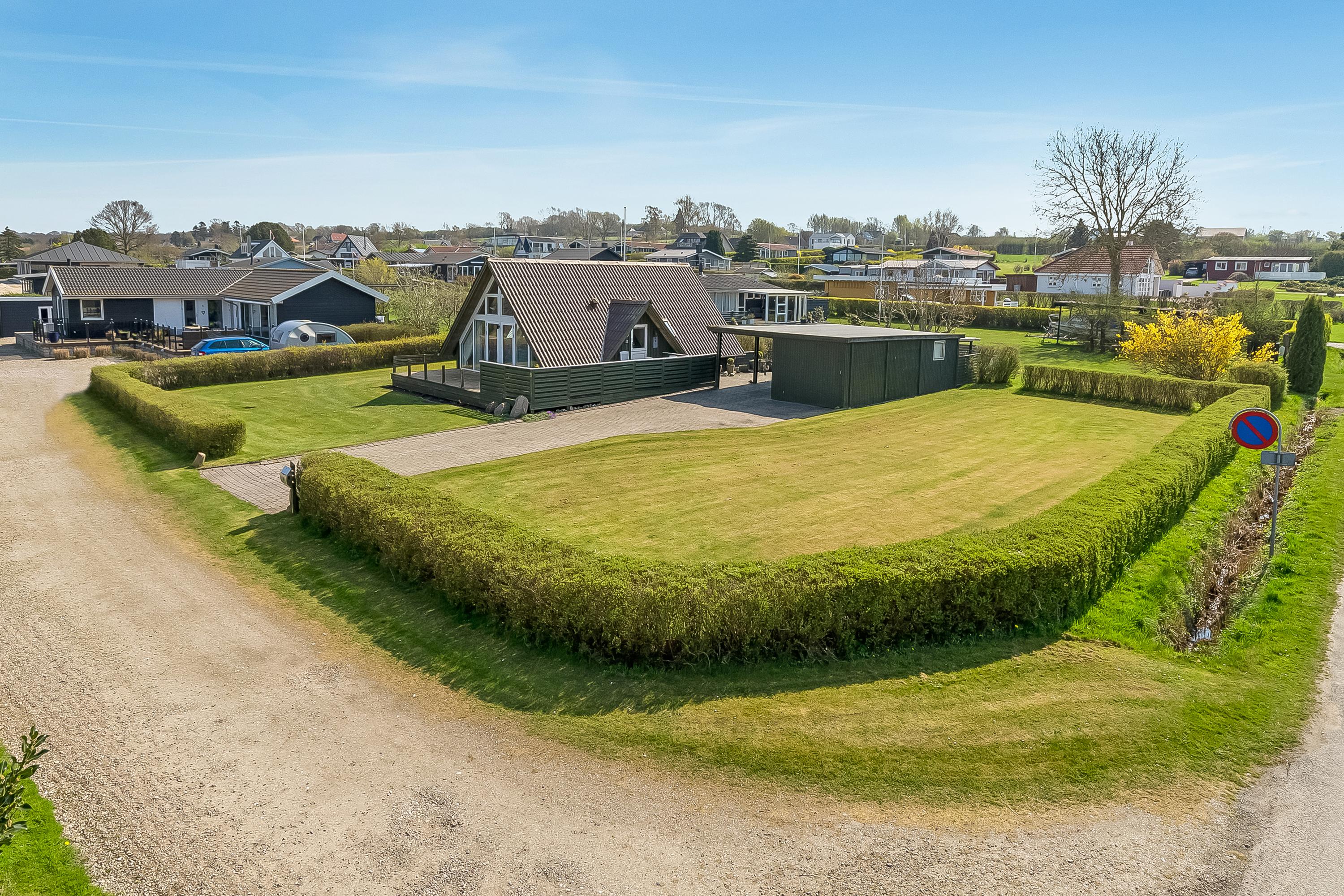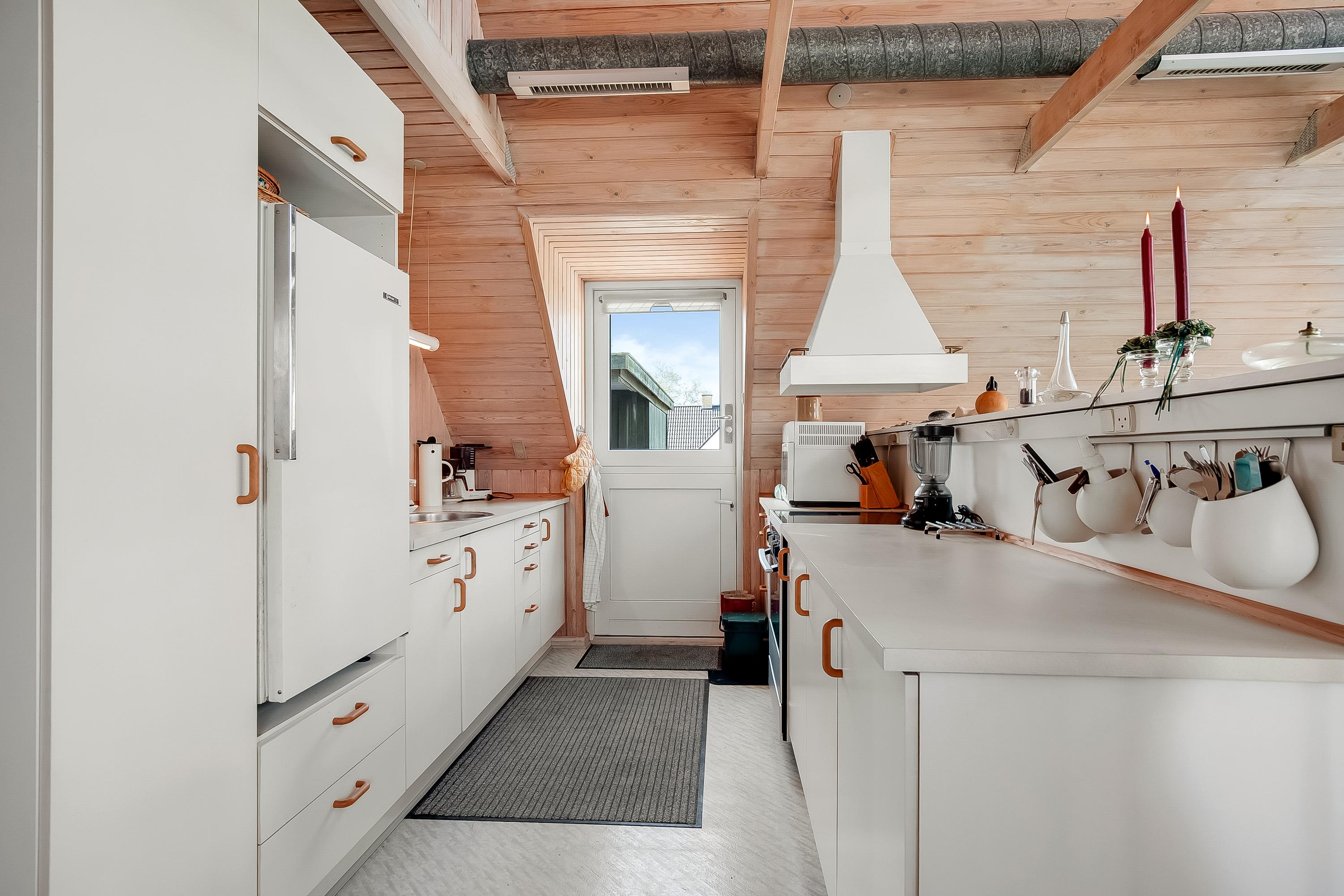 Fritidshuset er bygget i 1986 med 65 kvadratmeter fordelt på 4 værelser + hems.