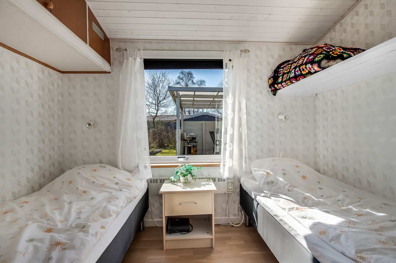 Sommerhusets indretning: Adgang via fint, lille bryggers. 2 gode værelser.