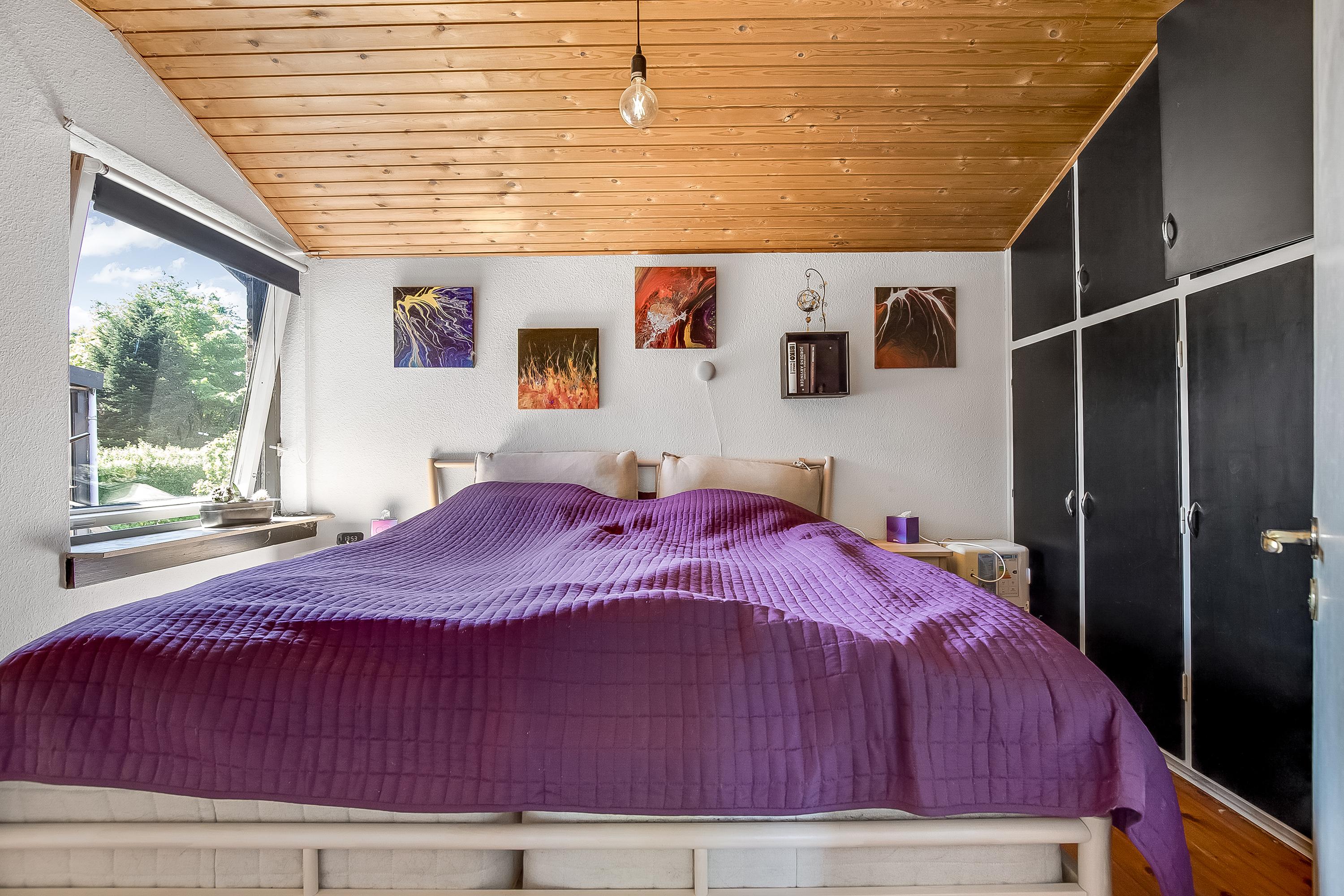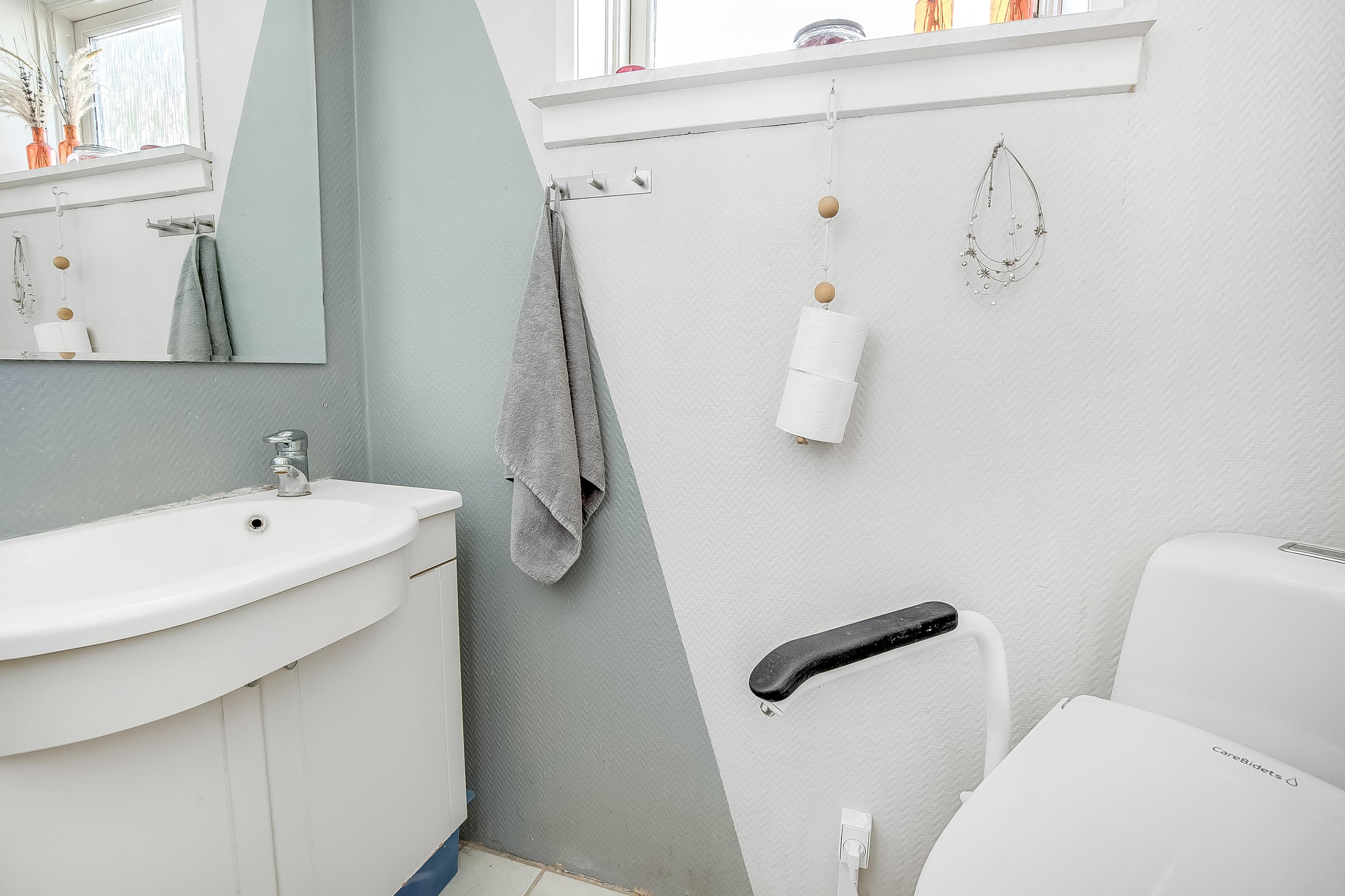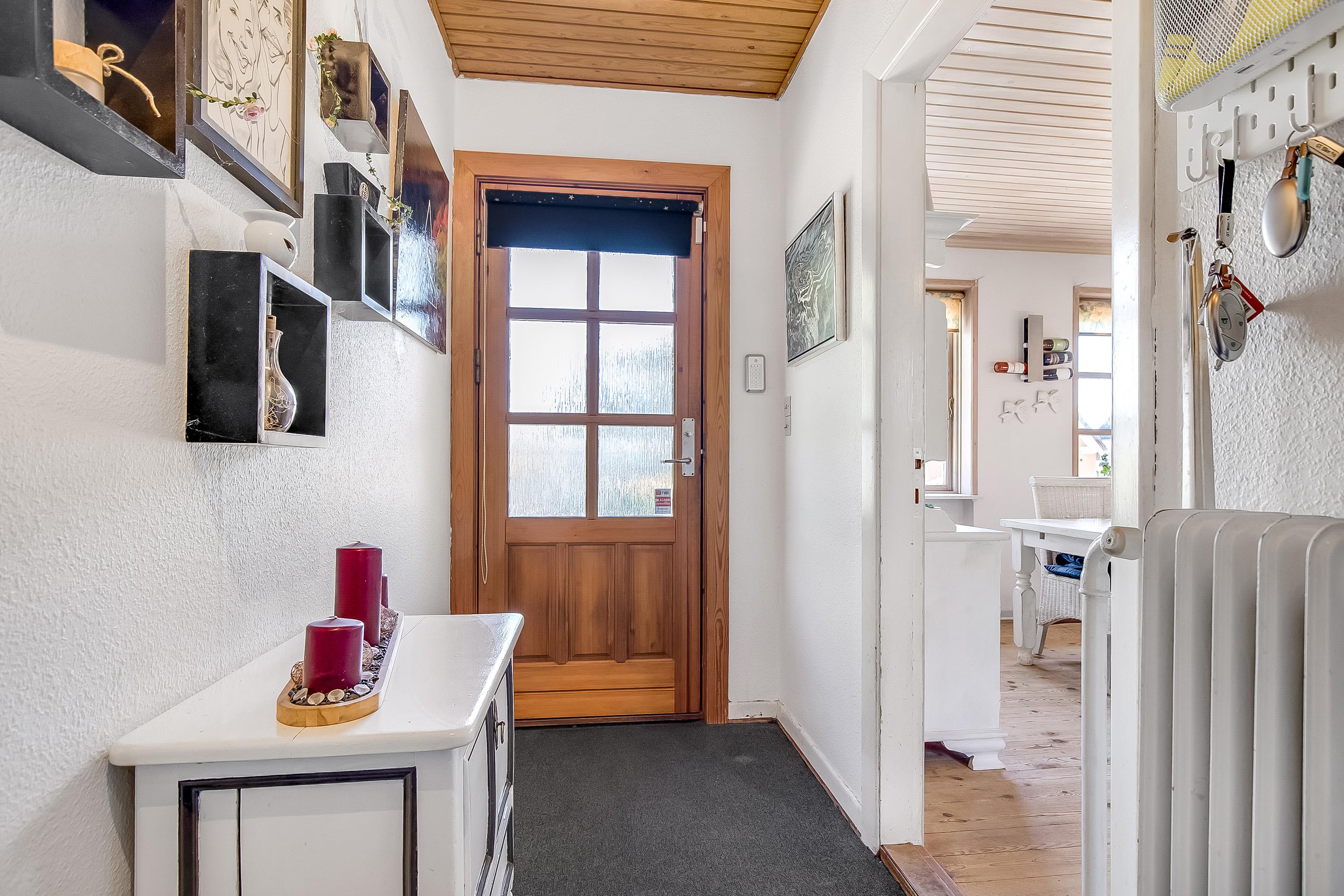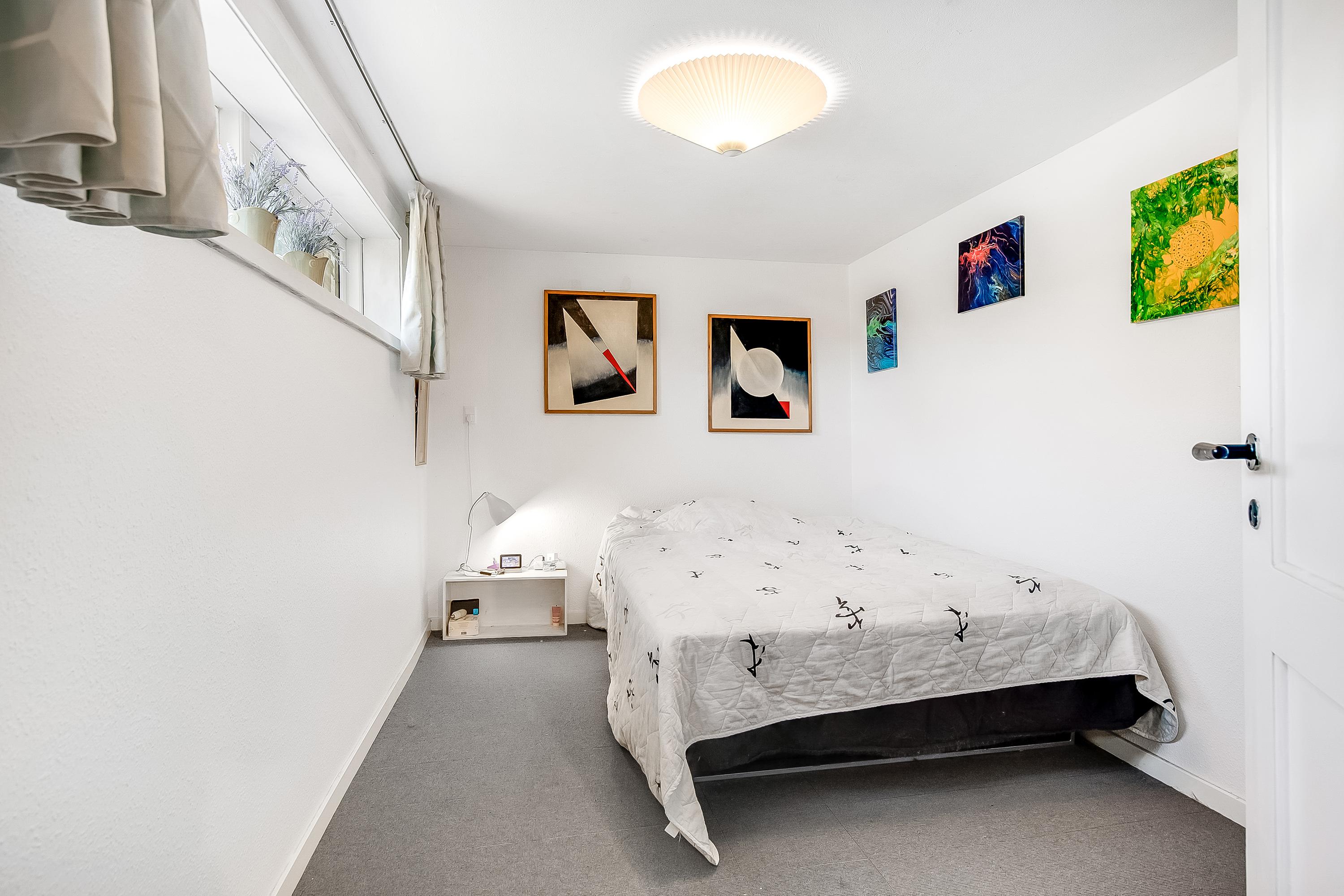 Adgang til boligen via entré. Fordelingsgang med adgang til stort soveværelse med skabsvæg, mindre værelse/kontor samt