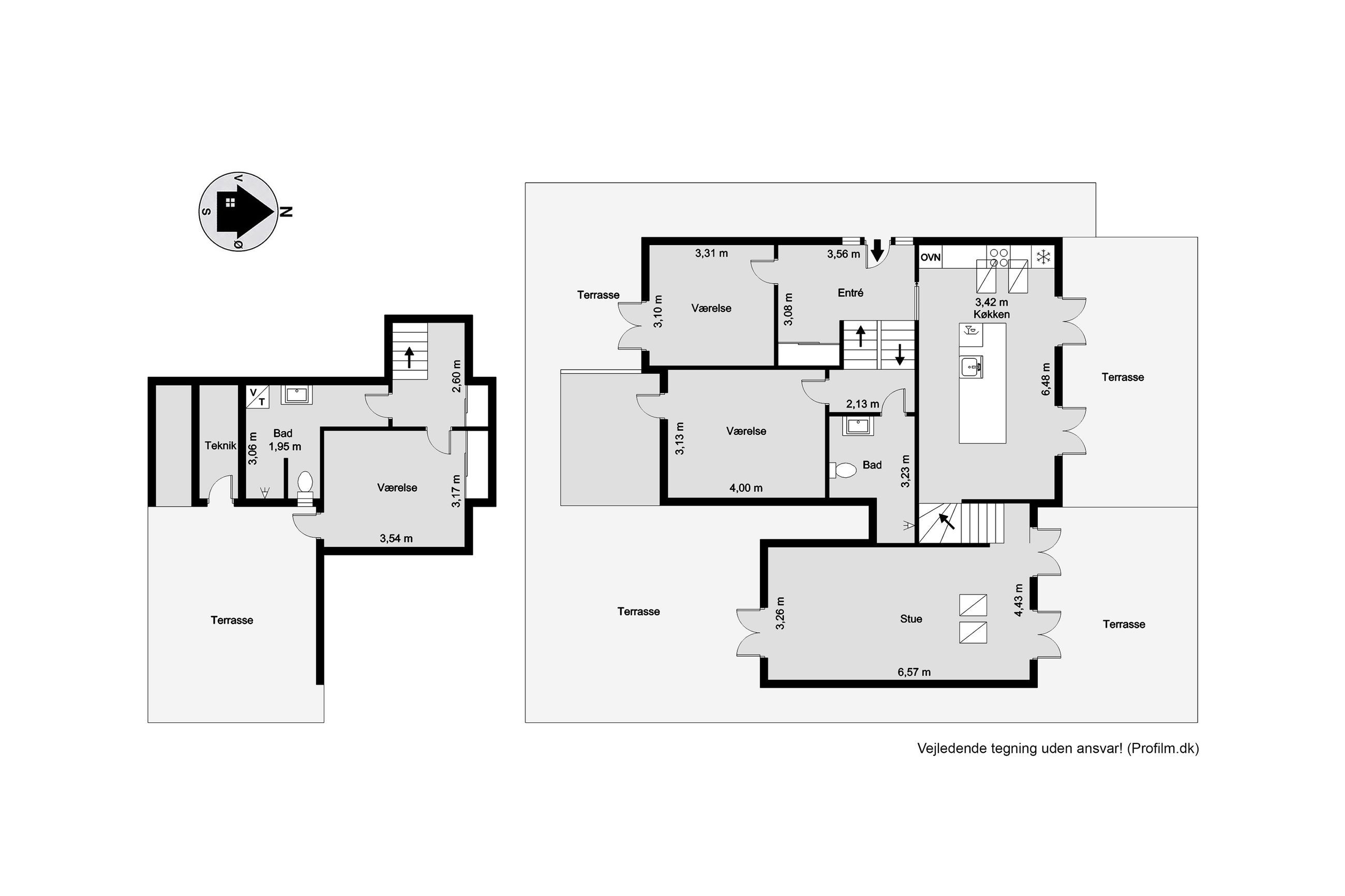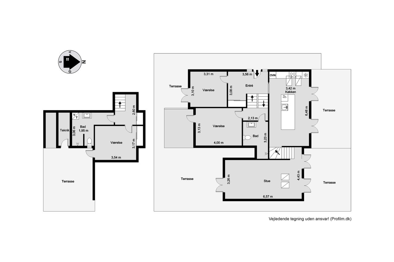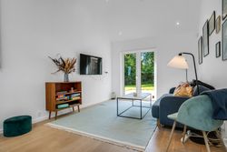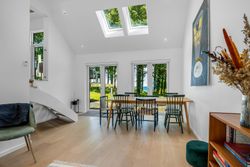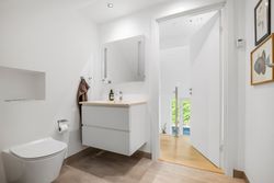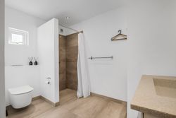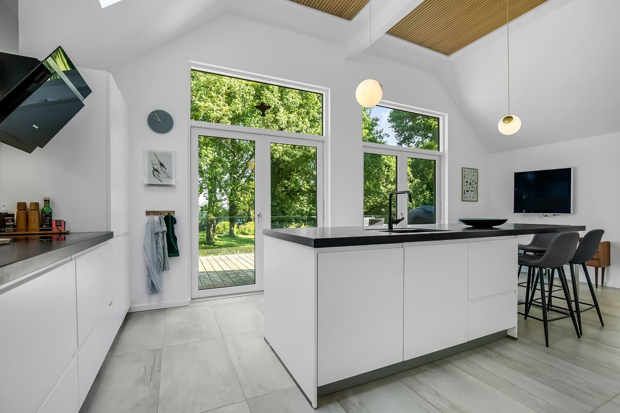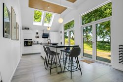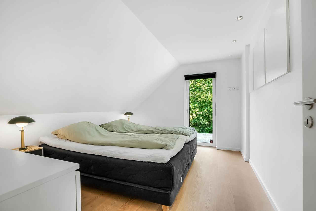 Boligen er i alt 137 m2 og rummer en entré, tre gode soveværelser med skabsplads samt to badeværelser – det ene med vaskefaciliteter. Det moderne køkken ligger i åben forbindelse med spiseområdet og den rummelige stue, der byder på loft til kip, store vinduespartier og udgang til terrassen – alt sammen med en imponerende udsigt over vandet.