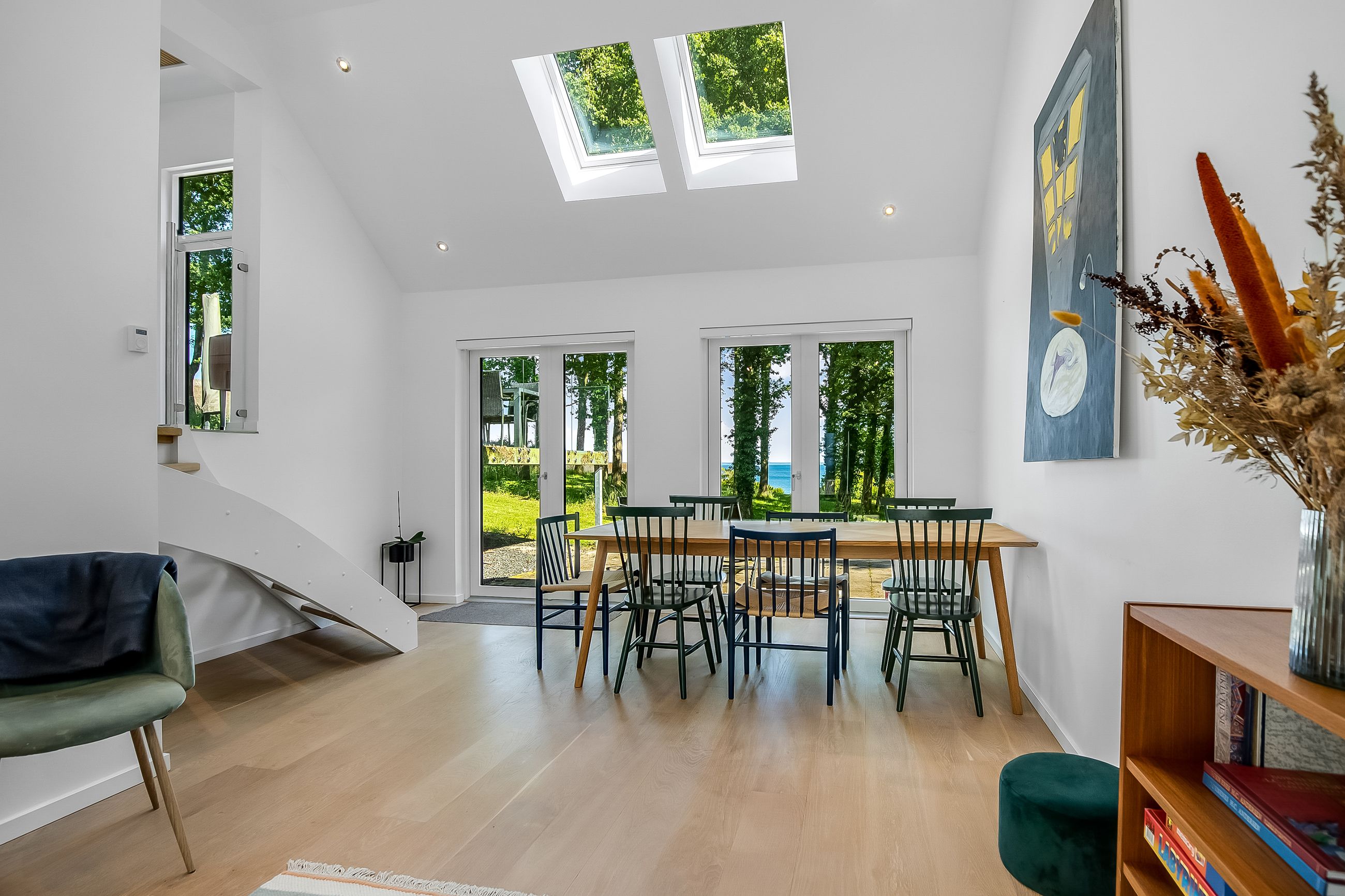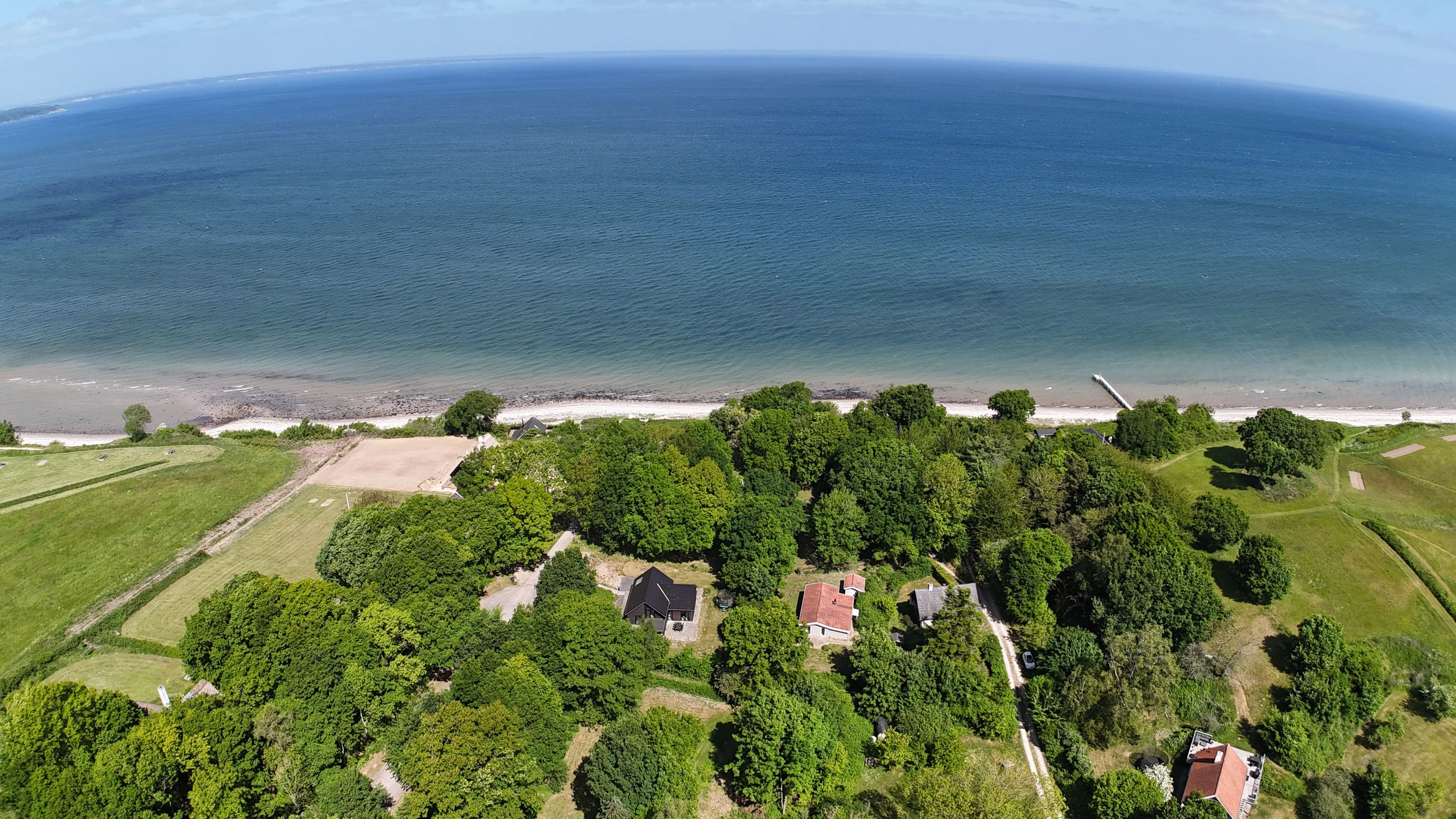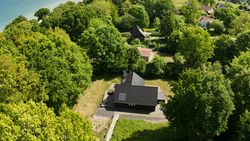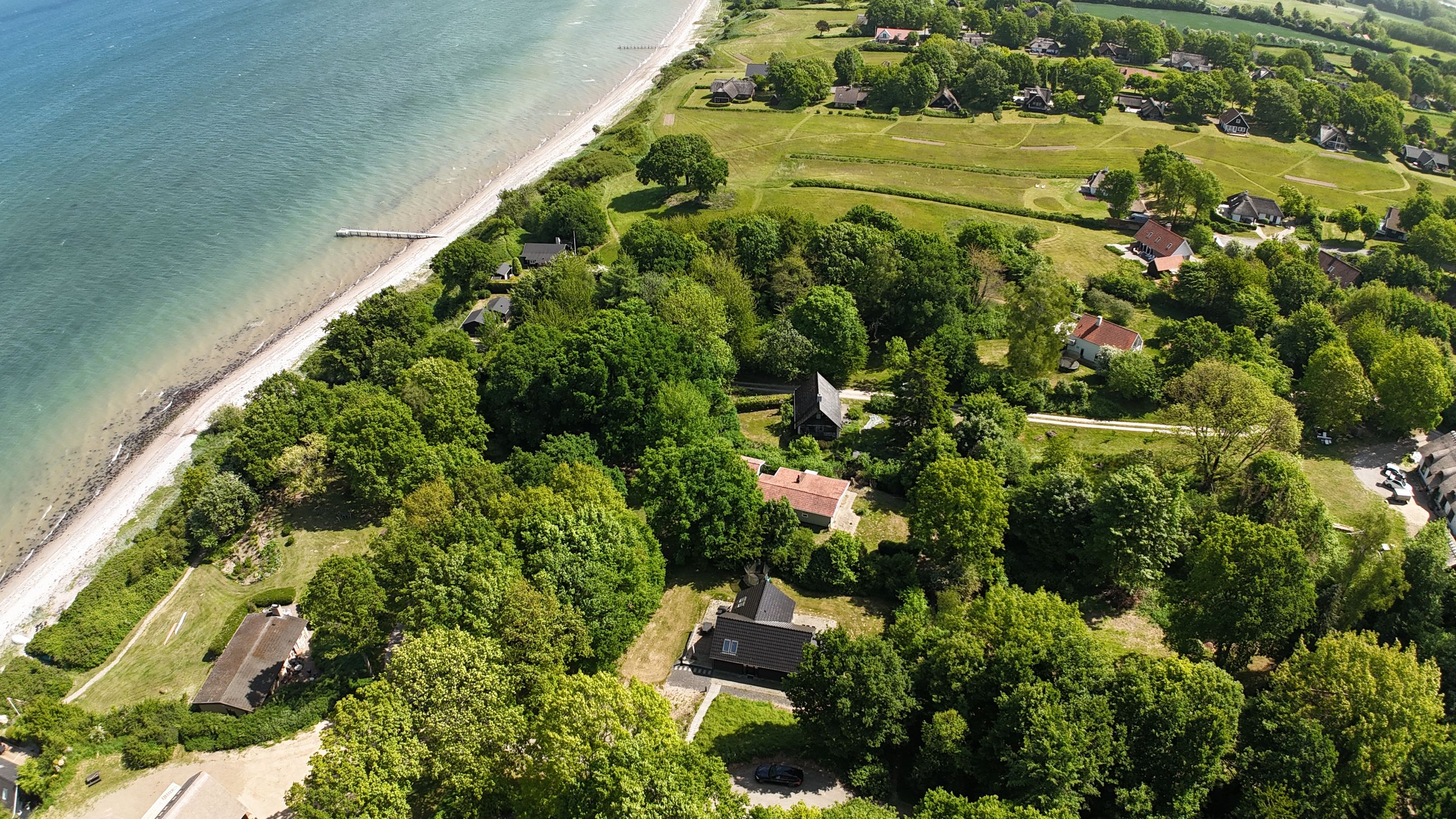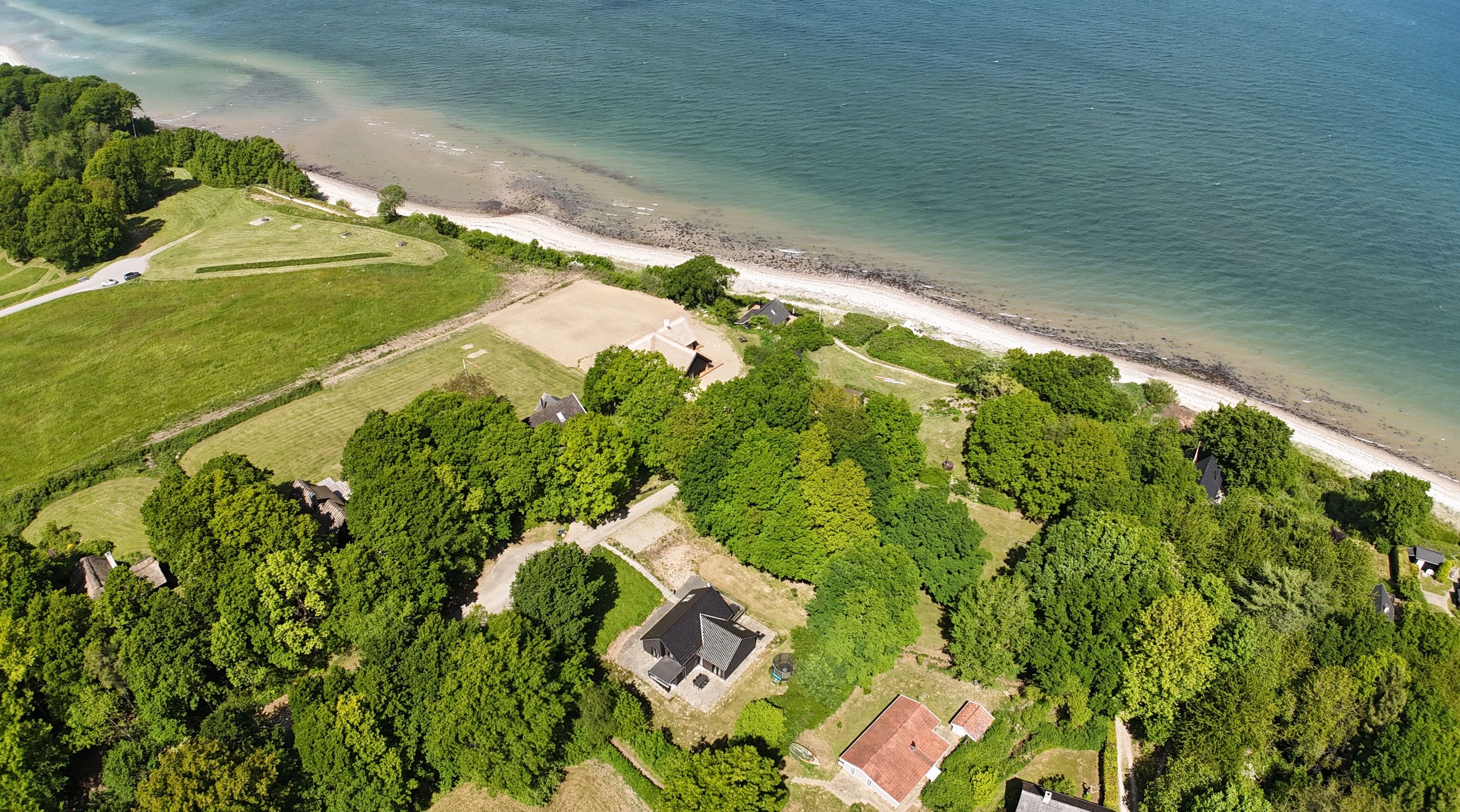 Ejendommen ligger fredeligt placeret på en lukket vej, omgivet af grøn natur, vandudsigt og med kort afstand til Båring Vig. Her kan du nyde gåture langs kysten, bade i havet eller bare slappe af i rolige omgivelser. Med under en times kørsel til Odense og kort afstand til motorvejen, er beliggenheden også ideel til pendling eller som luksuriøst fritidsophold.