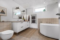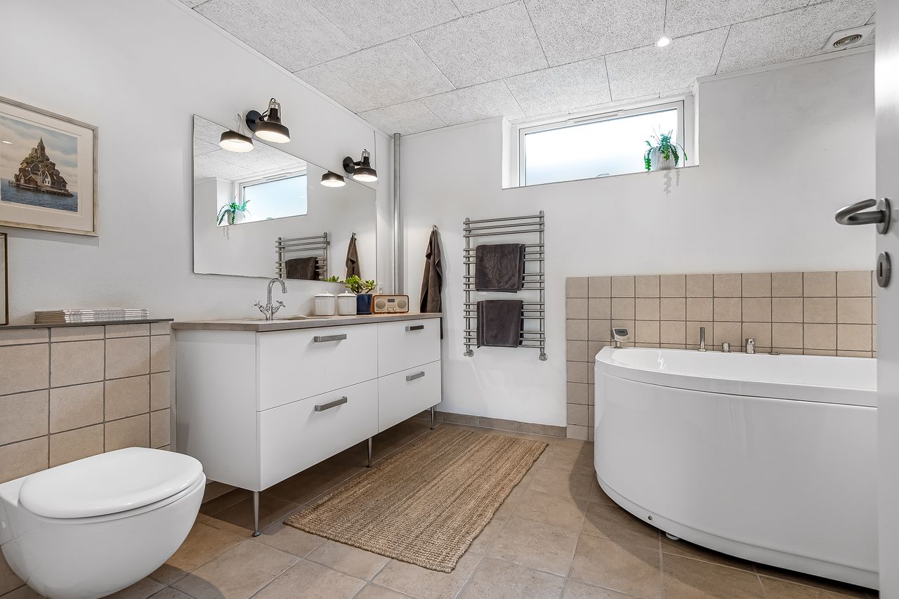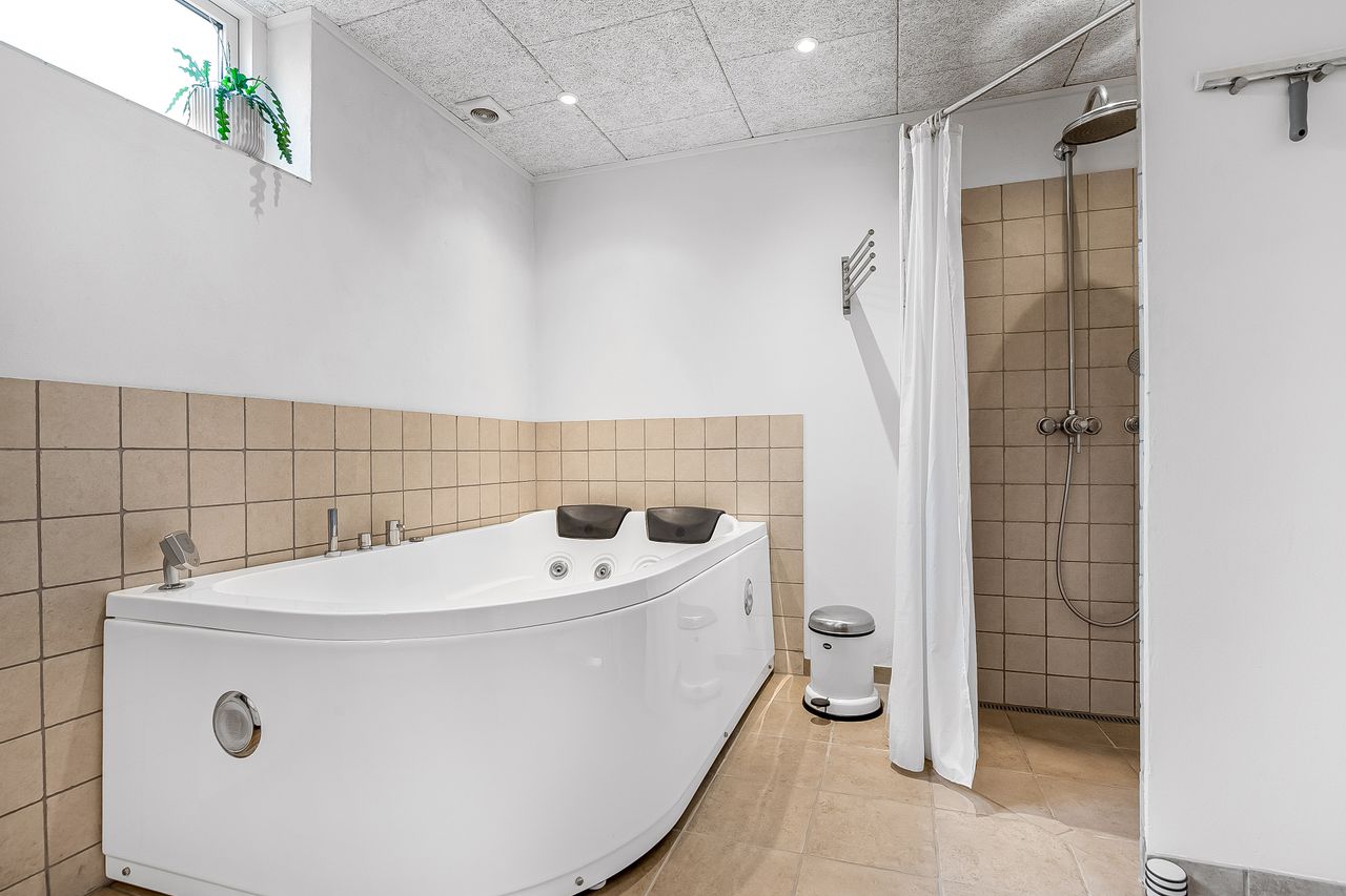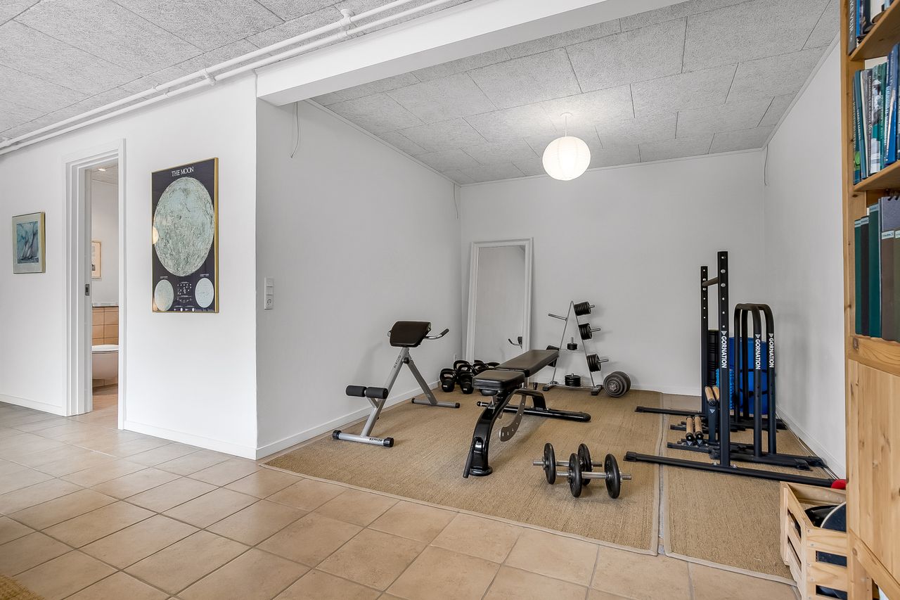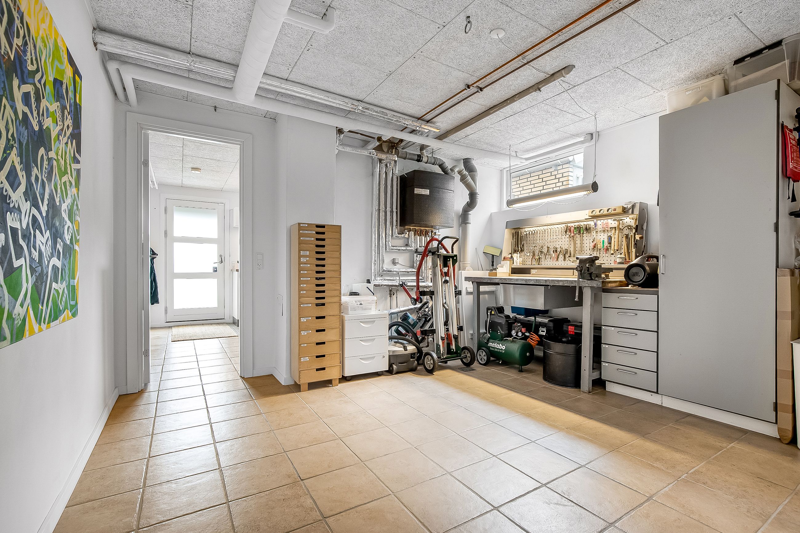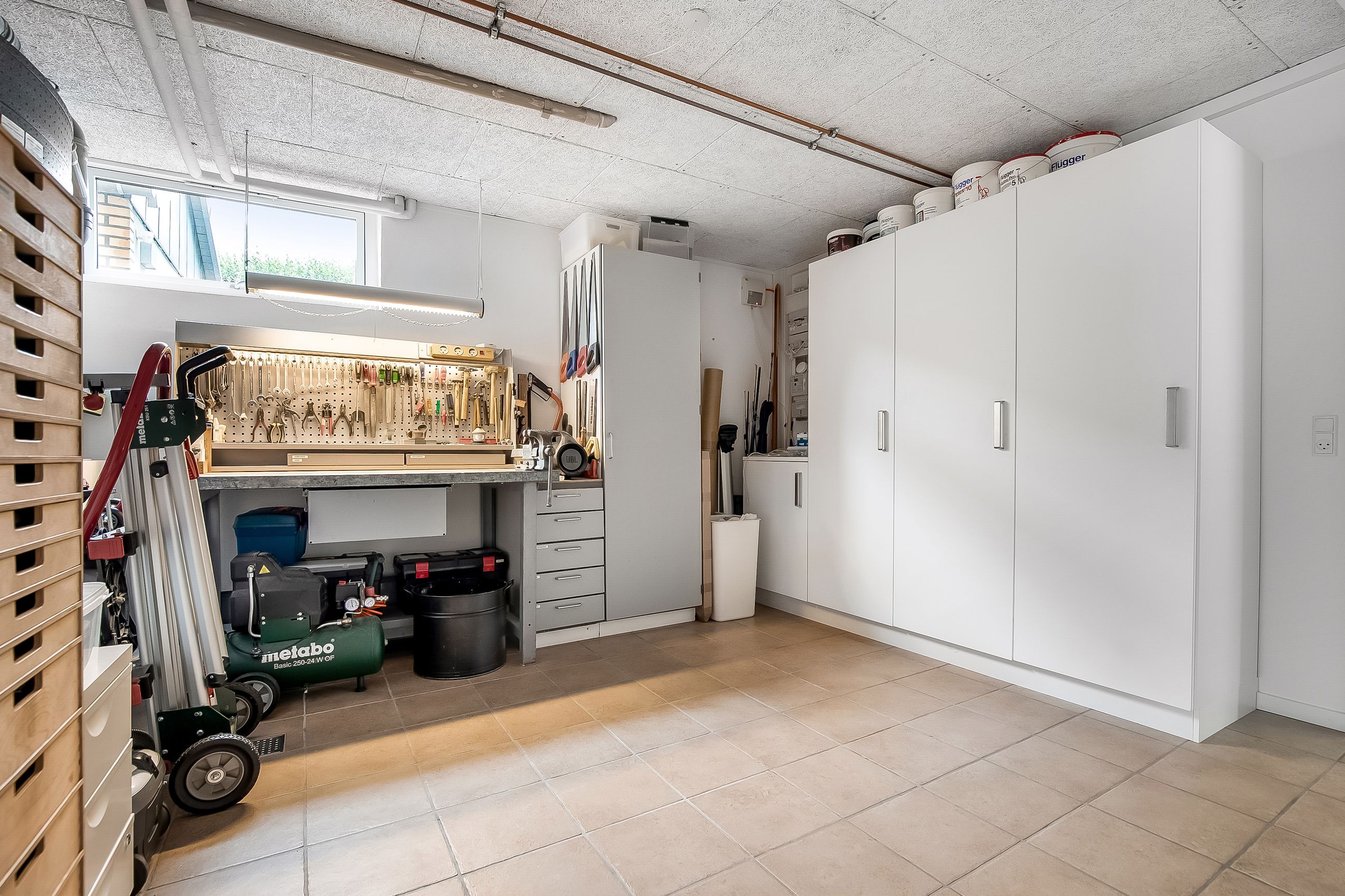 Underplanet rummer stort bryggers med direkte udgang. To store værelser på henholdsvis ca. 25m2 og ca. 38m2. Sidstnævnte med direkte udgang til terrasse og have. Hertil forefindes lækkert badeværelse med brus og spa samt et fint værksted med fjernvarmeinstallation. Gulvvarme i hele underplanet. Underplanet giver oplagte muligheder for anvendelse til voksen- eller børneafdeling, motionsrum, liberalt erhverv eller bare en yderst anvendelig gæsteafdeling.