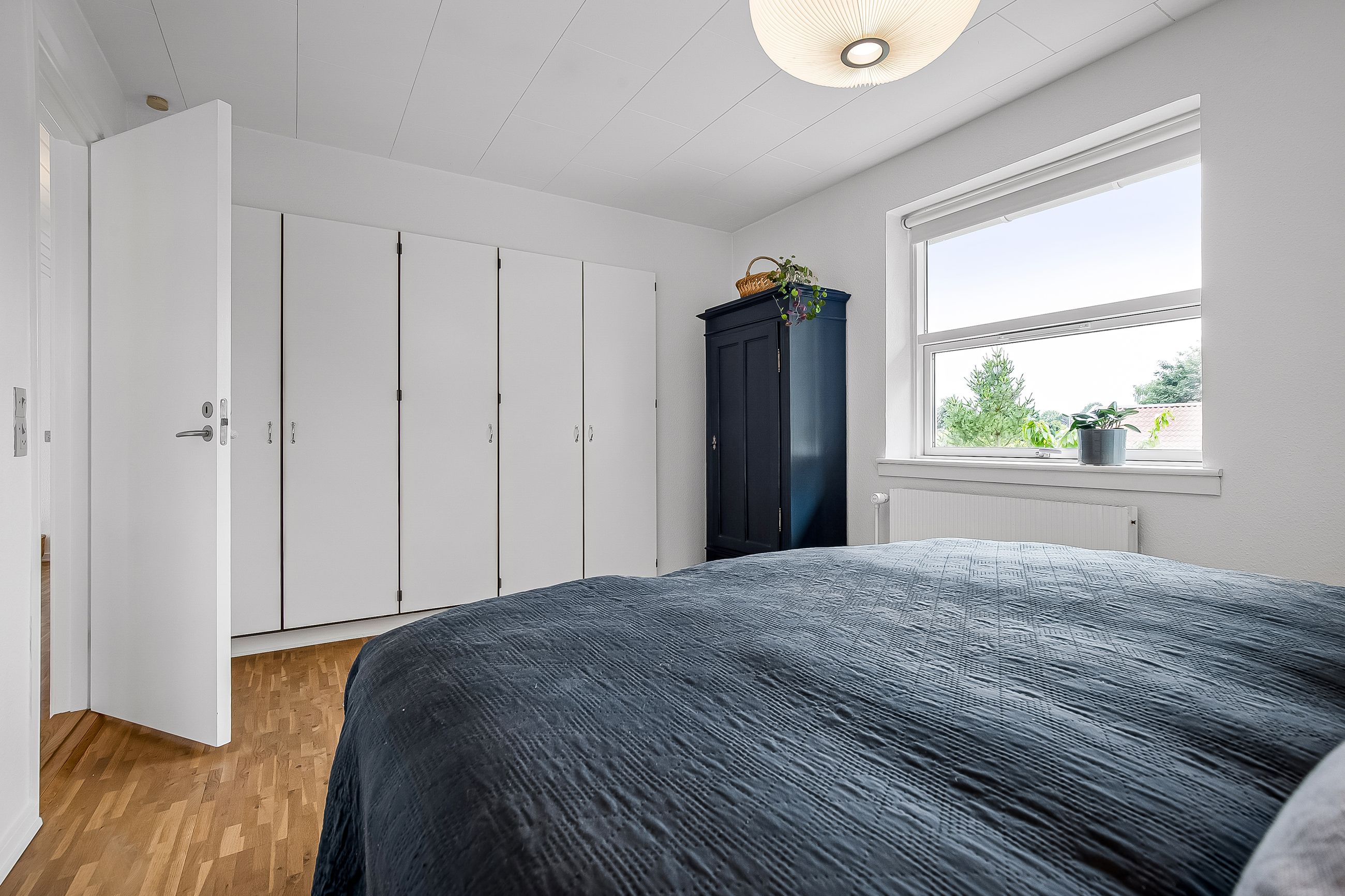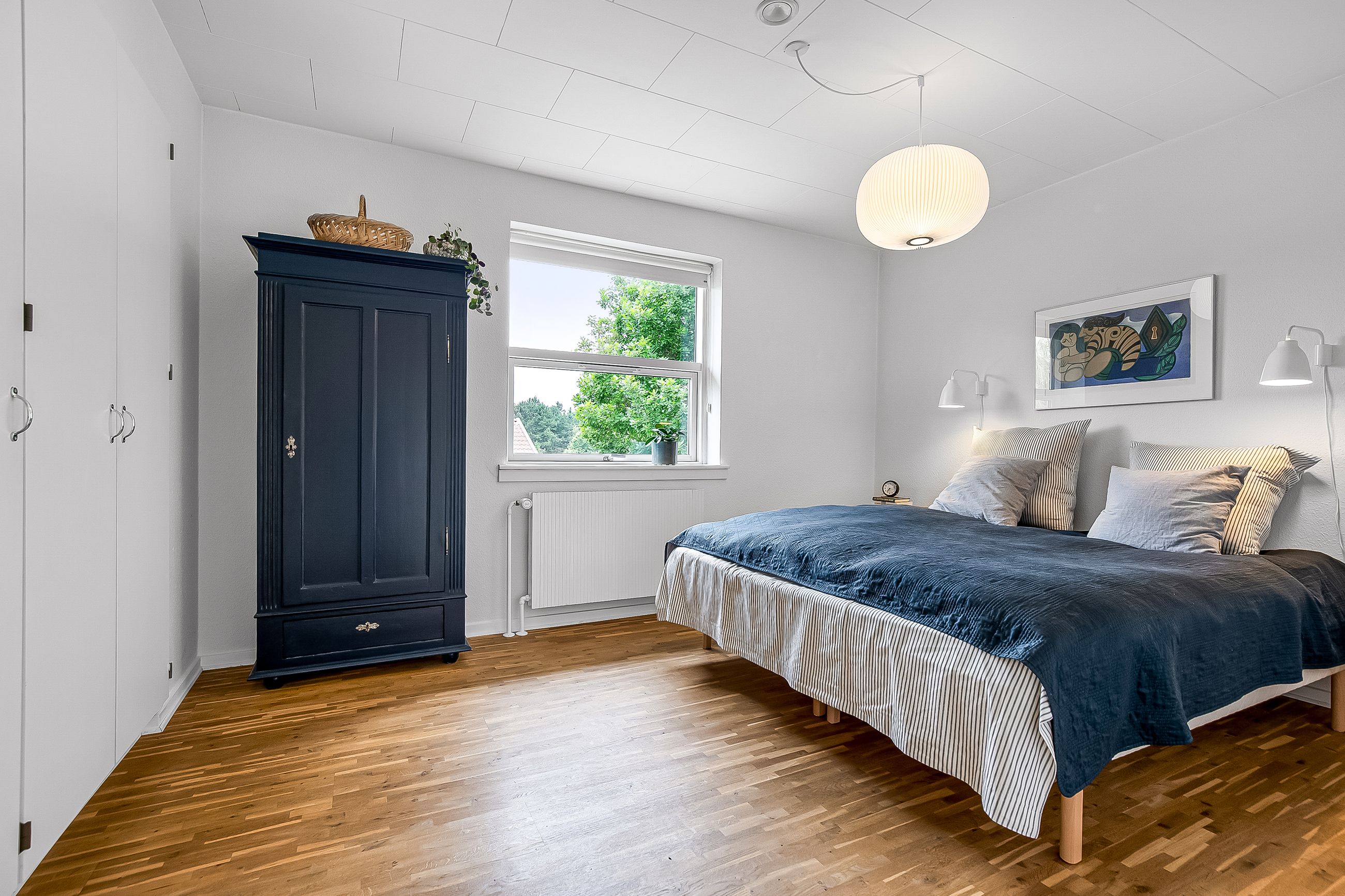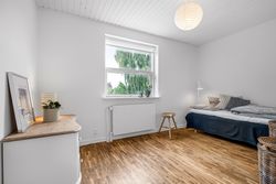 Soveværelse med fast skab samt yderligere to, fine værelser. Ældre, men fuldt funktionsdygtigt badeværelse med kar.