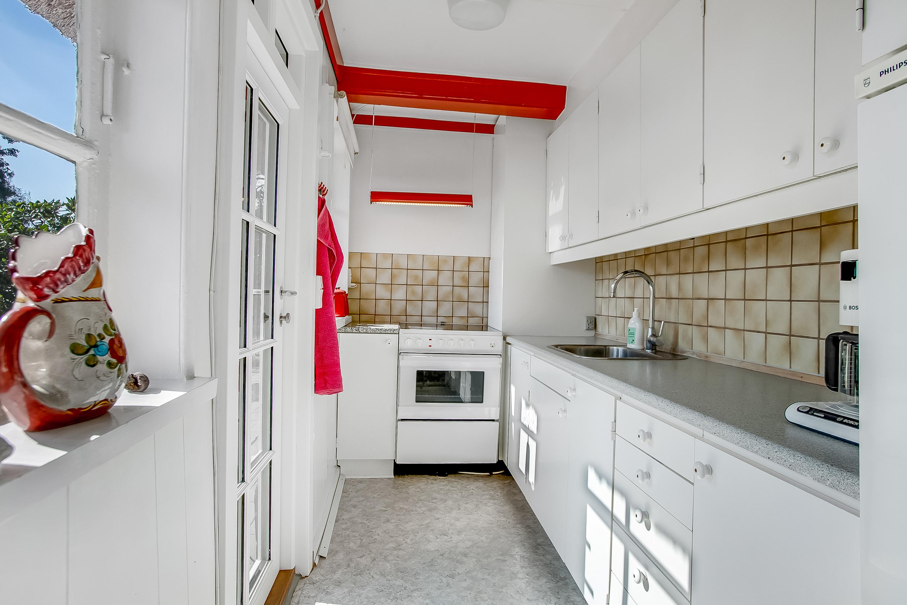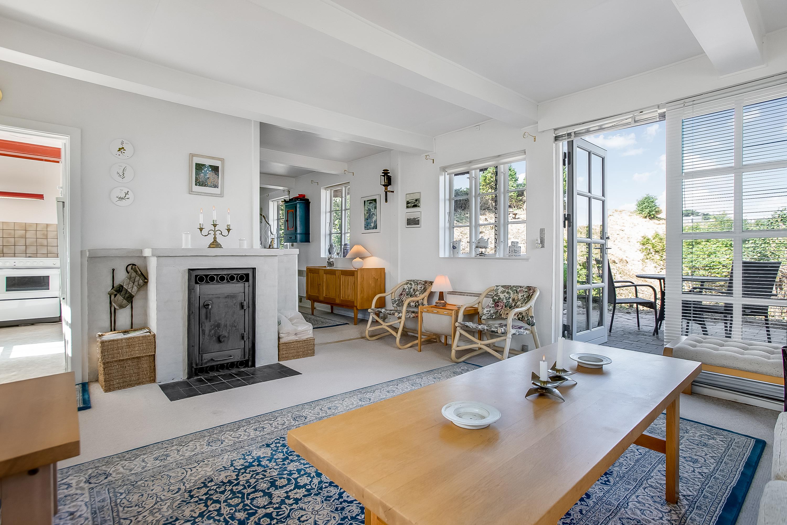 Velkommen til Strandstien 158 – Et charmerende sommerhus med bindingsværk, stråtag og en helt unik beliggenhed i Strib.