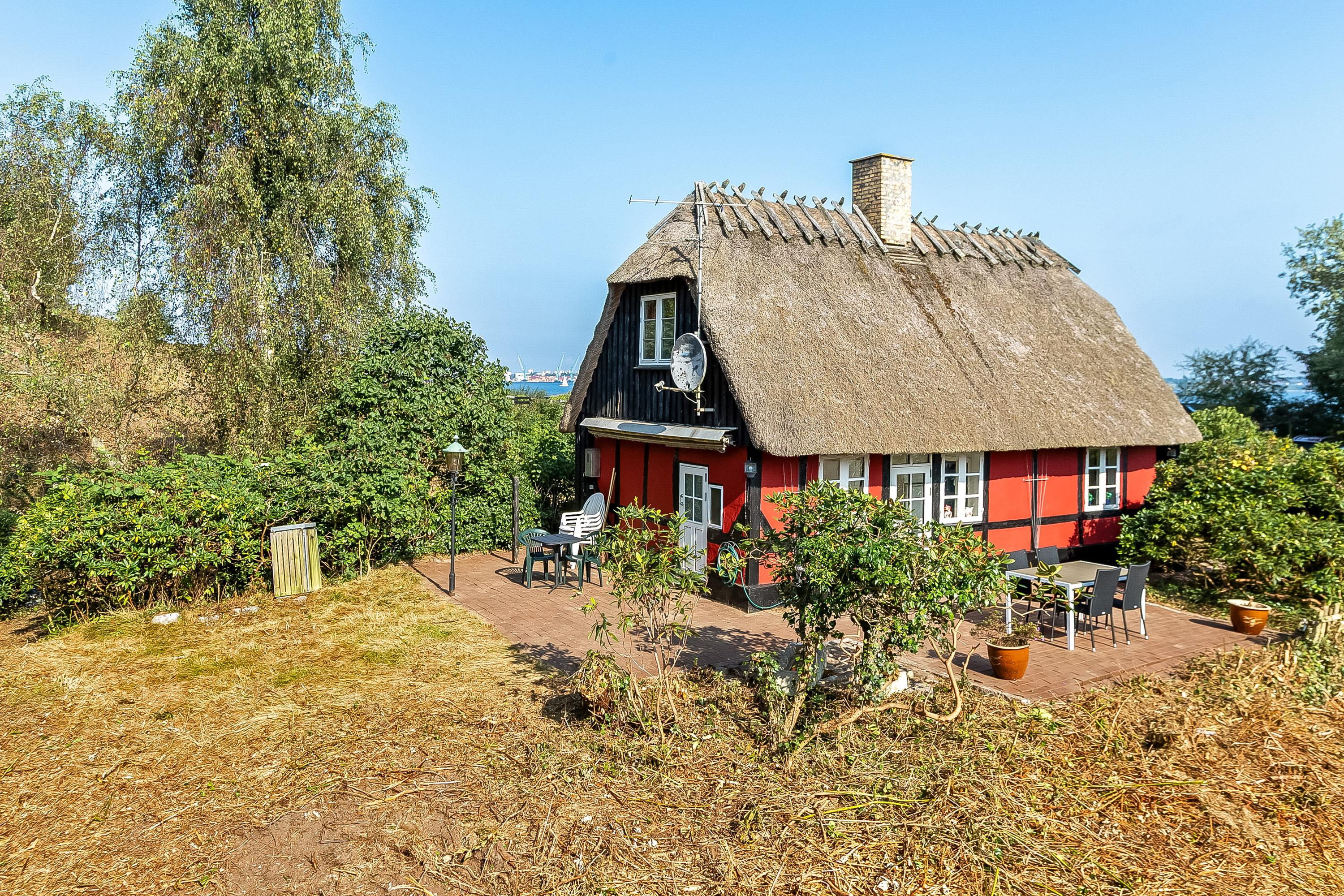 Charmerende sommerhus med bindingsværk, stråtag og en helt unik beliggenhed i Strib.