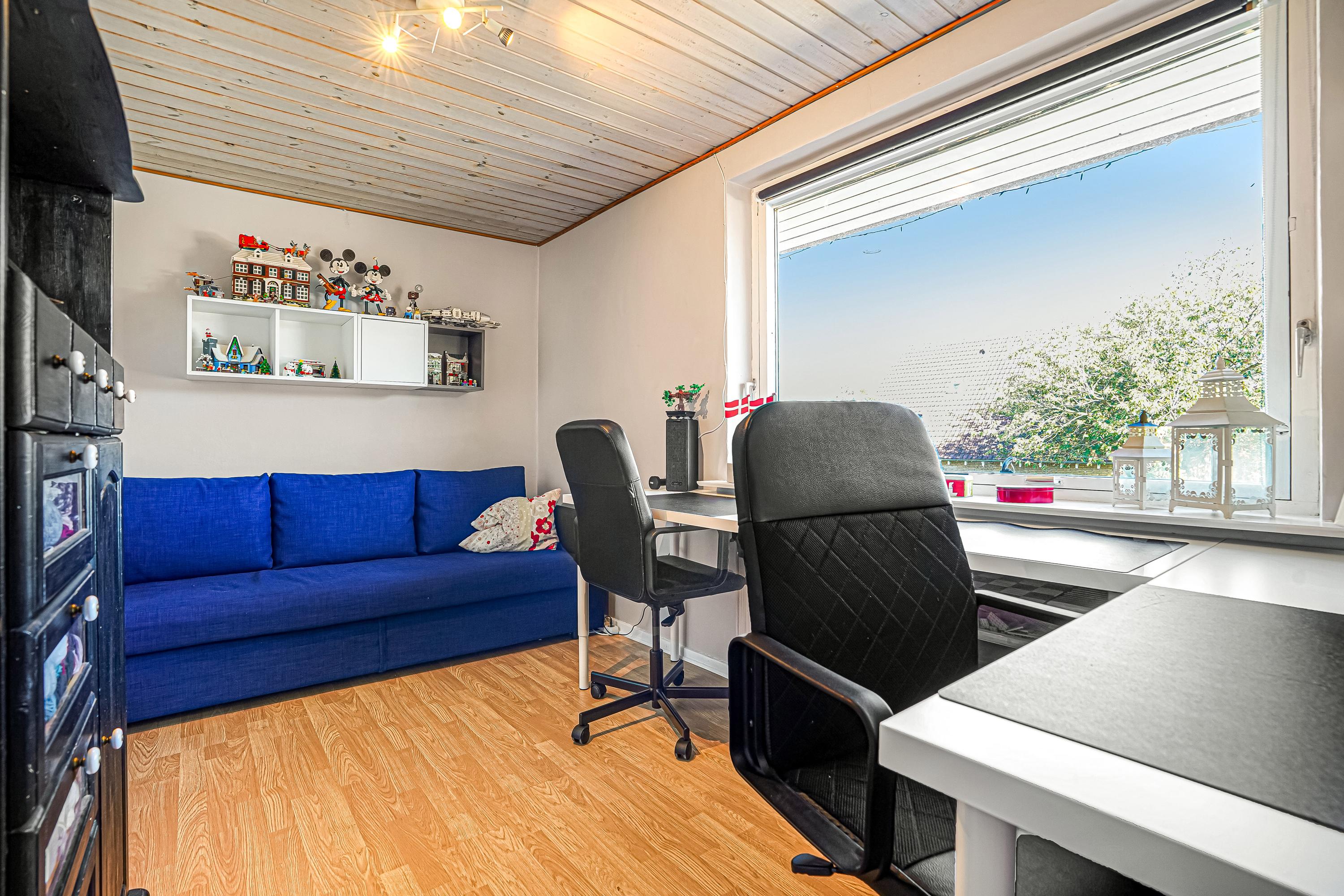 Boligen egner sig perfekt til børnefamilien med sine 120 boligkvadratmeter godt fordelt på entré med garderobe og trappe til