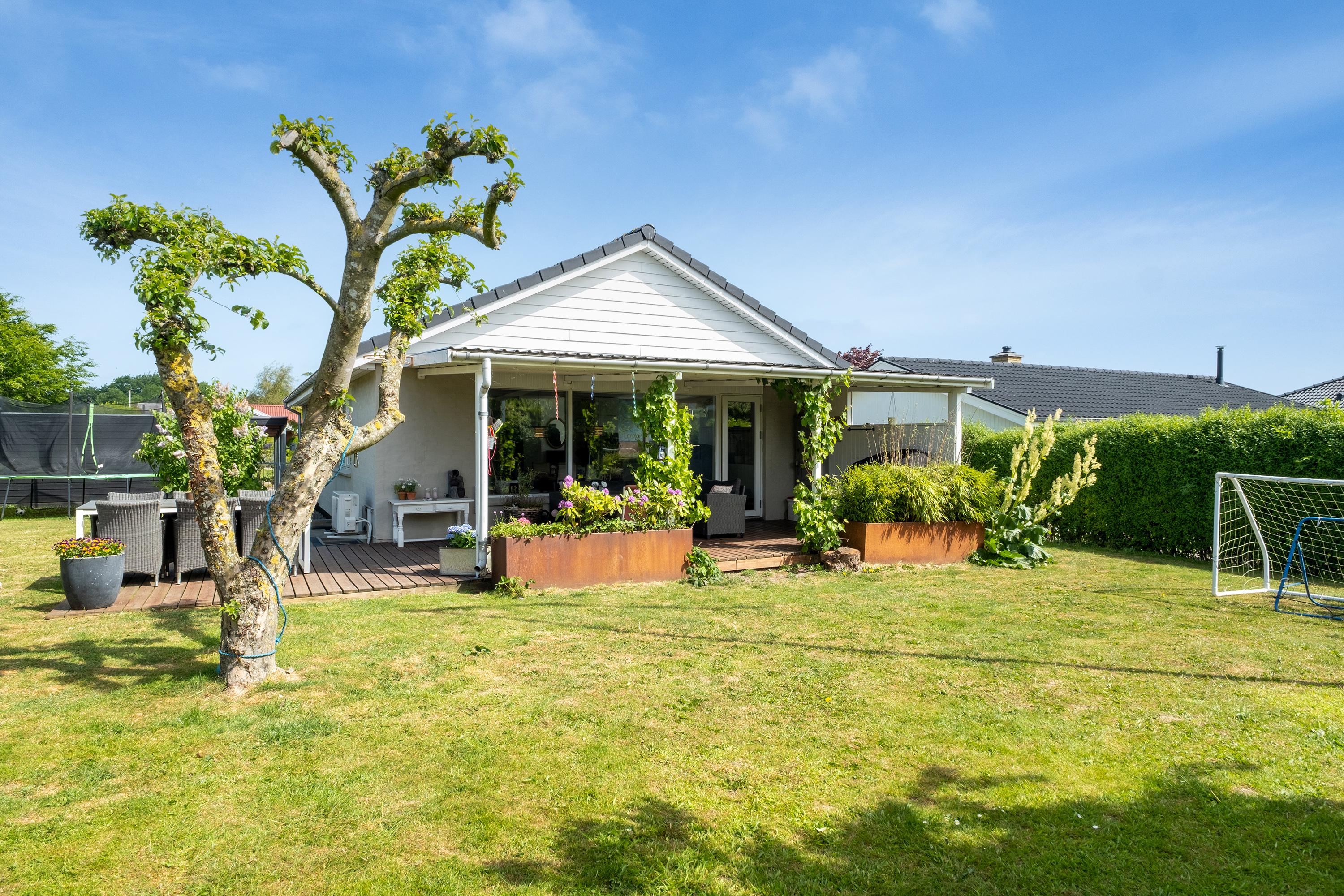 I det rolige og billedskønne Brylle ligger denne charmerende villa med 107 veludnyttede boligkvadratmeter i stueplan, fuld og yderst funktionel kælder og en have, der lige så gerne inviterer til leg som til ro.