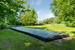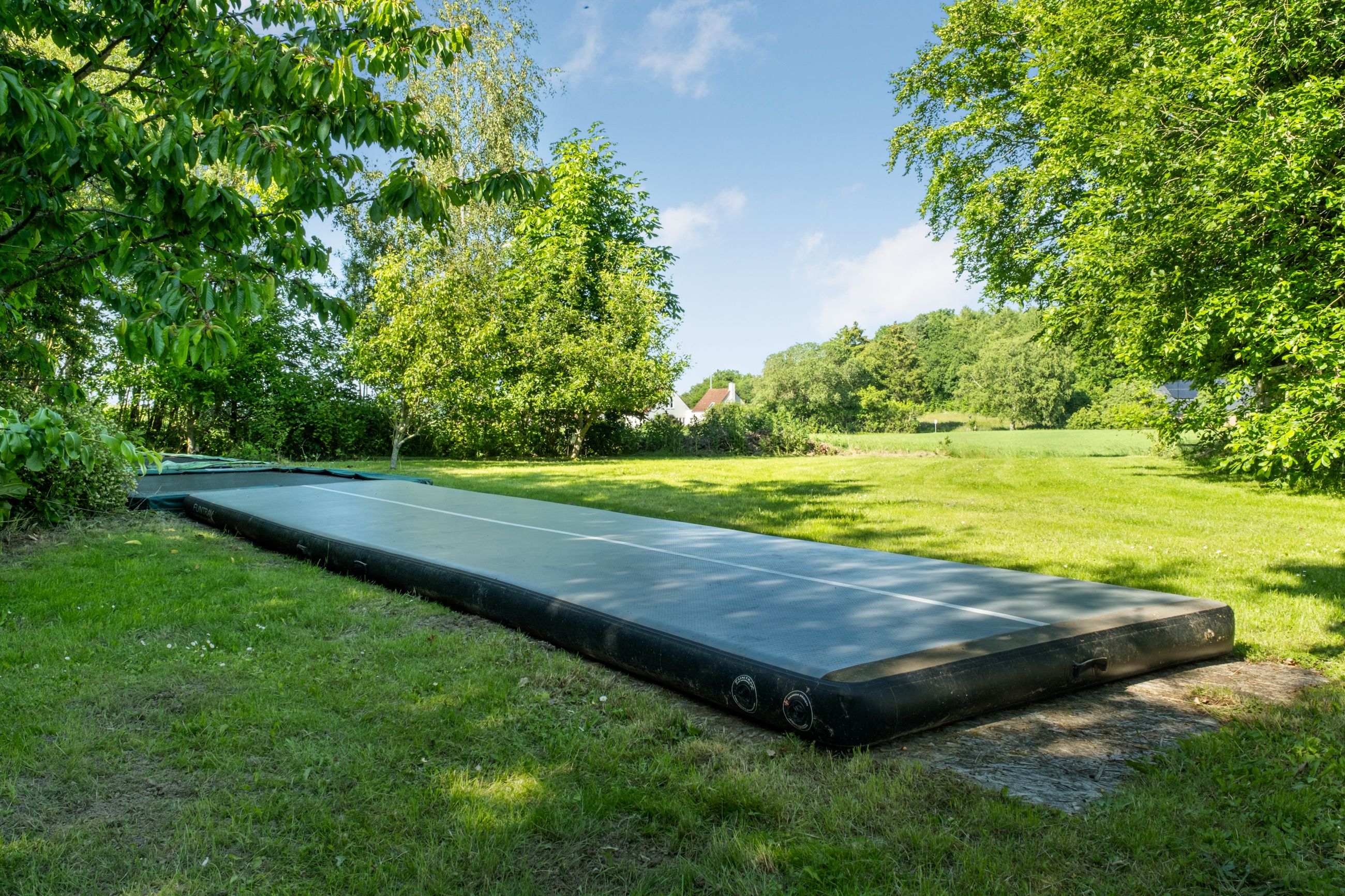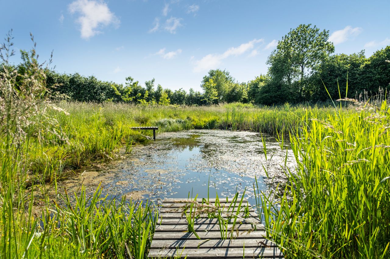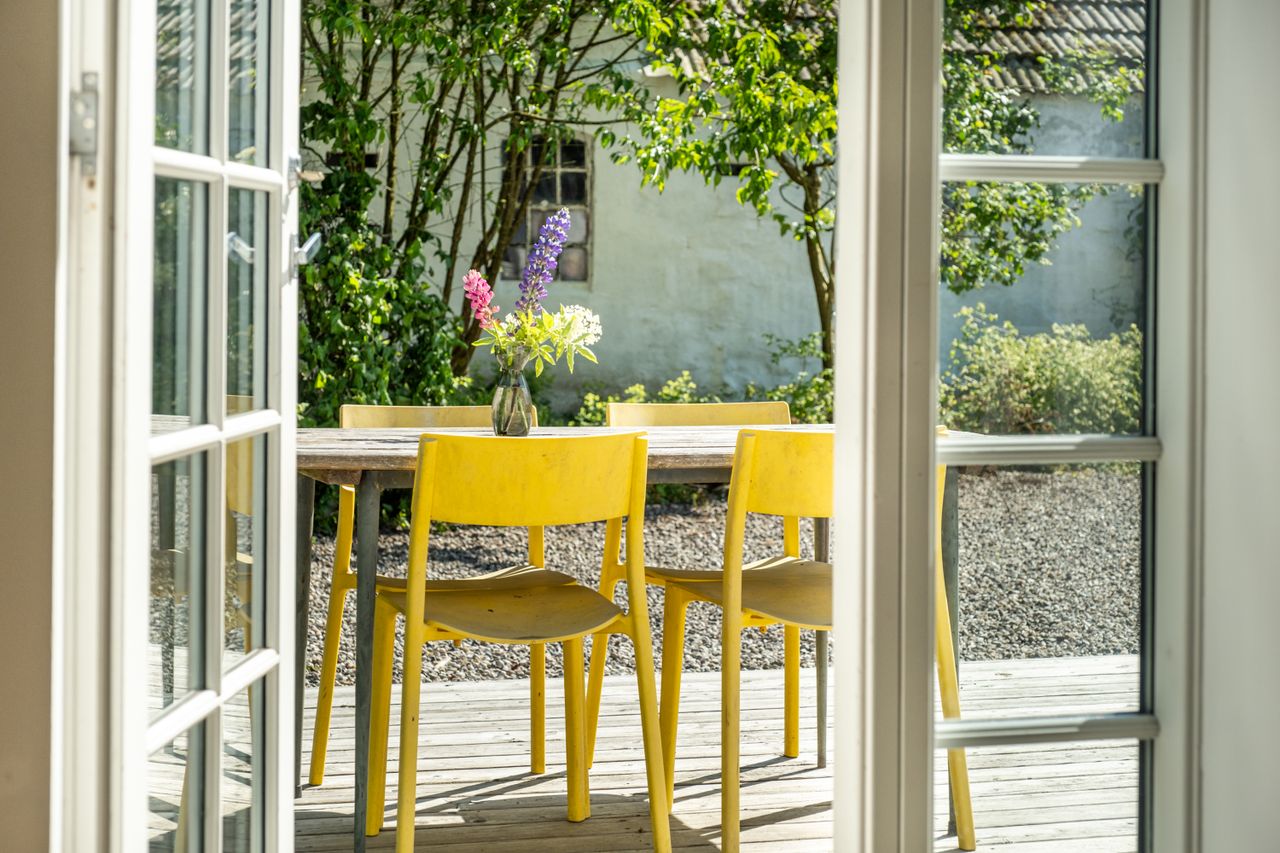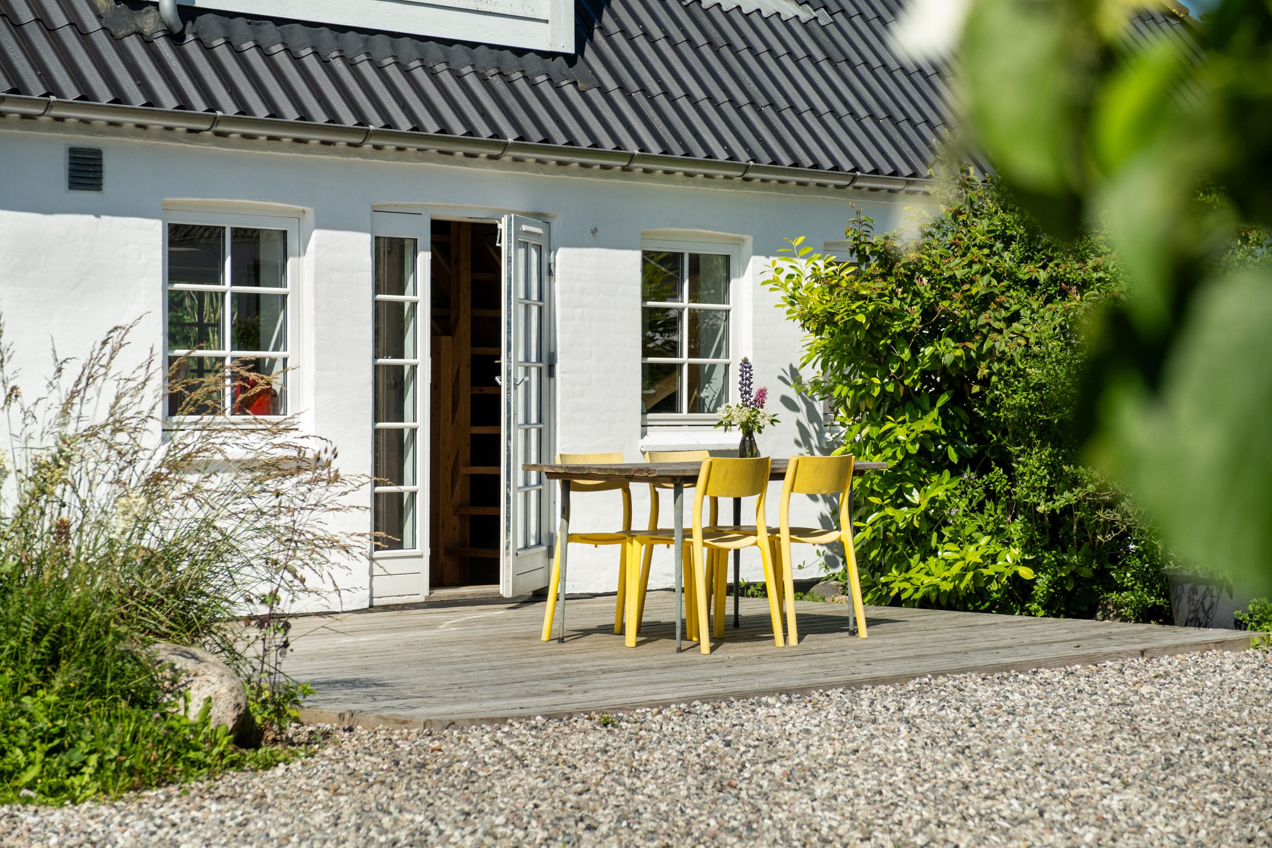 Og så er der haven. Den er ganske enkelt noget helt særligt. Du får en lukket gårdhave med solrige terrasser og lækroge. Du får blomsterbede, gamle træer og en idyllisk badesø med tilhørende sauna. Et charmerende lille træhus mellem store træer fungerer som kontorplads med varme og vinduer. Derudover finder du drivhus, køkkenhave, bærbuske, frugttræer, shelter – og hele 1,3 hektar jord at boltre dig på. Her kan du mærke roen, høre fuglene og opleve naturen helt tæt på.