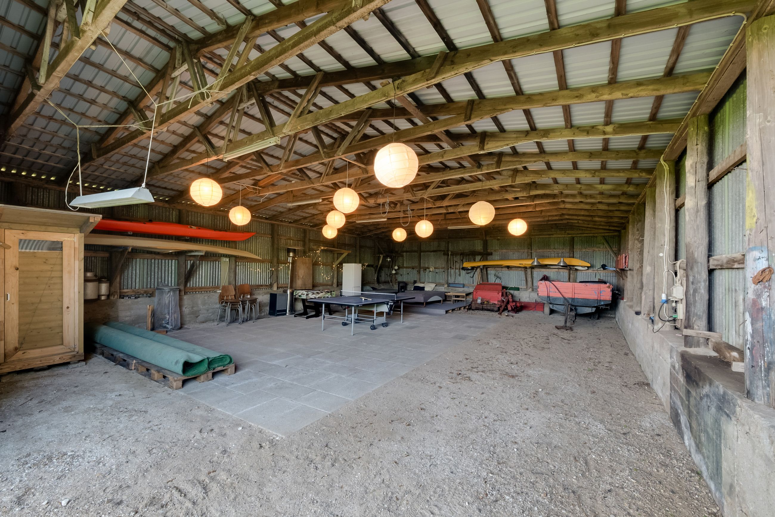 Udenfor venter den store lade, som kan bruges til både opbevaring, værksted og hobbyprojekter – eller pyntes til et unikt festlokale med blomster, lyskæder og langborde. Du finder også et 221 kvadratmeter stort udhus, som tidligere har fungeret som staldbygning. De mange kvadratmeter er egnet til alt fra opbevaring og værksted, til dyrehold eller anden pladskrævende hobby.