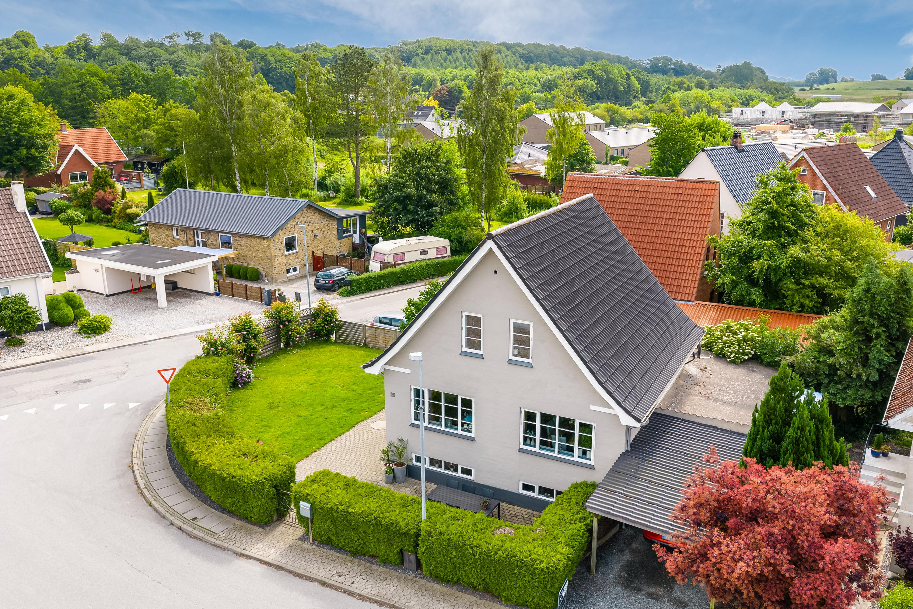 I Tommerup Stationsby, kun ca. 8 minutters togtur fra Odense C, finder du denne skønne villa på 154 etagemeter, beliggende på en dejlig og lukket grund. Her bor du tæt på både natur og alt det, hverdagen kræver: dagligvarebutikker, skole, børneinstitutioner, sportshal, fodboldbaner og en svømmehal