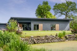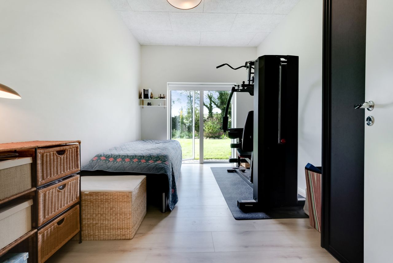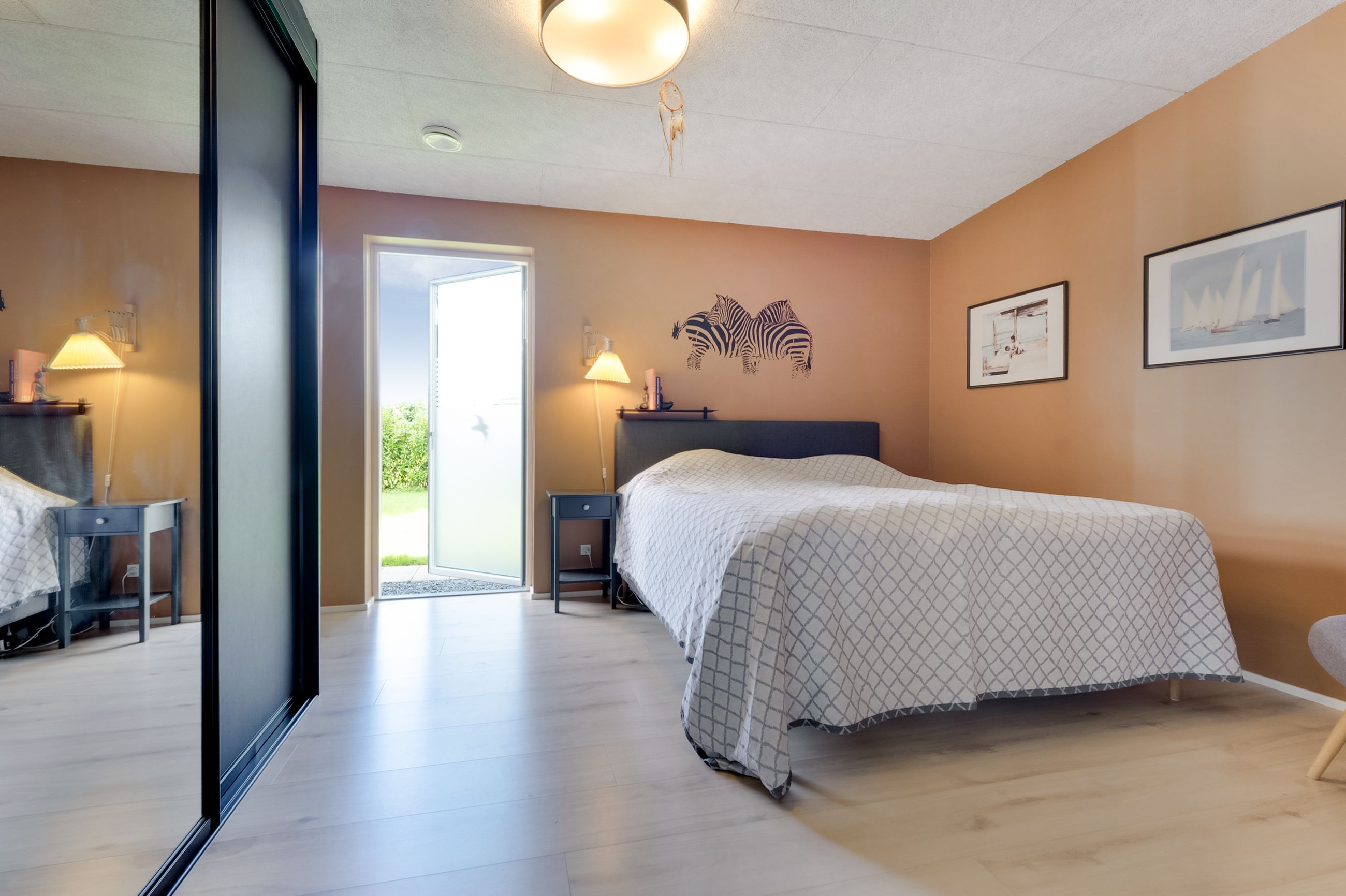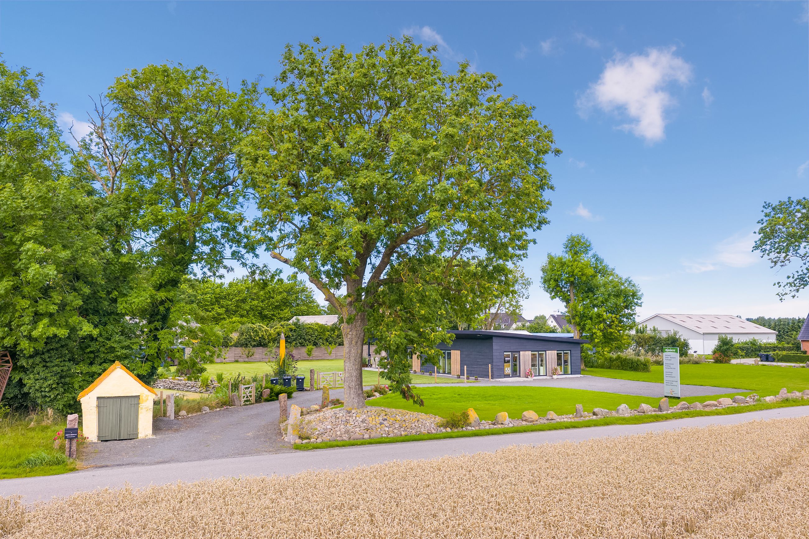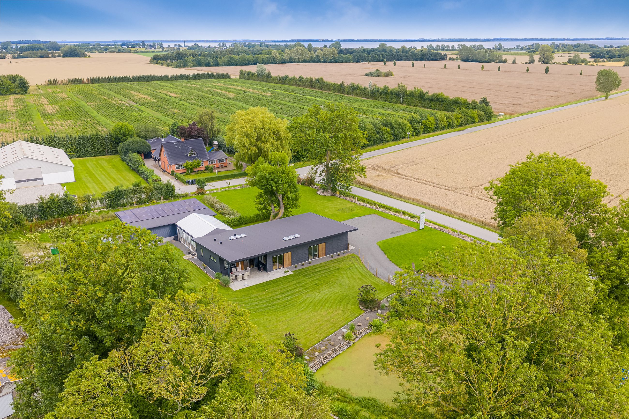 Haven er lige så gennemført som huset – med en lille beskyttet branddam, frugttræer, en stor græsplæne at boltre sig på og den skønneste udsigt over det nordfynske landskab. En ægte perle midt i naturen.