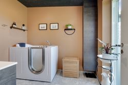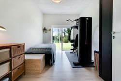 Fra alrummet er der adgang til fire smukke, lyse værelser. Tre af dem har egen indgang, og et har eget badeværelse i samme stil som det første – her med badekar. Det største værelse er adskilt fra resten af huset med en branddør, for på nuværende tidspunkt bliver rummer benyttet erhverv.