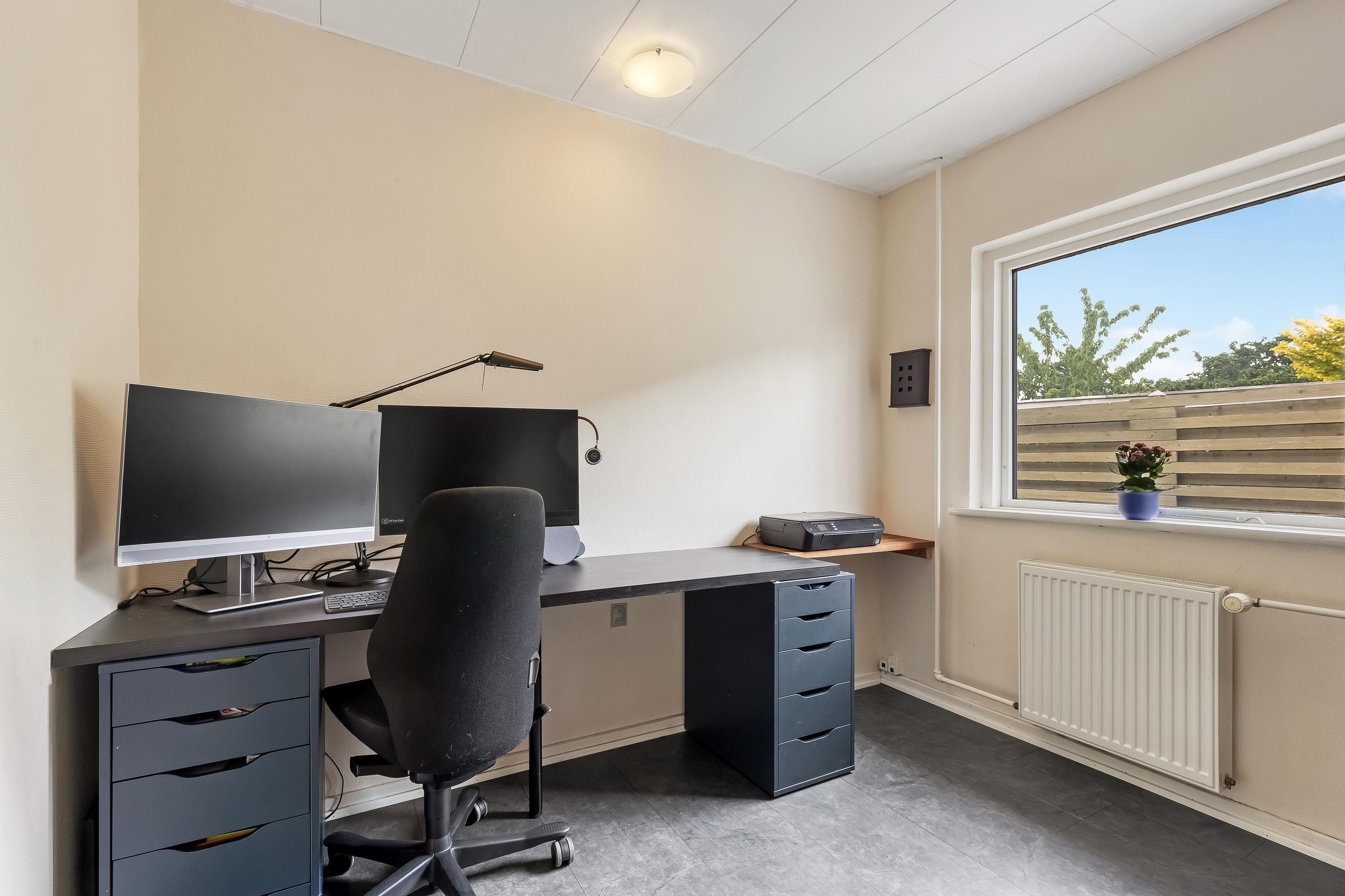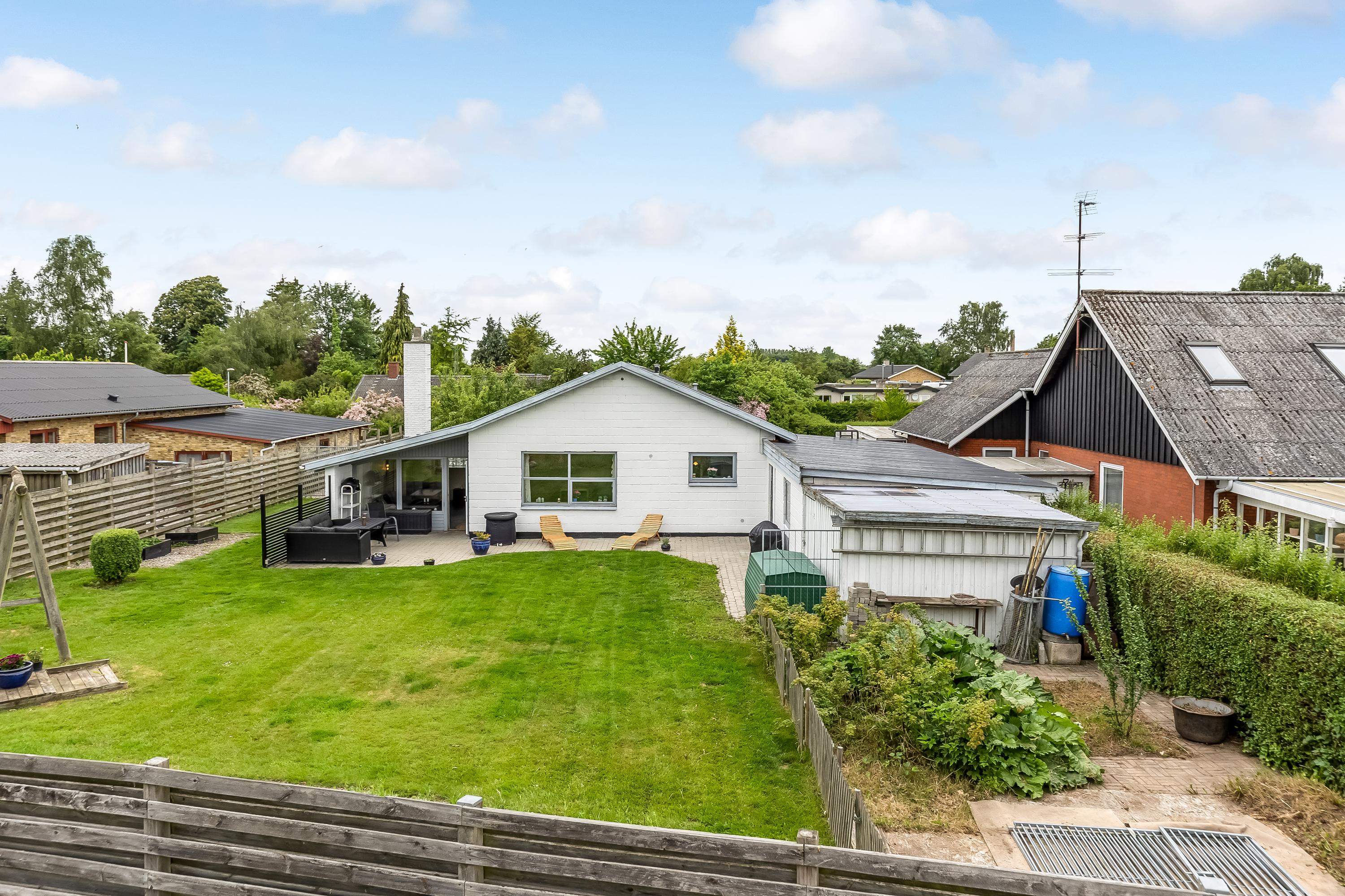 På denne fredelige villavej i Ønslev venter en bolig, der kan det hele: give jer fire gode værelser, to opholdsstuer, pejsehygge, et køkken med masser af bordplads og en lukket have, hvor man med både trampolin, urtebed og fodboldmål kan slå sig løs uden at genere naboerne.