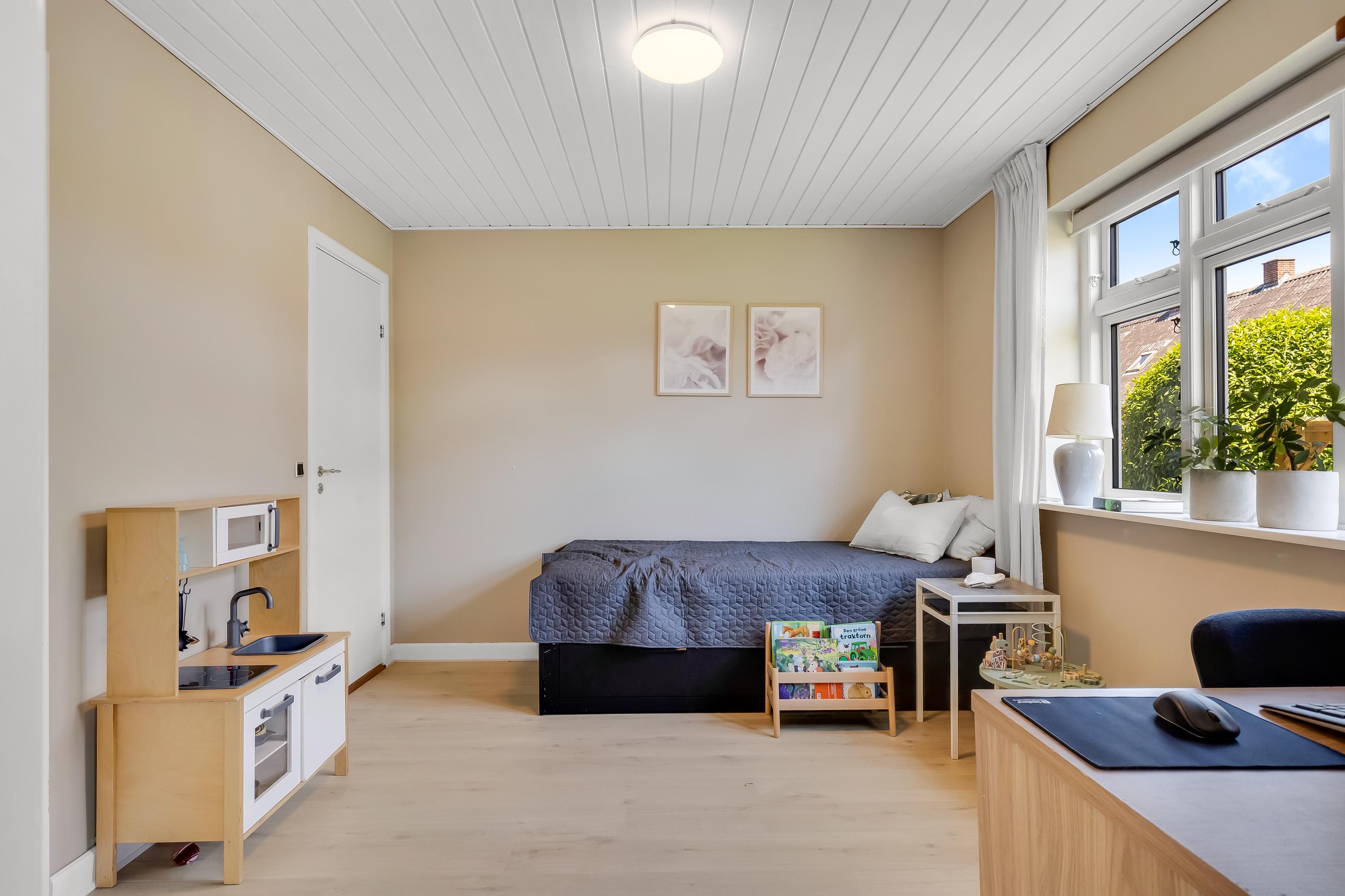 Drømmer I om at bo i en villa, hvor naturen er jeres nærmeste nabo, og byen kun er et stenkast væk? Så skal I se nærmere på denne charmerende villa, som ligger perfekt placeret i et roligt område i forlængelse af Nordbyen. Med Bangsebro Skoven som bagtæppe og en smukt anlagt have, der blomstrer