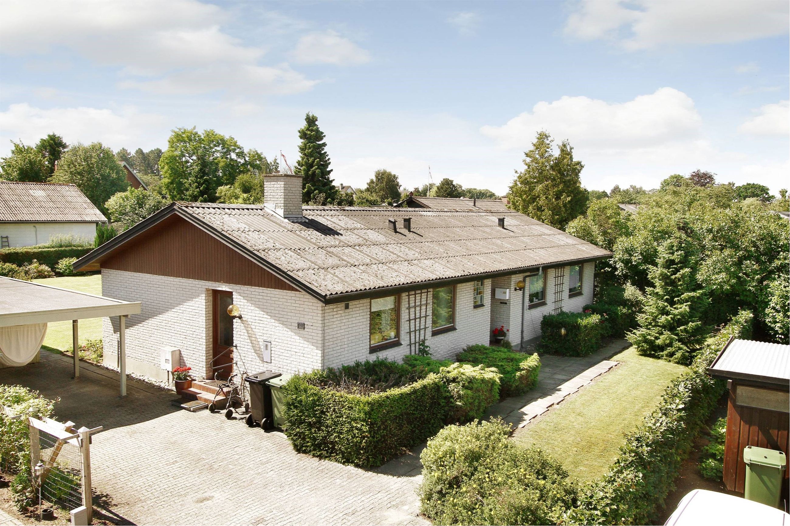 Dejlig og reel villa i 1 plan med et dejligt boligareal på 130 m2, opført i 1975 i kalksandsten, tag i bølgeeternit , termovinduer og et sydvendt overdækket terrassemiljø på 21 m2.