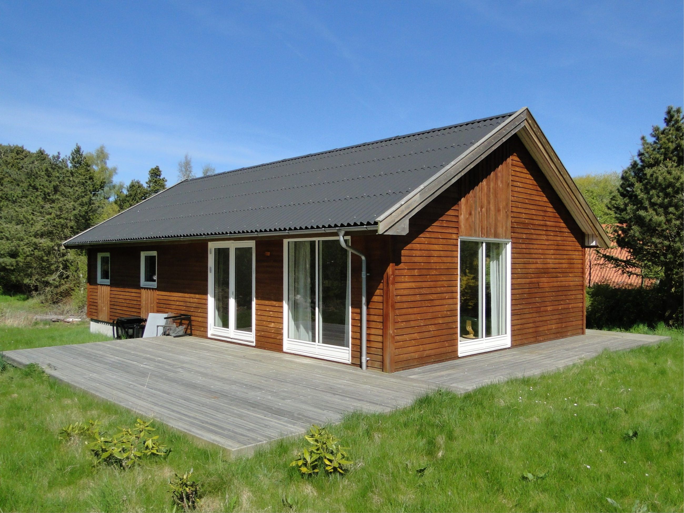 Lækkert og moderne fritidshus i et plan fra 2009 med et boligareal på 95 m2, opført i træ og med tag i bølgeeternit, energivinduer, randfundament , 200 mm isolering i gulve, 150 mm i vægge og 200 mm. i lofter. Træterrasse på tre af husets sider.