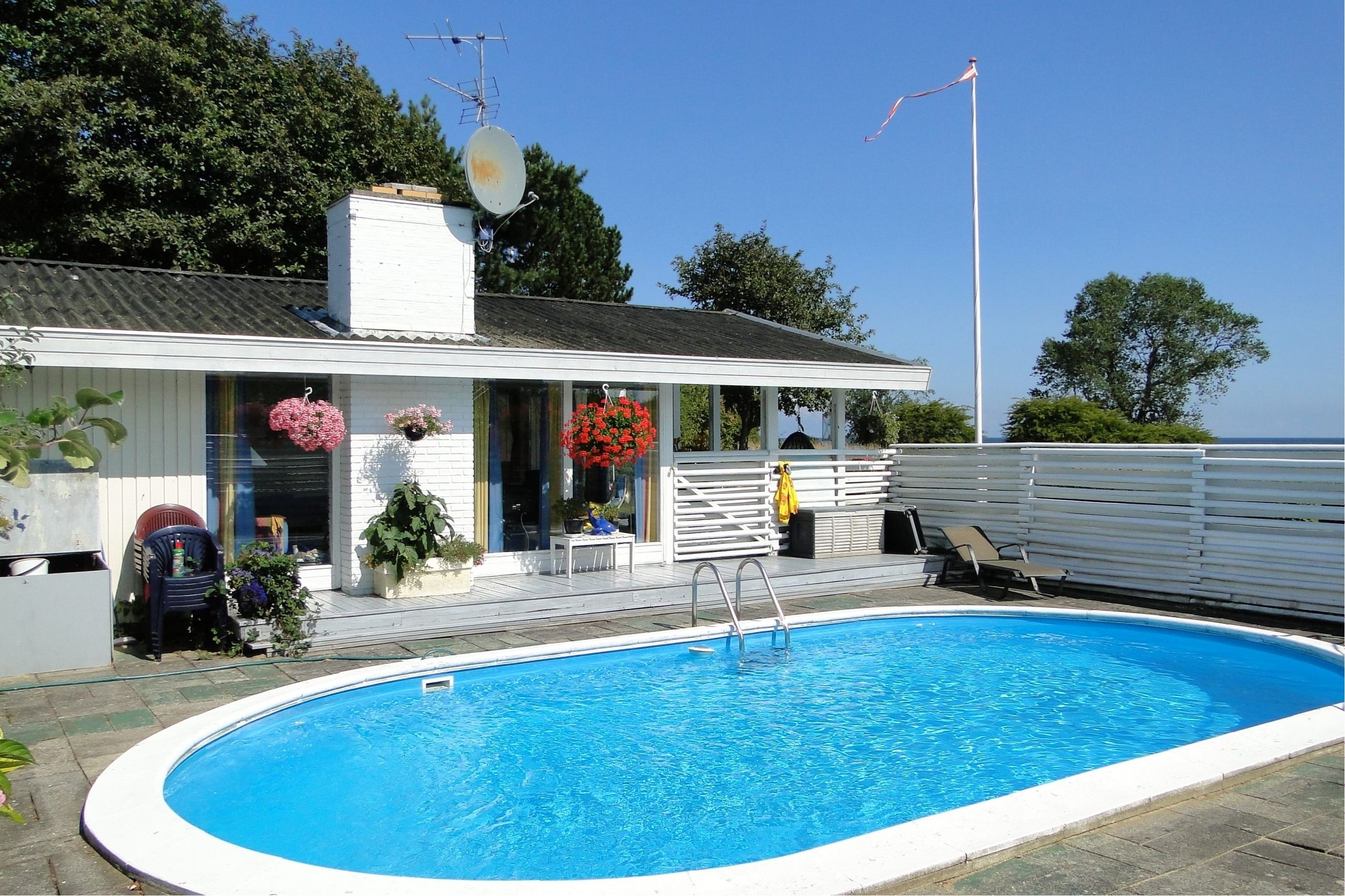 Velholdt Skarridsø fritidshus med et boligareal på 60 m2, opført i 1975 i træ med tag i bølgeteernit, termovinduer, muret skorsten og indvendigt med loft til kip der giver en god rumfornemmelse. Pragtfuld ugenert vestvendt pool- & terrassemiljø med 100% vandudsigt, stor overdækket terrasse med 100% vandudsigt samt stor østvendt træterrasse.