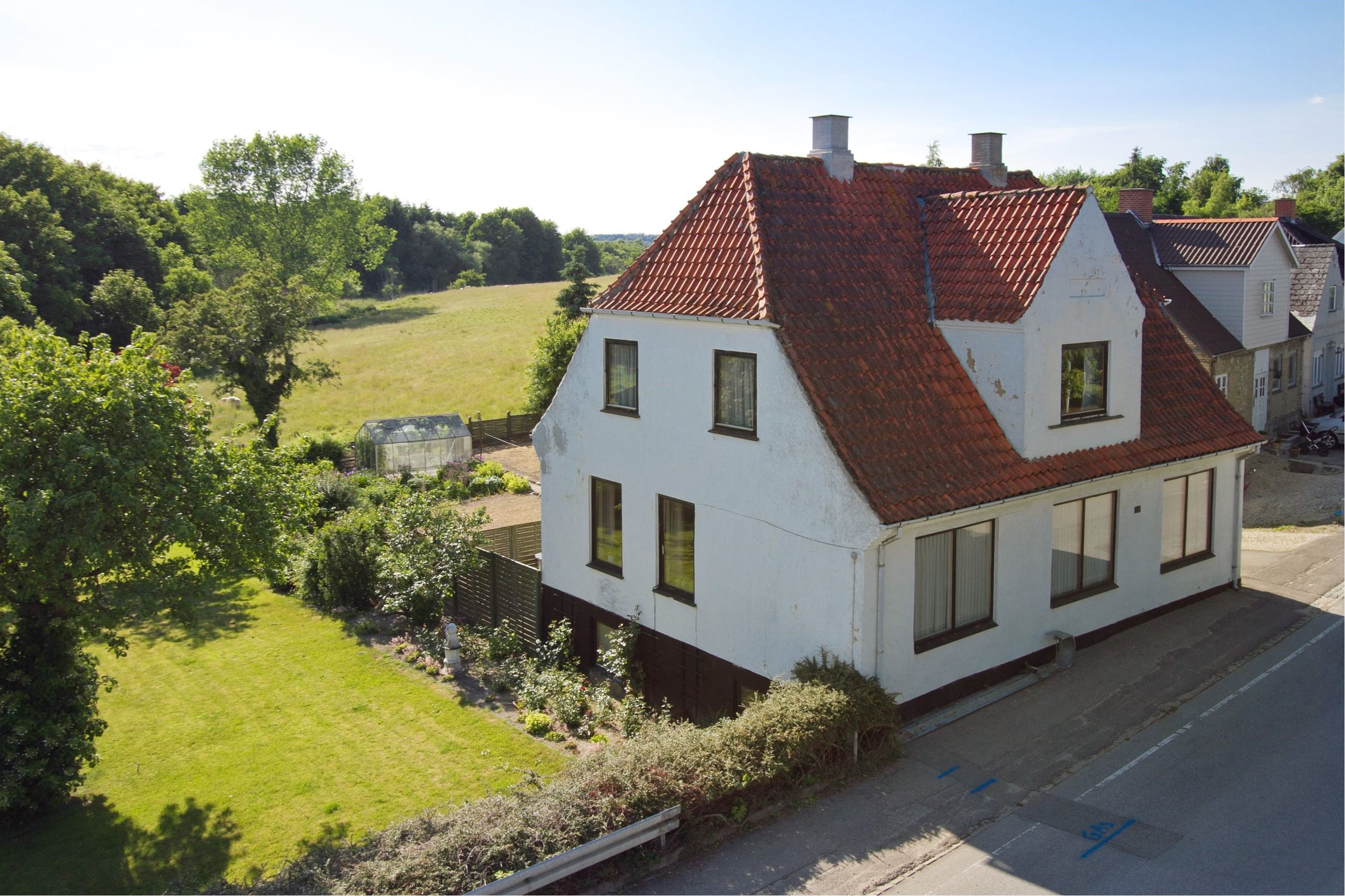 Markant og spændende villa i 3 plan med et boligareal på 160 m2 + 72 m2 kælder, opført i 1920 med pudsede facader, rødt tegltag, termovinduer, off. kloak og Mern Vandværk.