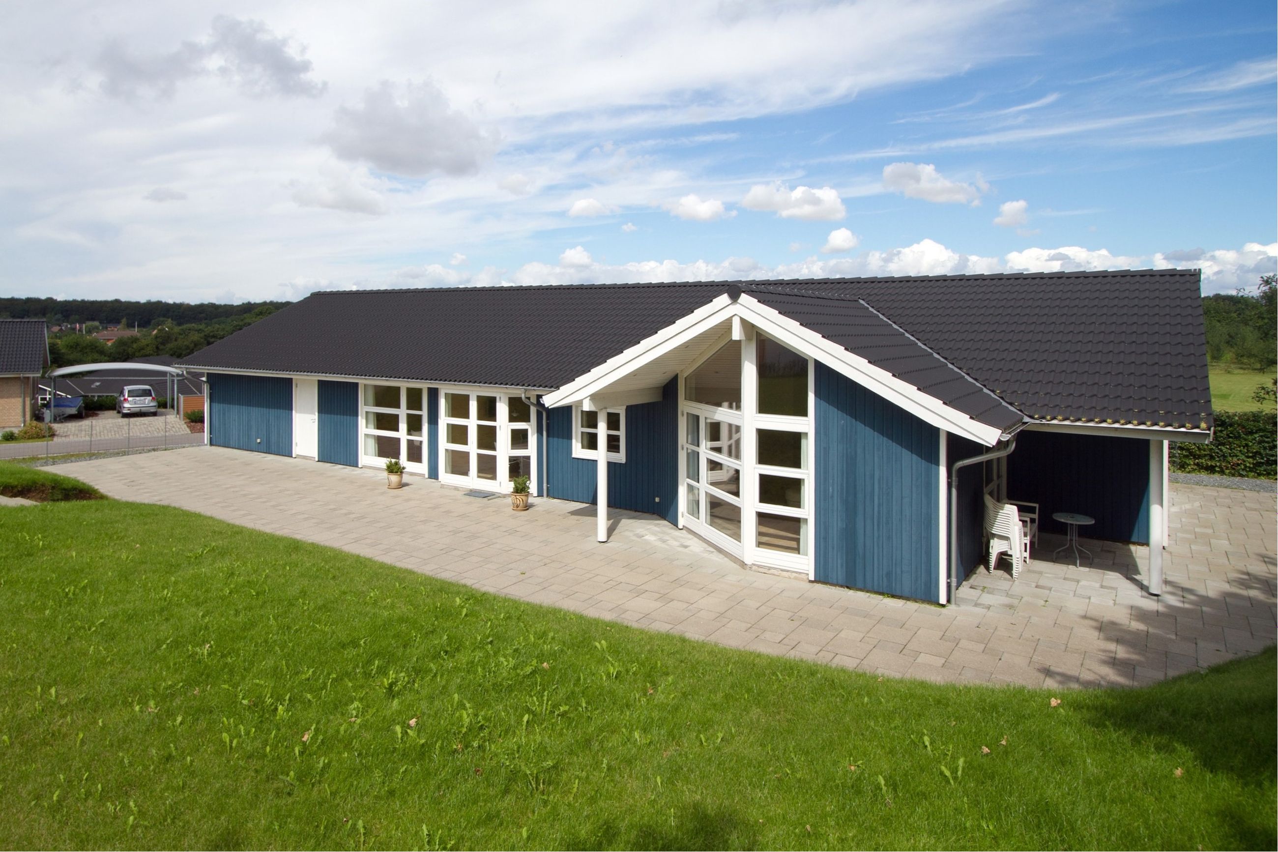 Moderne og individuel villa med et gennemtænkt boligareal på 164 m2 i et plan + 13 m2 overdækket terrasse + 35 m2 carport + 10 m2 udhus, opført i 2006 med facader i Sibirisk lærketræ, tag i mærk cementsten, vinduer med energiruder, tagrender, naturgas, gulvvarme overalt med individuel rumstyring, naturgas, off. kloak, alment vandværk, grundejerforening og mulighed for Nyråd Antennelaug.
