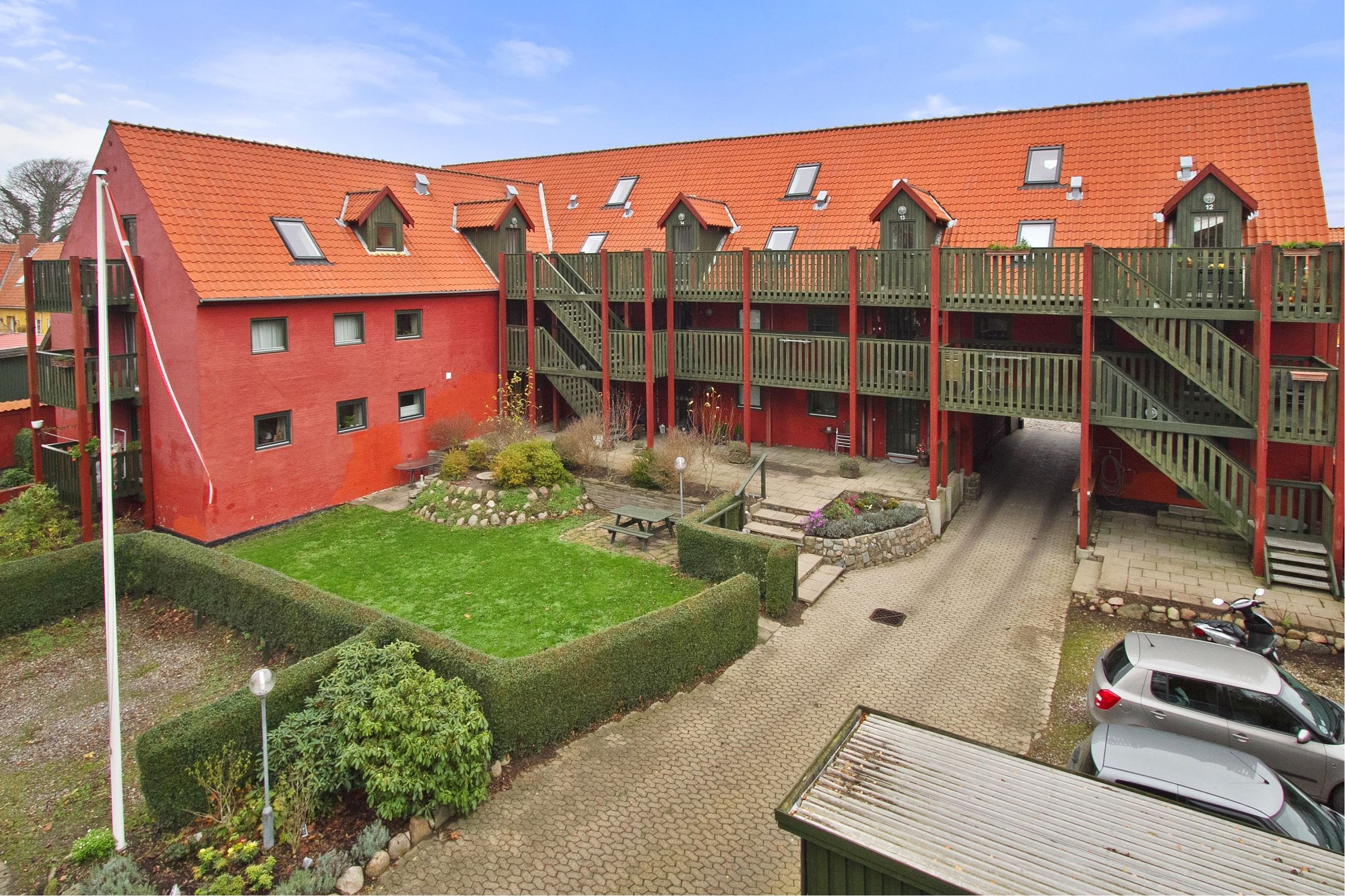 I attraktivt ejerlejlighedskompleks med 17 boliger udbydes på 1. sal en attraktiv og velholdt ejerlejlighed på tinglyste 89 m2. Ejendommen var oprindelig et stort pakhus fra 1807, opført i pudset mursten med rødt tegltag, der i 1980 blev ombygget til spændende ejerlejligheder med en velfungerende ejerforening. Skøn og hyggelig ejerlejlighed med indvendigt synligt pakhus bindingsværk, flotte trægulve med tæpper og synlige loftbjælker med lyst blankt loft.