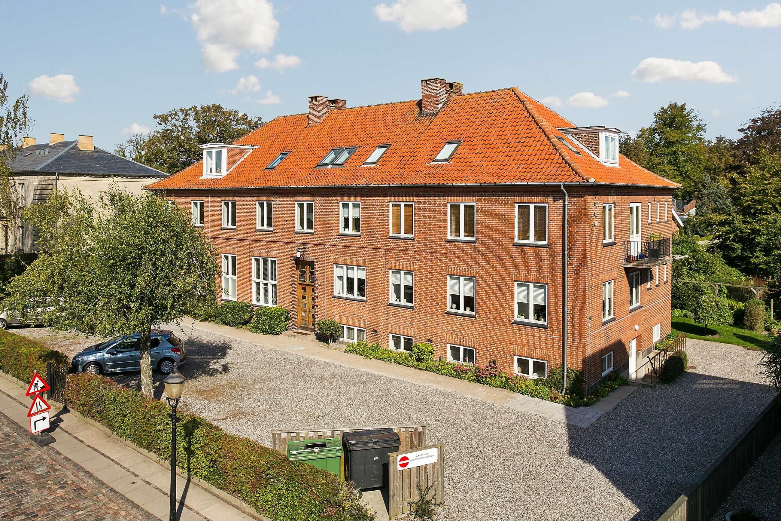 I hyggeligt, velordnet og mindre ejerlejlighedskompleks udbydes stor herskabelig ejerlejlighed på 1. sal med et tinglyst areal på 153 m2 og BBR boligareal på 144 m2 i en arkitektonisk smuk bygning fra 1932 - oprindelig benyttet som byens sygehus og senere alderdomshjem, opført i rød mursten med rødt tegltag.